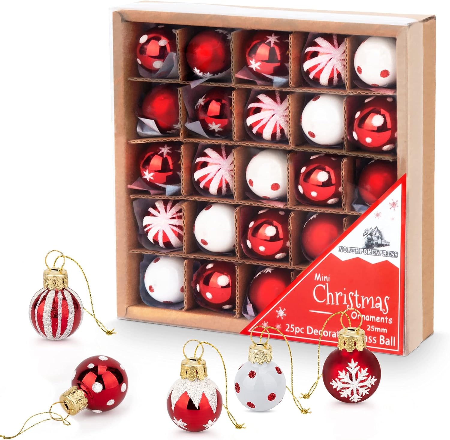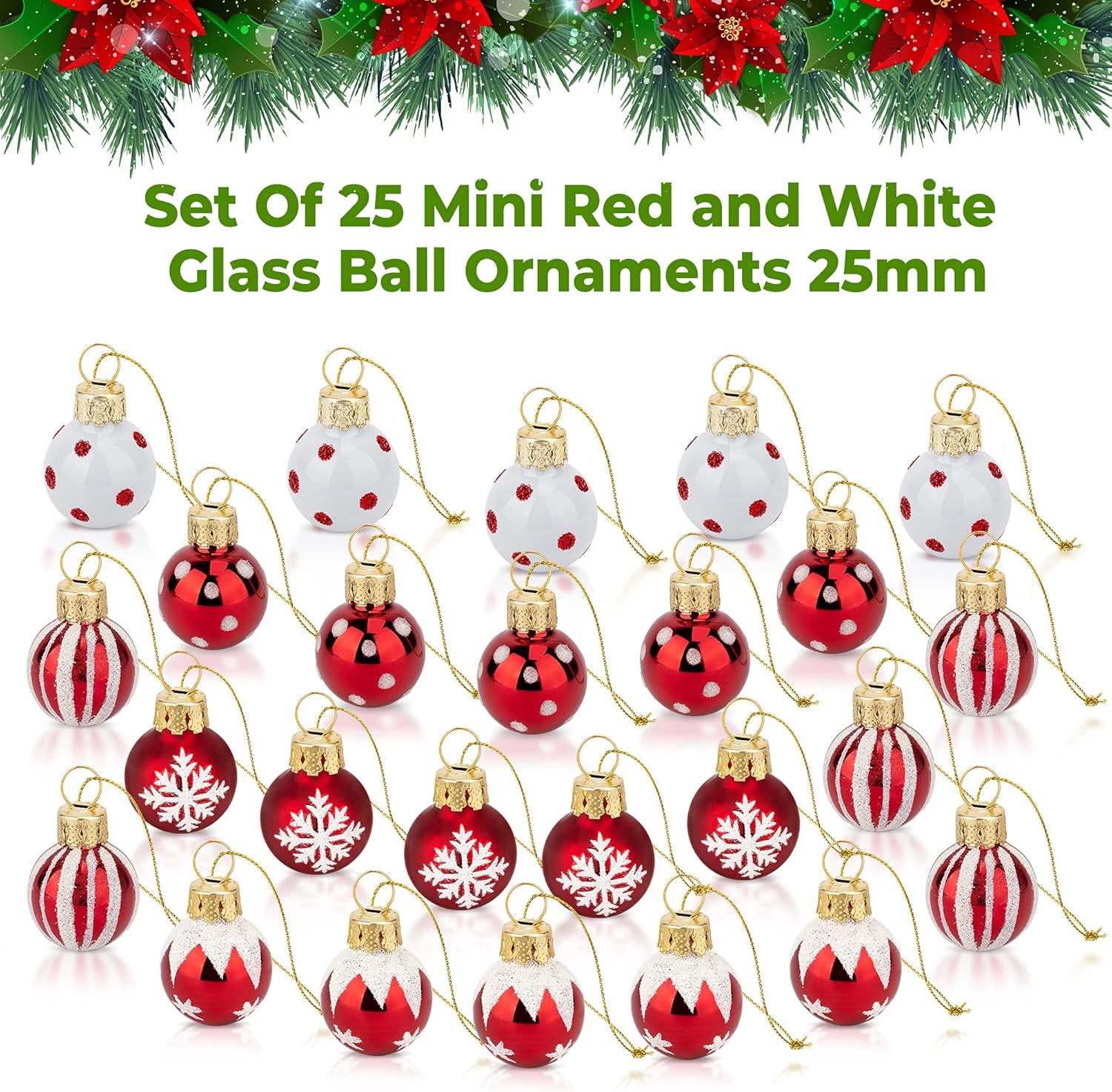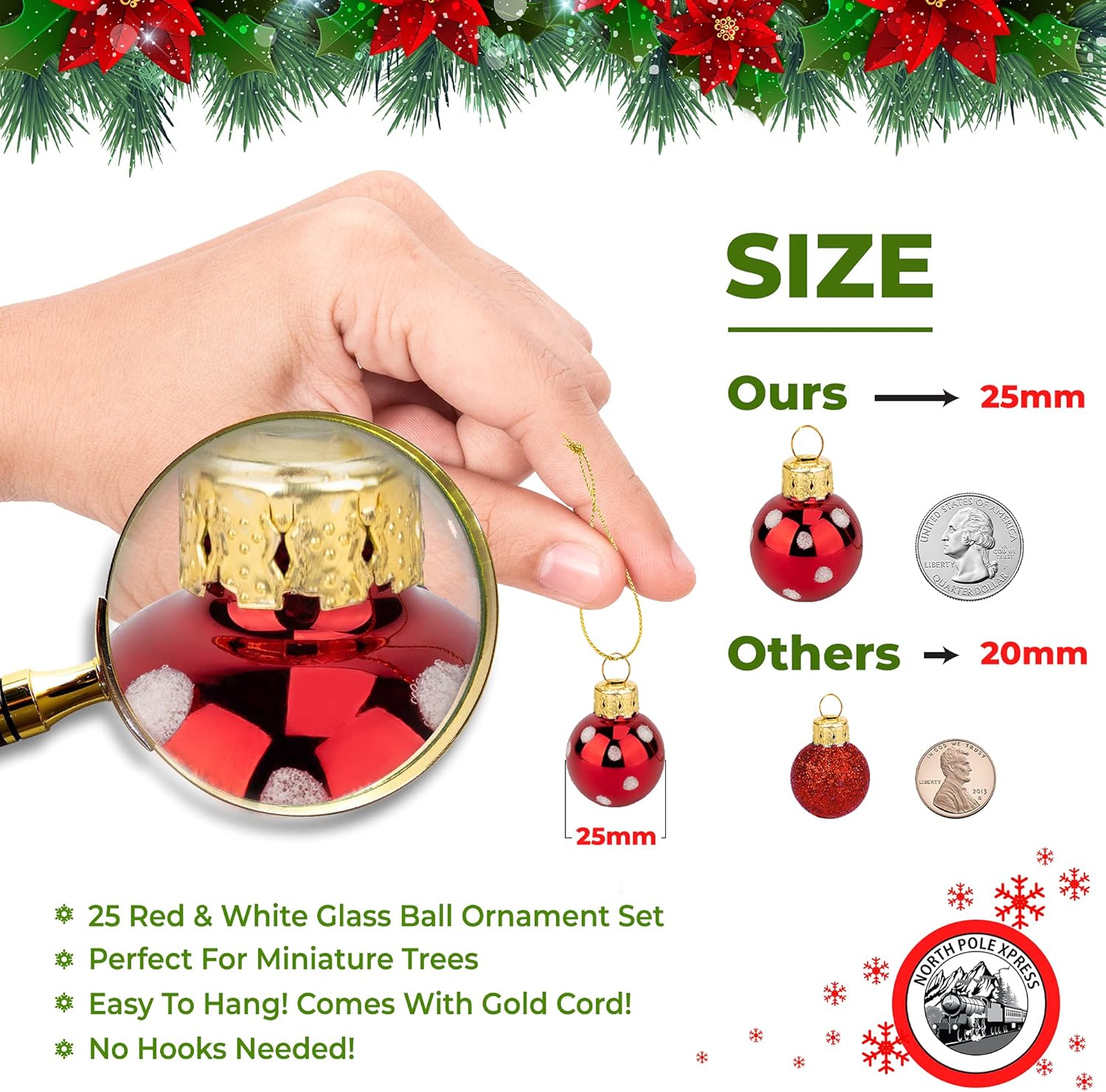 1 Inch Mini Red & White Peppermint Glass Ball Christmas Ornaments Set of 25 Balls Miniature Christmas Tree Ornaments Rustic Christmas Decorations Mini Christmas Tree Decorations for Small Trees