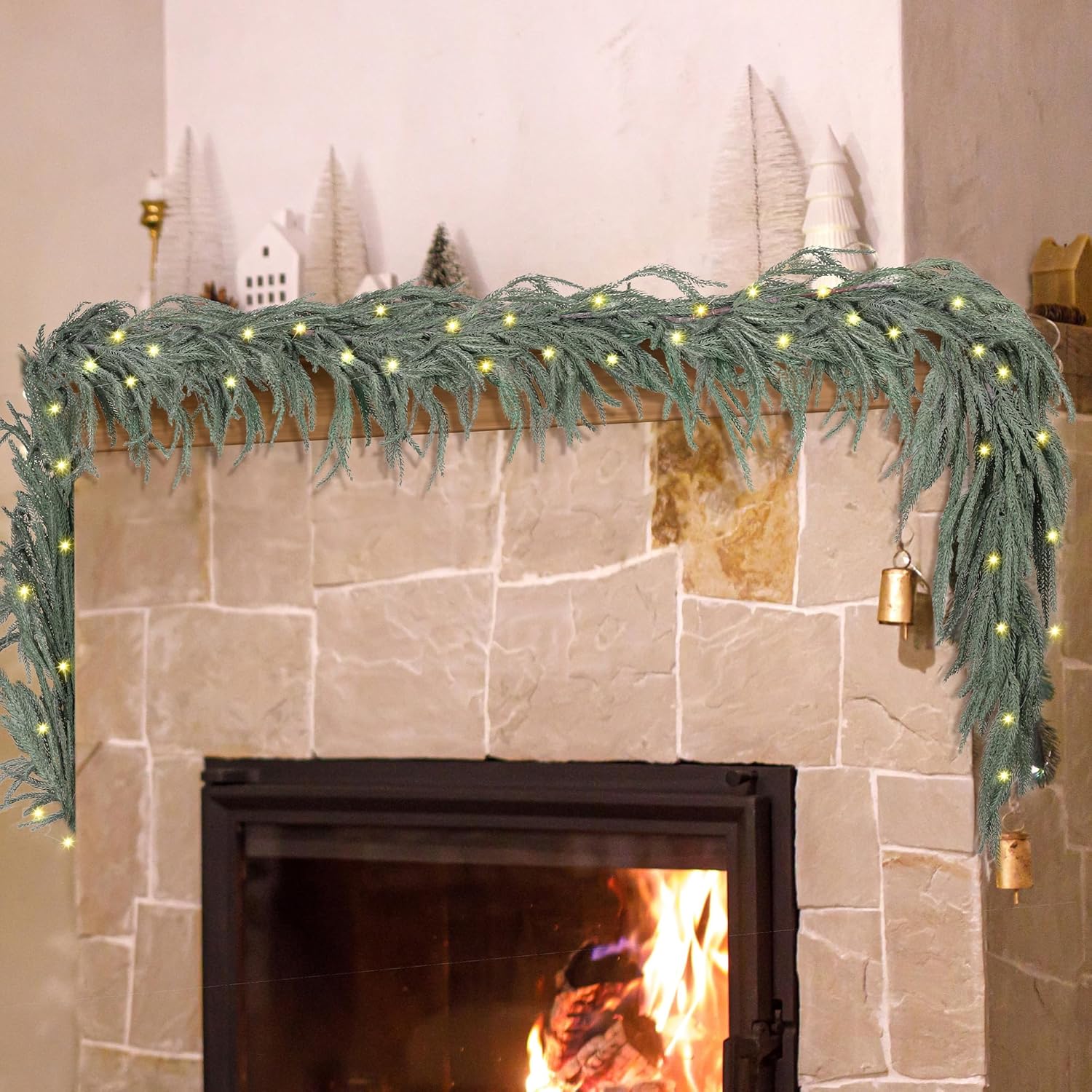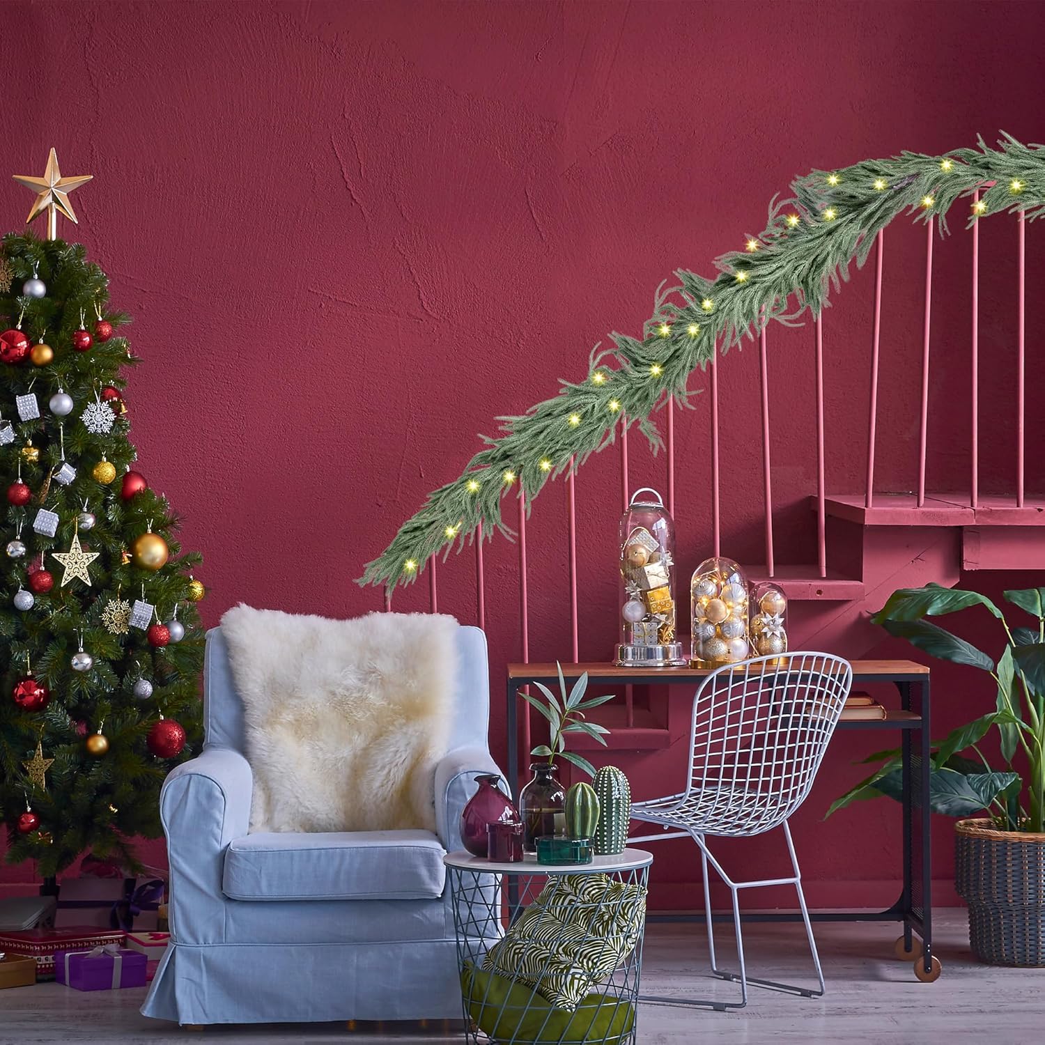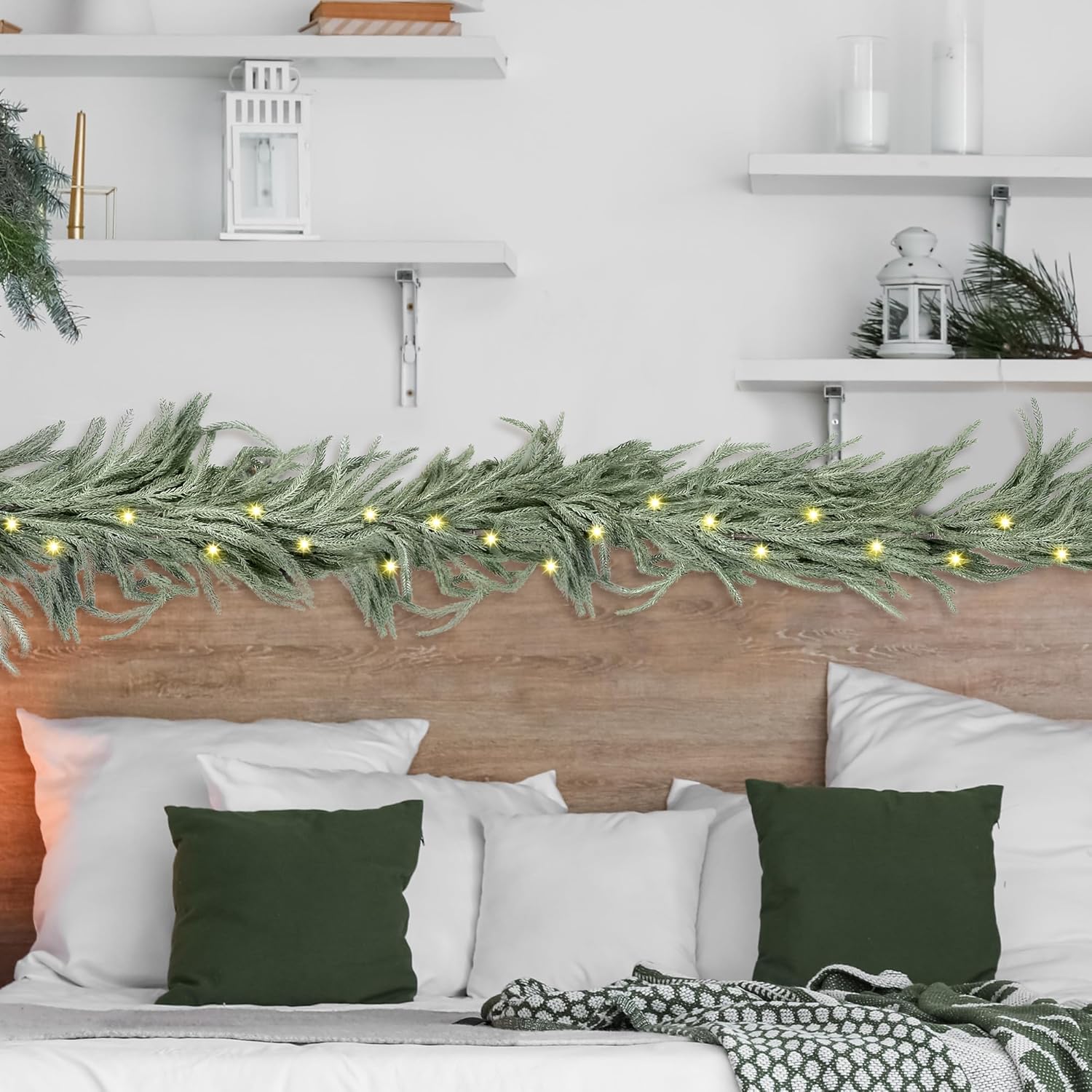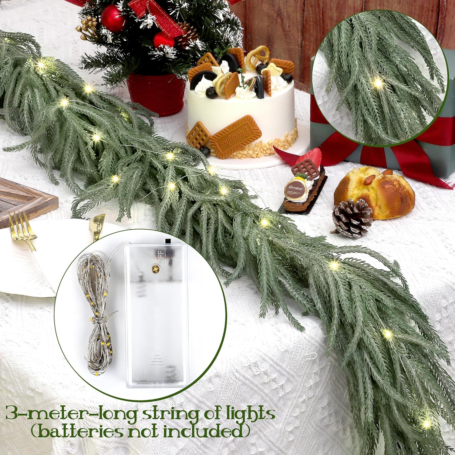 1 Pack Christmas Norfolk Garlands Set 6 Feet Artificial Winter Pine Garland Light String Faux Greenery Garland Green and White Pine Garland for Xmas Holiday Home Indoor Decor