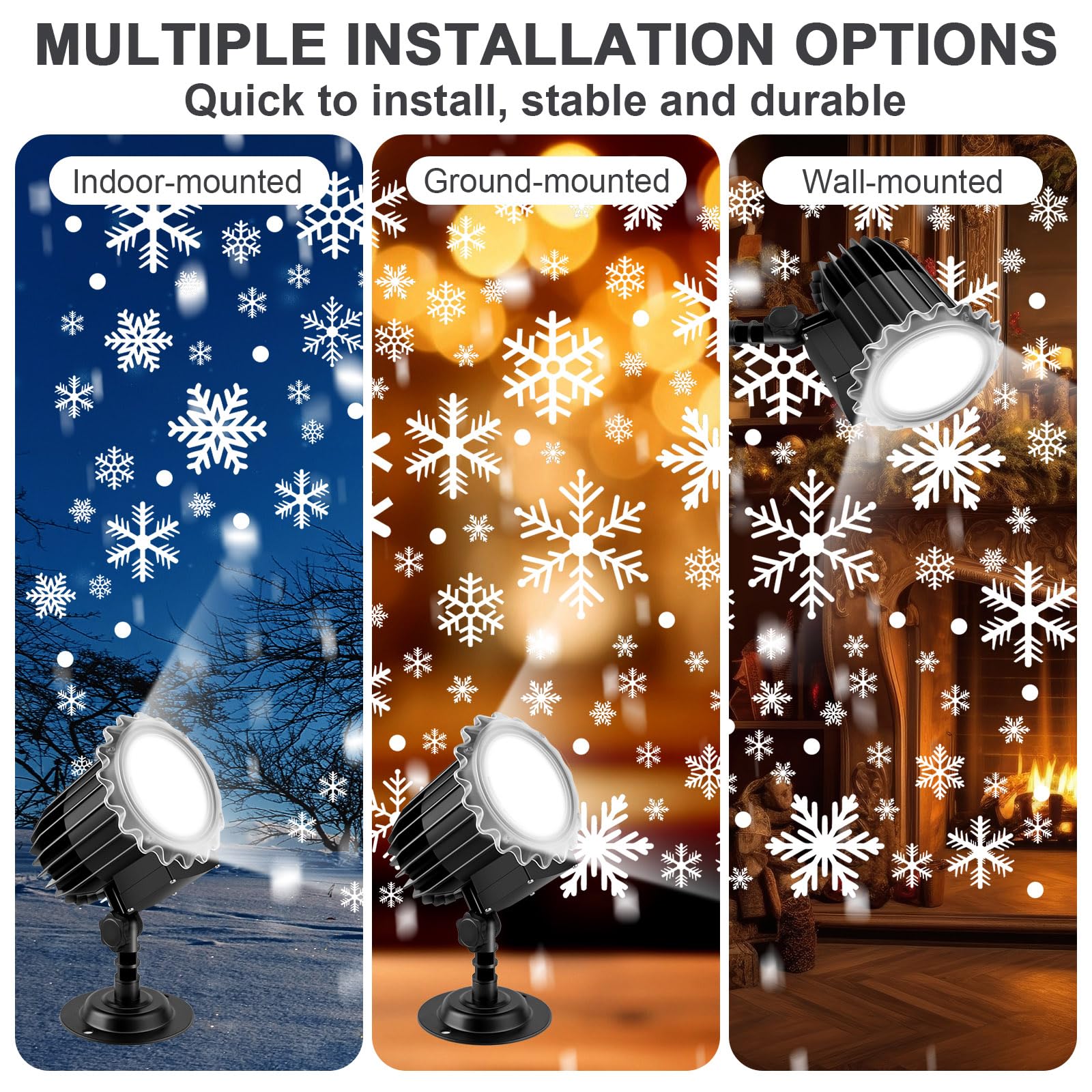 1 Pcs Christmas Projector Lights Highlight LED Snowflake Light Projector Waterproof Outdoor Christmas Decorations Lighting for Xmas Holiday Party Year Decoration, Black
