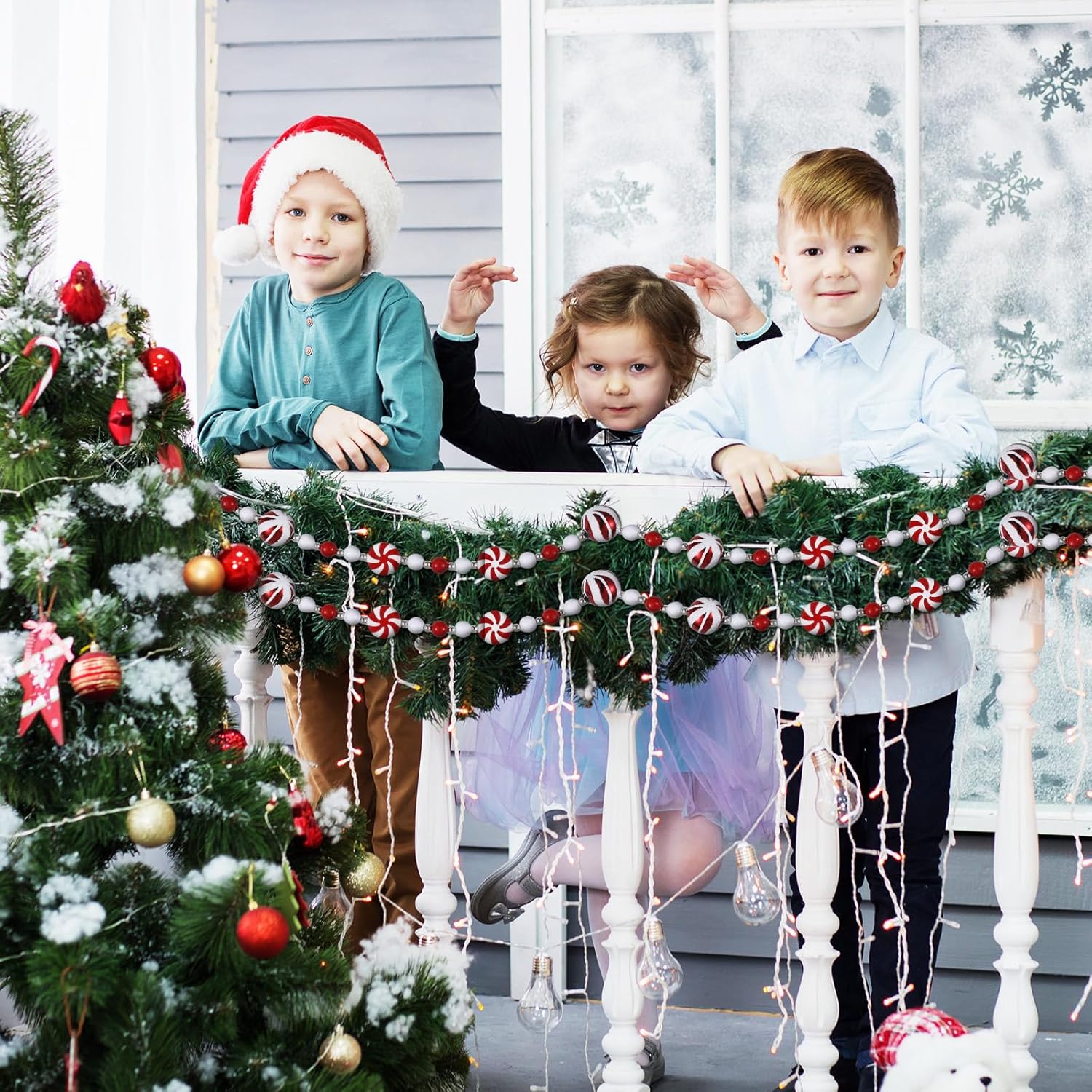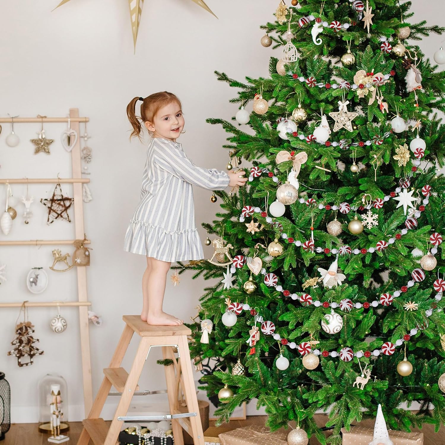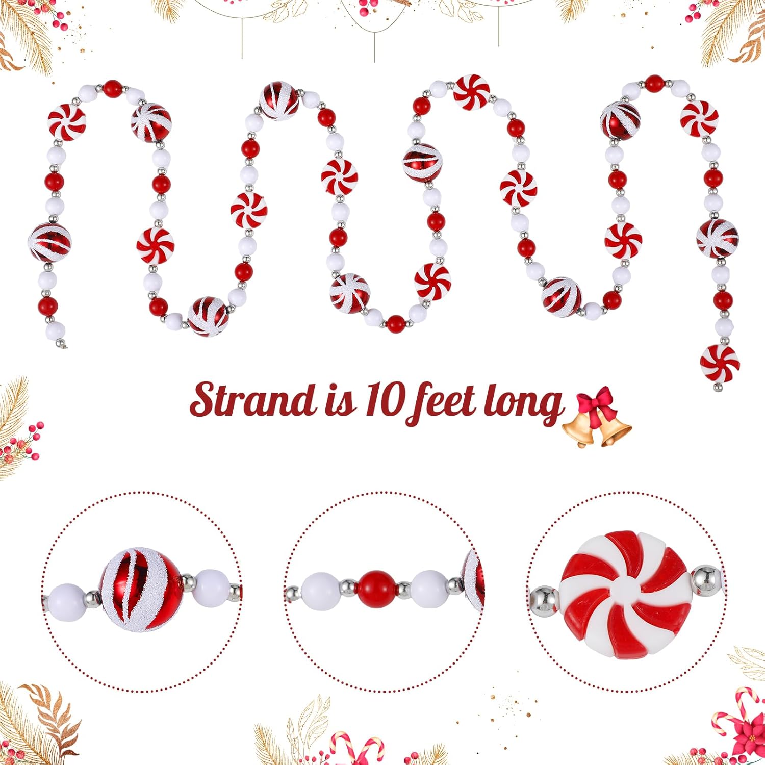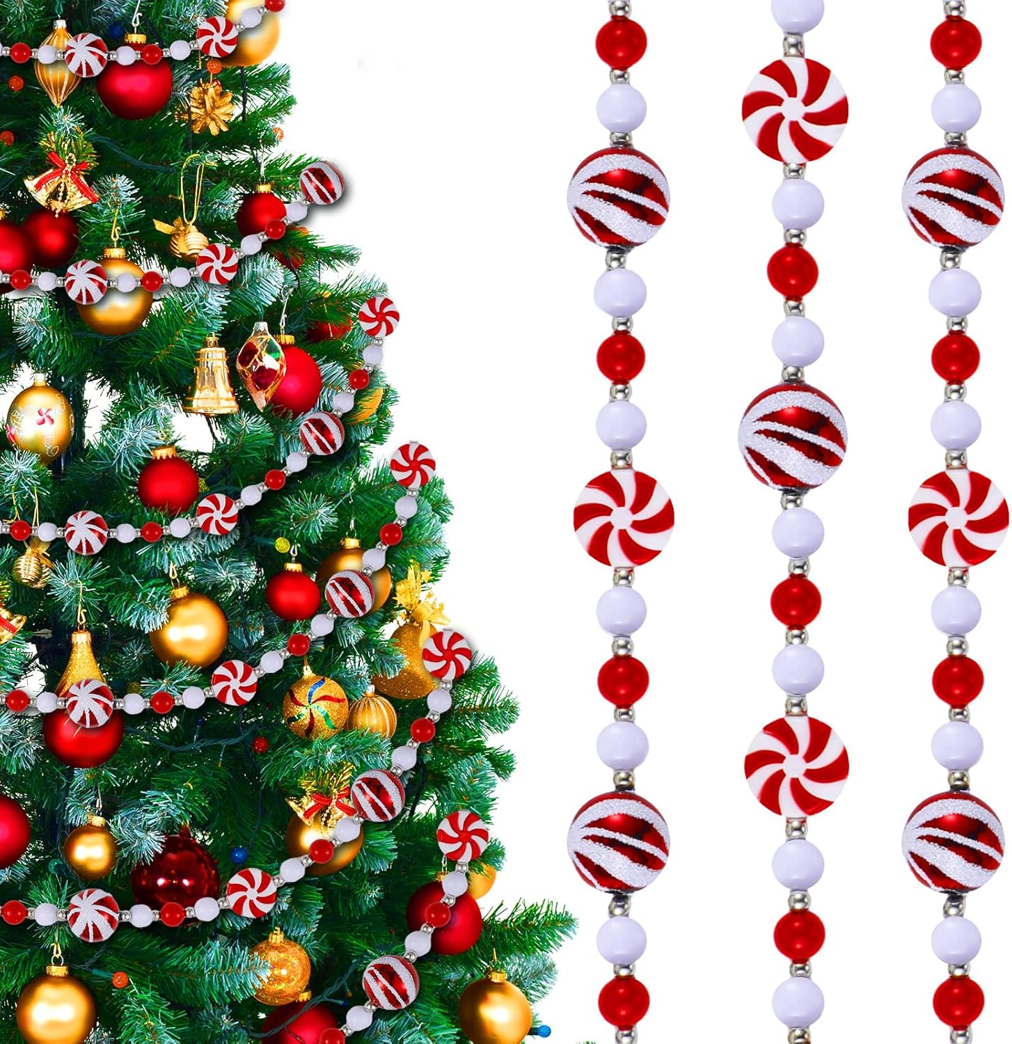 10 Feet Candy Garland for Christmas Tree Candy Cane Garland Peppermint Christmas Decorations Fake Crystal Glitter Candy Decor Christmas Tree Garland for Xmas Home Decoration