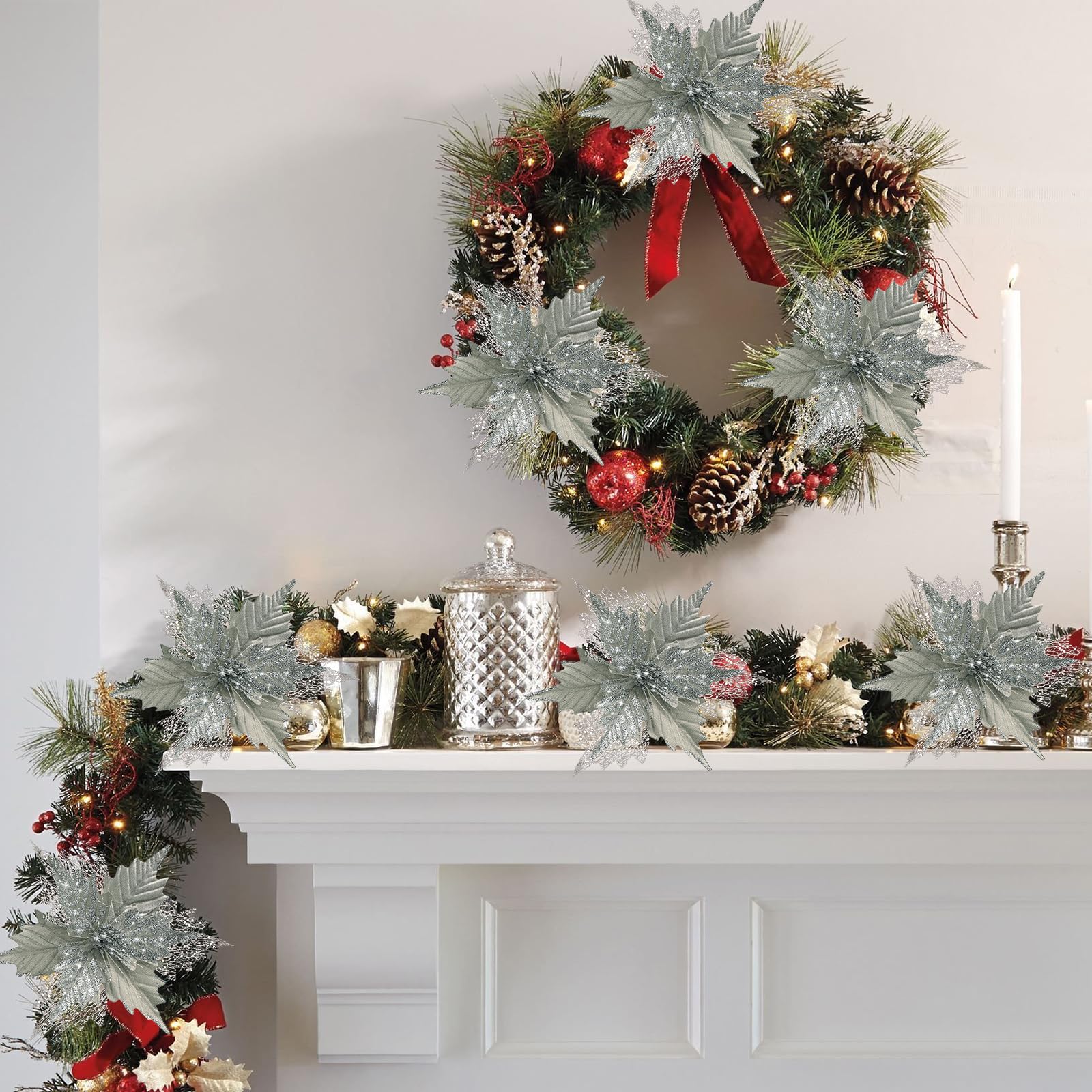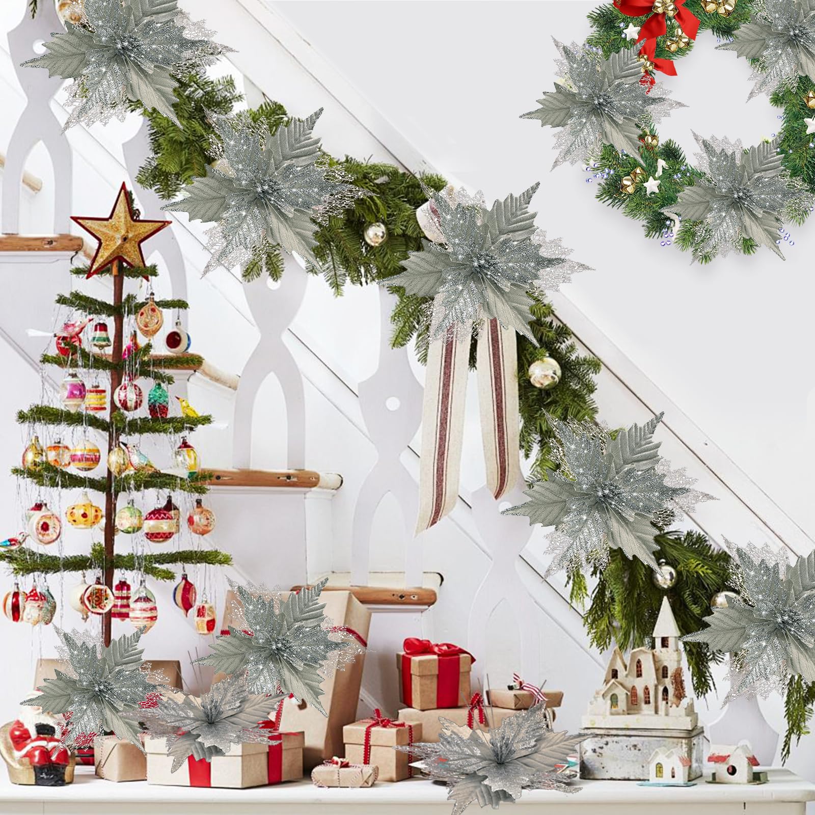• Holiday & Party Decorations: Sparkling artificial christmas flowers is the perfect addition to Christmas decorations, can be used to decorate Christmas tree, garland, boxes, fireplace, table centerpieces, door frames, and other places, and can also be used for holiday party, wedding, birthday party, Year's Eve, or other festive decorations to make your home or party filled with a festive atmosphere