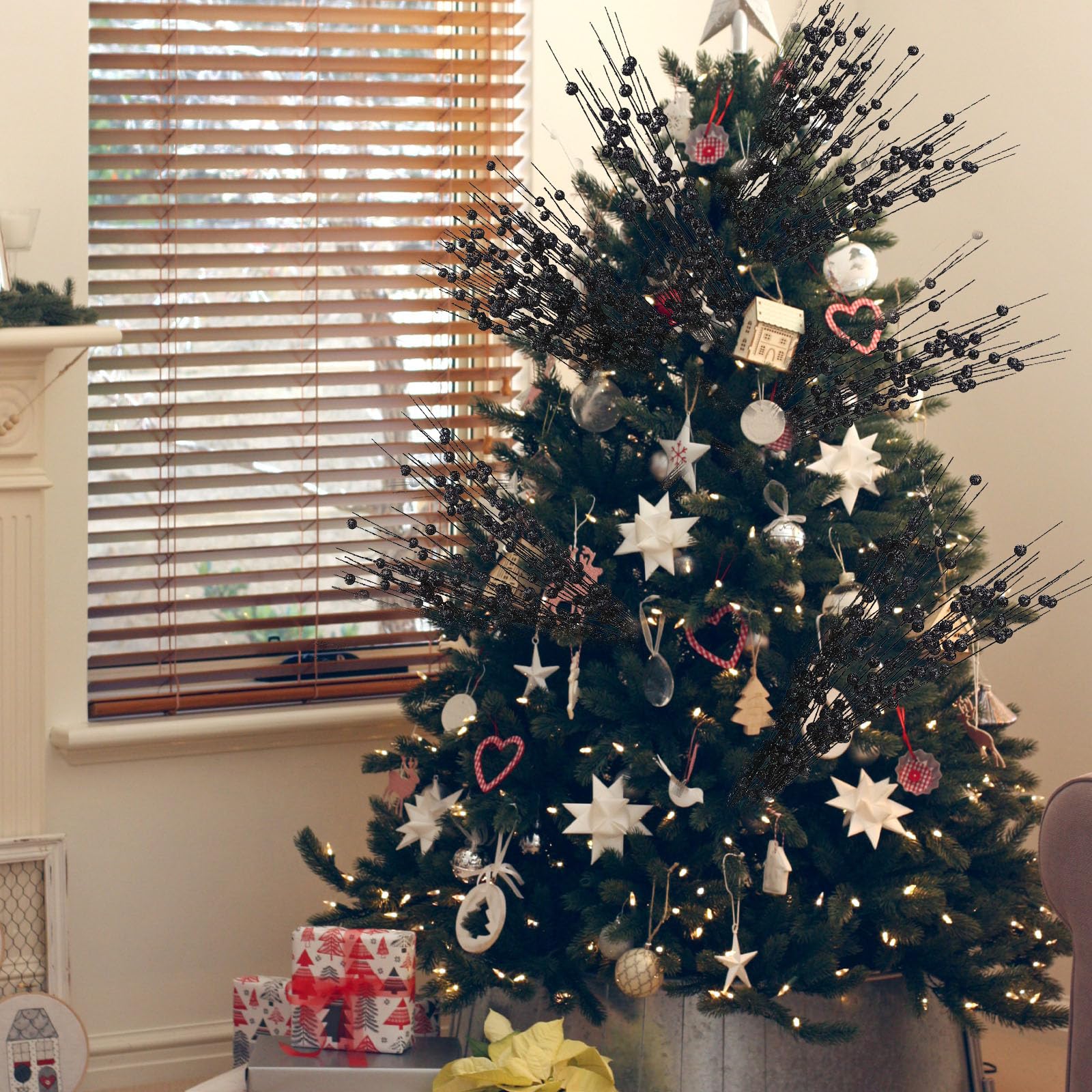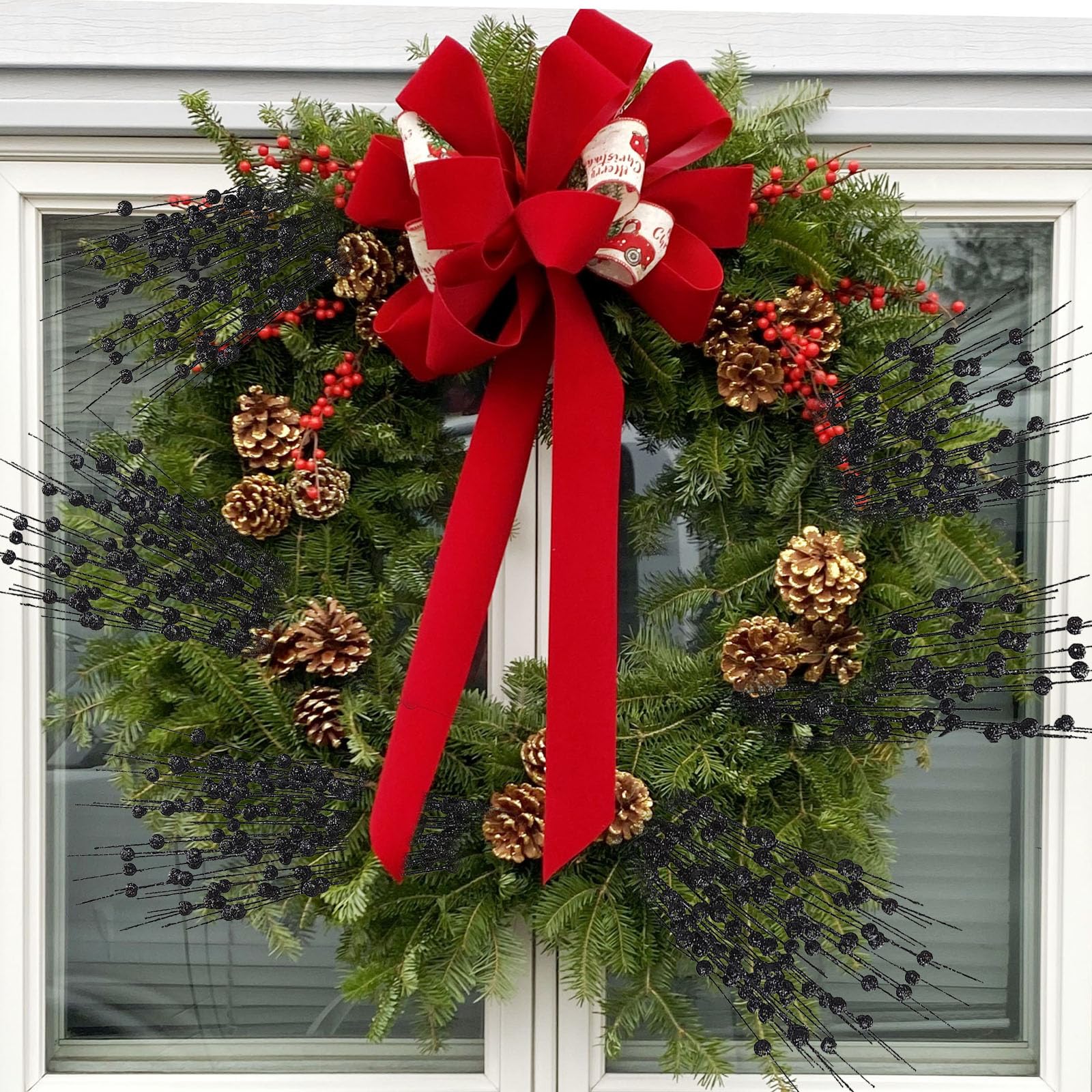 10 Pack Christmas Artificial Glitter Berry Stem, 17 Inches Black Glitter Christmas Decorations, for DIY Christmas Tree Xmas Wreath Vase Filler Home Party Decor