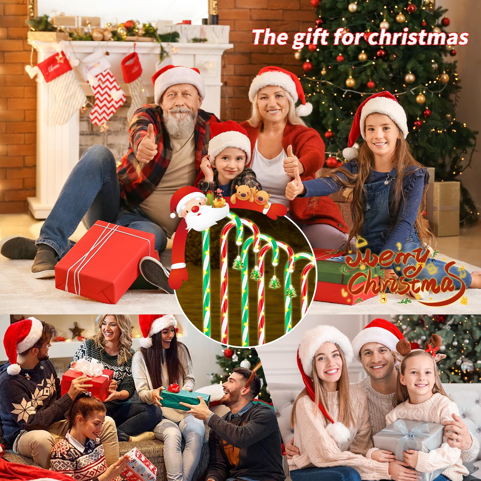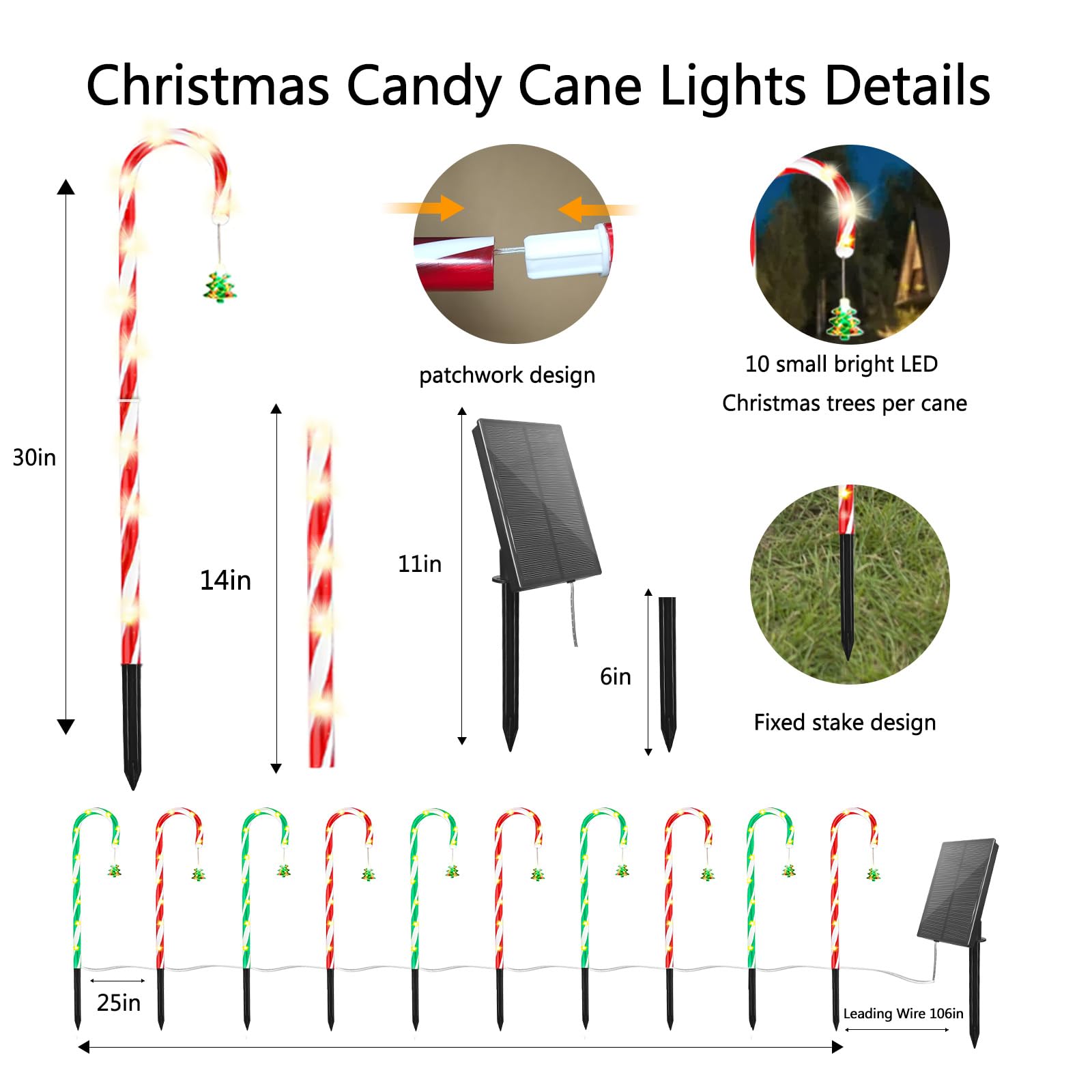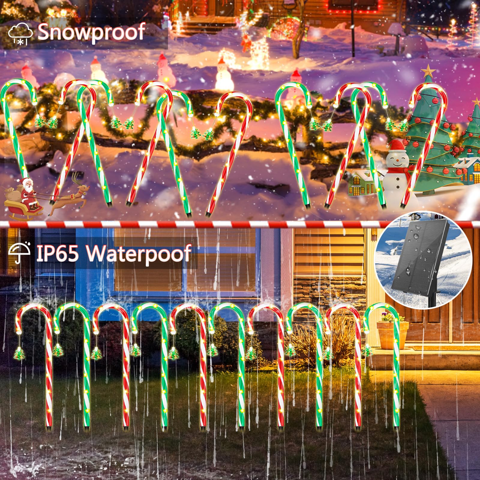 10-Pack d Solar Christmas Pathway Lights, Solar Christmas Candy Cane Lights Waterproof, Christmas Decorations Stakes Lights Outdoor with 8 Modes for Party Patio Garden Lawn Yard Decor
