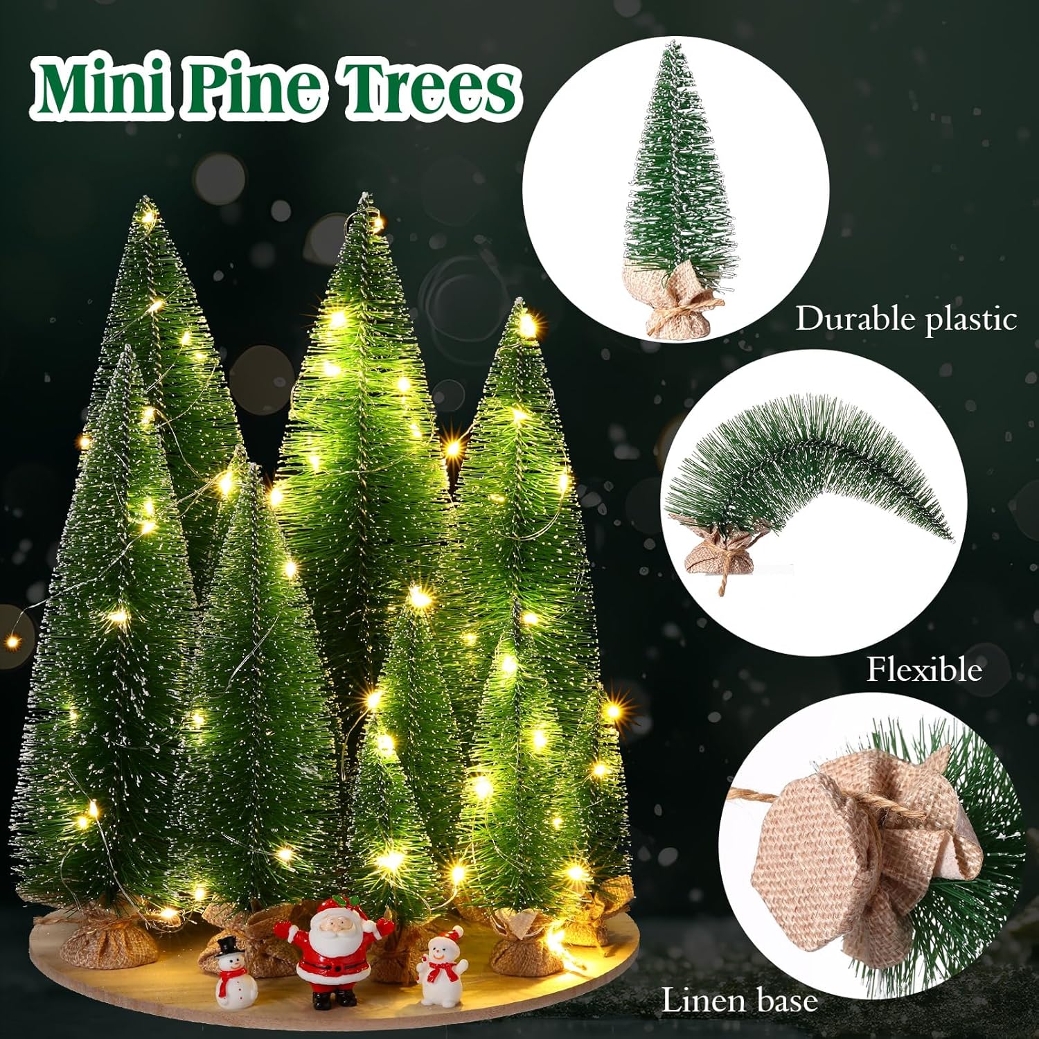 Christmas Table Decorations: you will get 10 pcs bottle brush Christmas trees in 5 sizes, respectively about 4 inches/ 10 cm, 6 inches/ 15 cm, 8 inches/ 20 cm, 10 inches/ 25.5 cm, 12 inches/ 30 cm, 2 pcs for each size The combination of different sizes is convenient to realize your various creative decorative ideas and bring you more realistic visual effectsRustic Snowy Design: the mini pine trees boast a snowy design that resonates with the winter season Each tree features a rustic linen covered base that effortlessly coordinates with your farmhouse Christmas village decorations These charming additions enable you to create a tranquil and realistic story scene, captivating your guests with their delicate and captivating charm