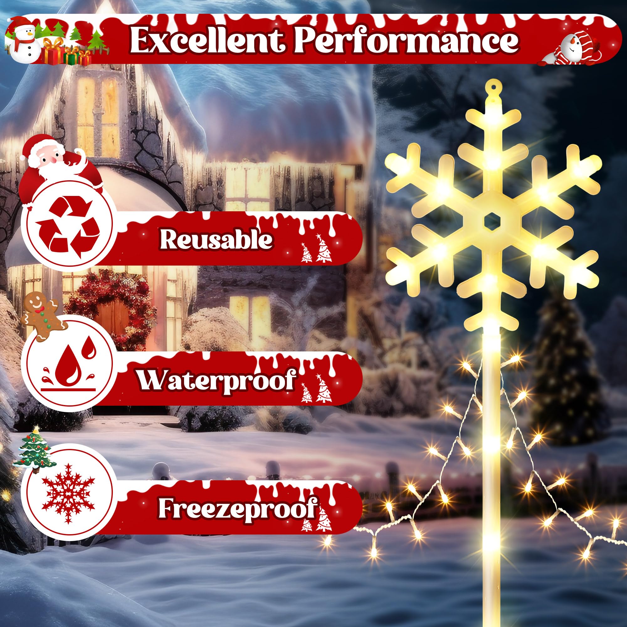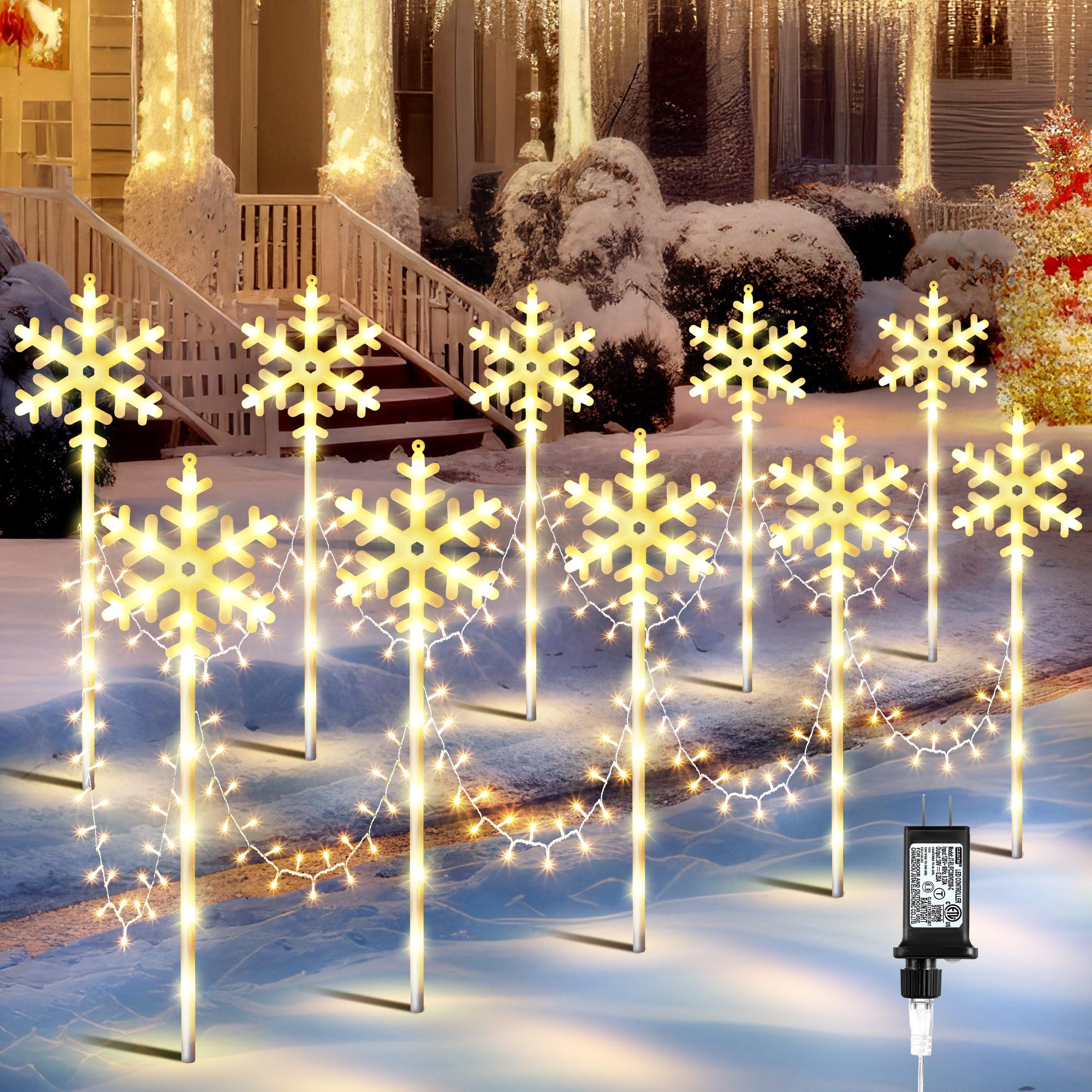10 Pcs Christmas Snowflake Pathway Stake Lights for Outdoor Yard, 370 Bright LEDs Waterproof Large Christmas Snowflake Light Decoration for Garden Lawn Driveway Walkway Decor (Warm White)