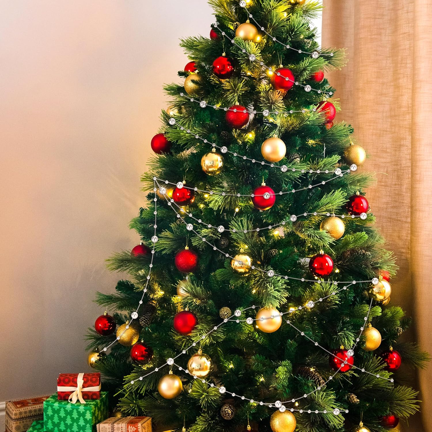 100 Feet Christmas Tree Decorations, Christmas 2 Sizes Hanging Beads Garland Chain, Christmas Tree Beads Trim Garland Decoration for Home Mantle Fireplace Wreath Xmas Tree Decor Supplies