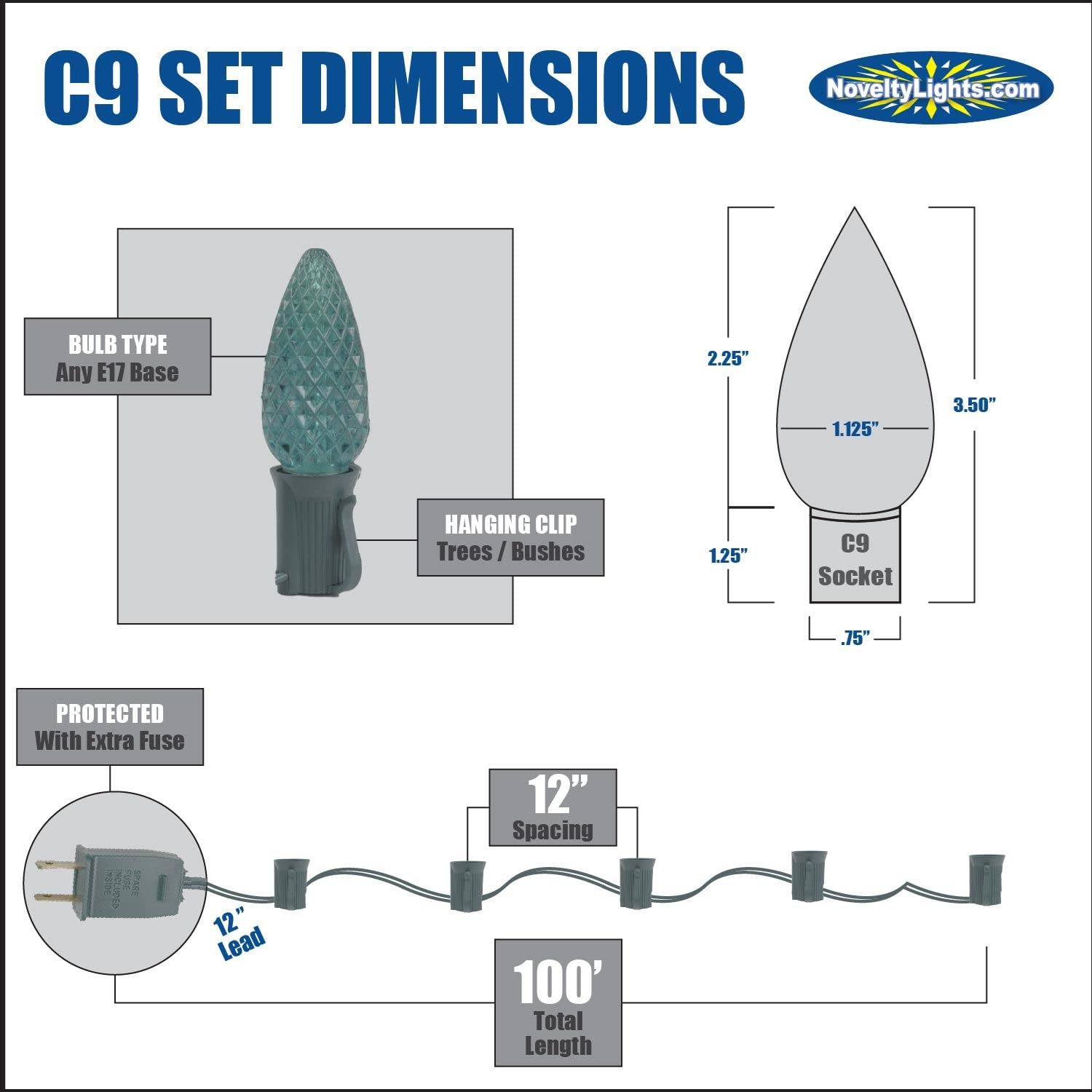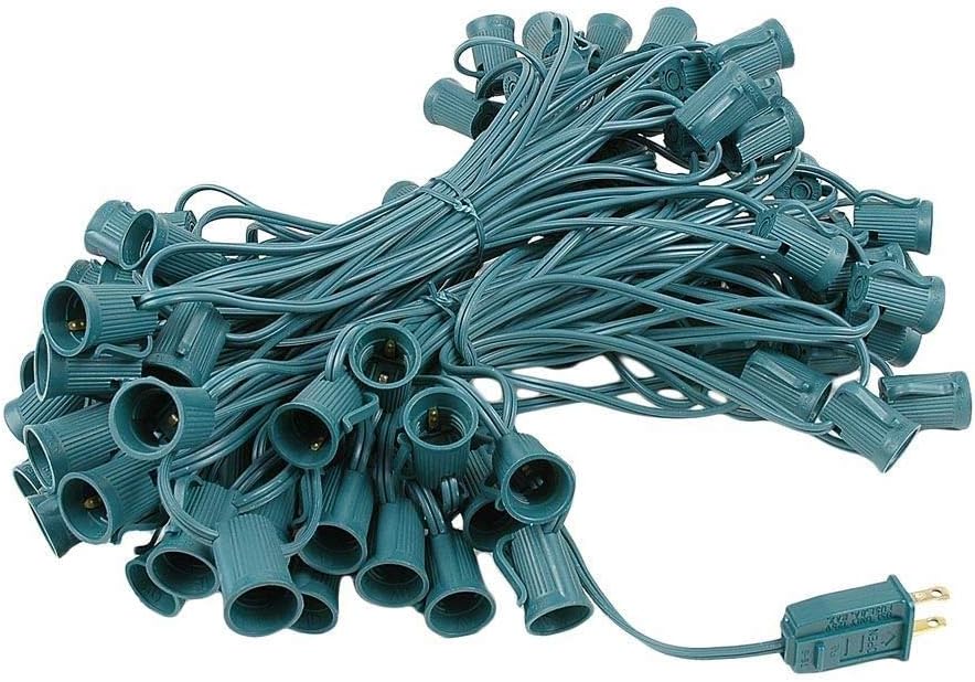 100 Foot C9 Red Ceramic Christmas String Light Set - Outdoor Christmas Light String - – Opaque Christmas Bulbs - Roofline Light String – Outdoor String Lights - Green Wire