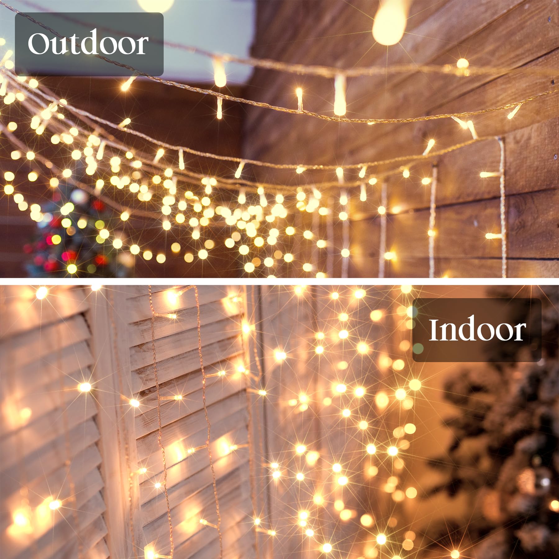 • [Timing Function]-Our outdoor christmas lights waterproof have a timing function, which brings convenience for use. No matter decorated in used in garden, yard, trees, porch, fence, bistro . It can also be used for weddings, parties, Christmas and Year's parties to create a warm and joyful holiday atmosphere.