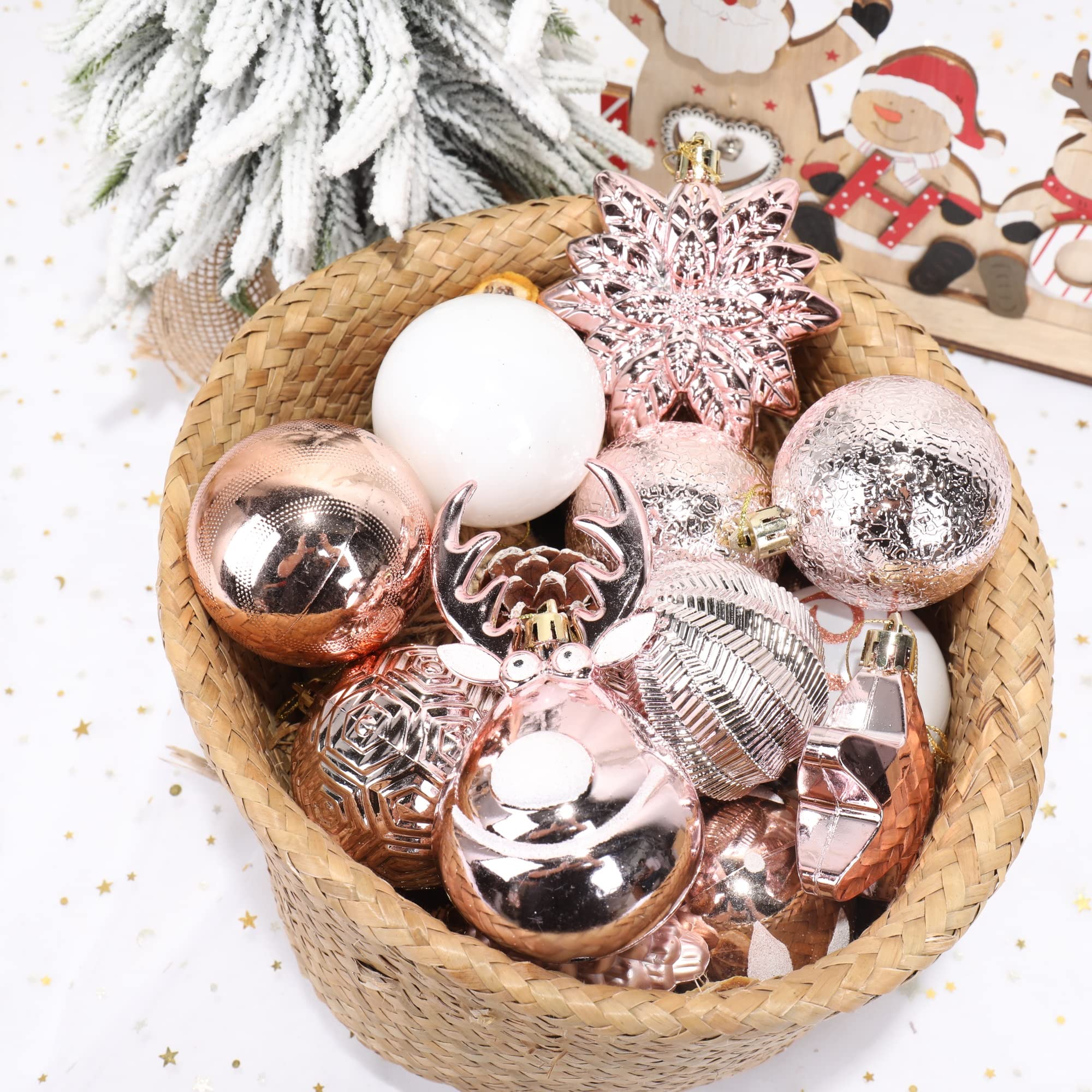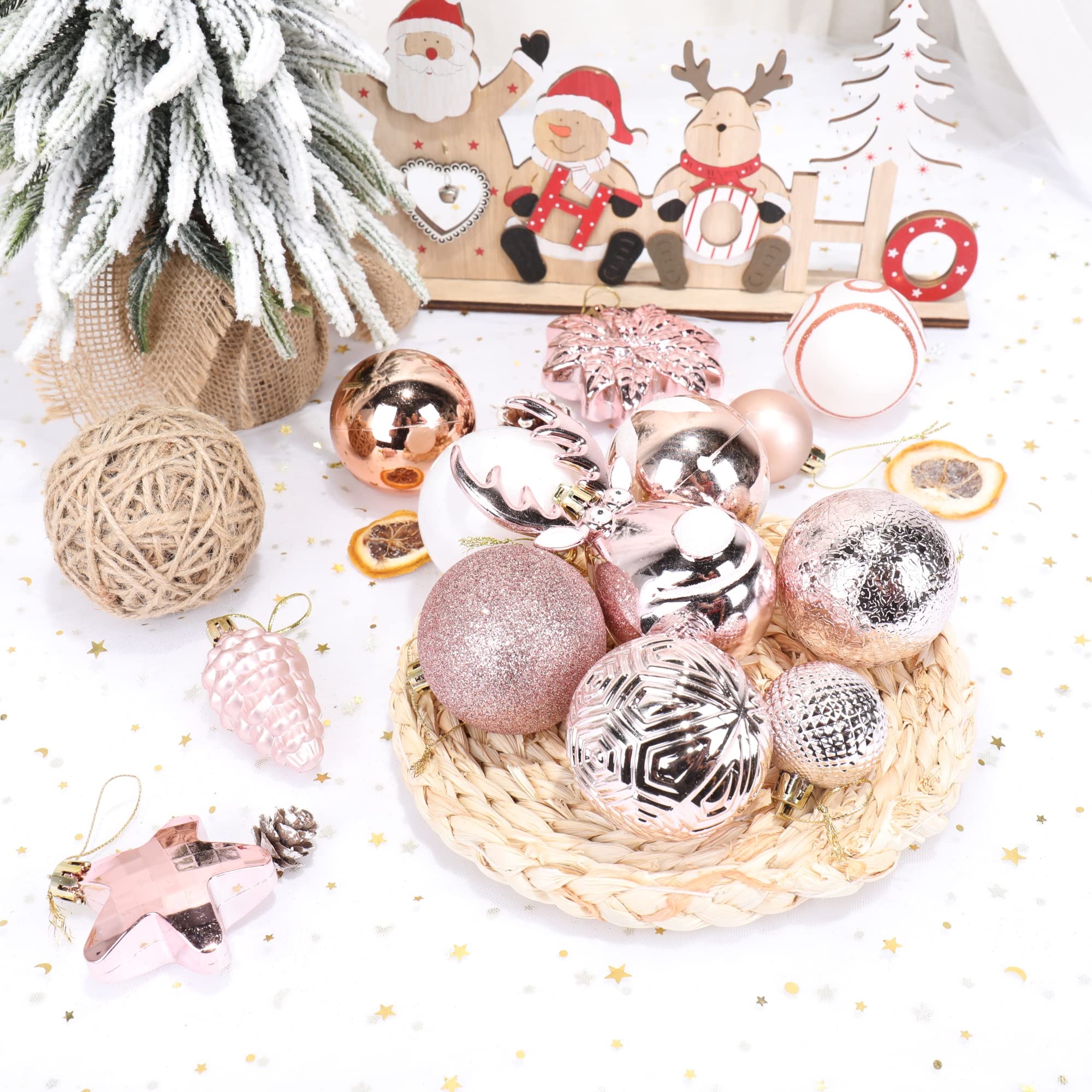100-Pack Various Shatterproof Christmas Balls, Christmas Decorative Ball Ornaments for Xmas Tree- Rose Gold