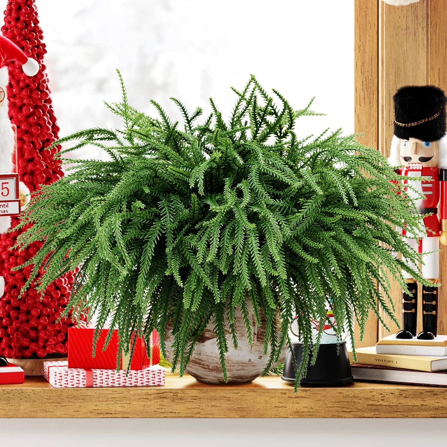 100 Pcs Christmas Norfolk Pine Branches, Christmas Greenery Stems, Artificial Pine Branches DIY Crafts Faux for Xmas Wreath Garland Indoor Outdoor Home Kitchen Garden Holiday Accessories Decor