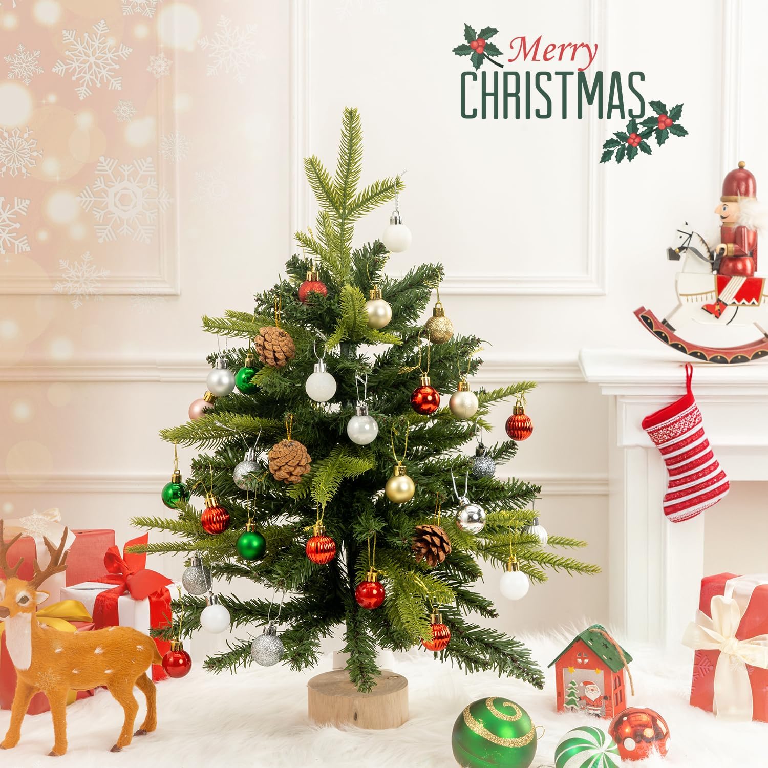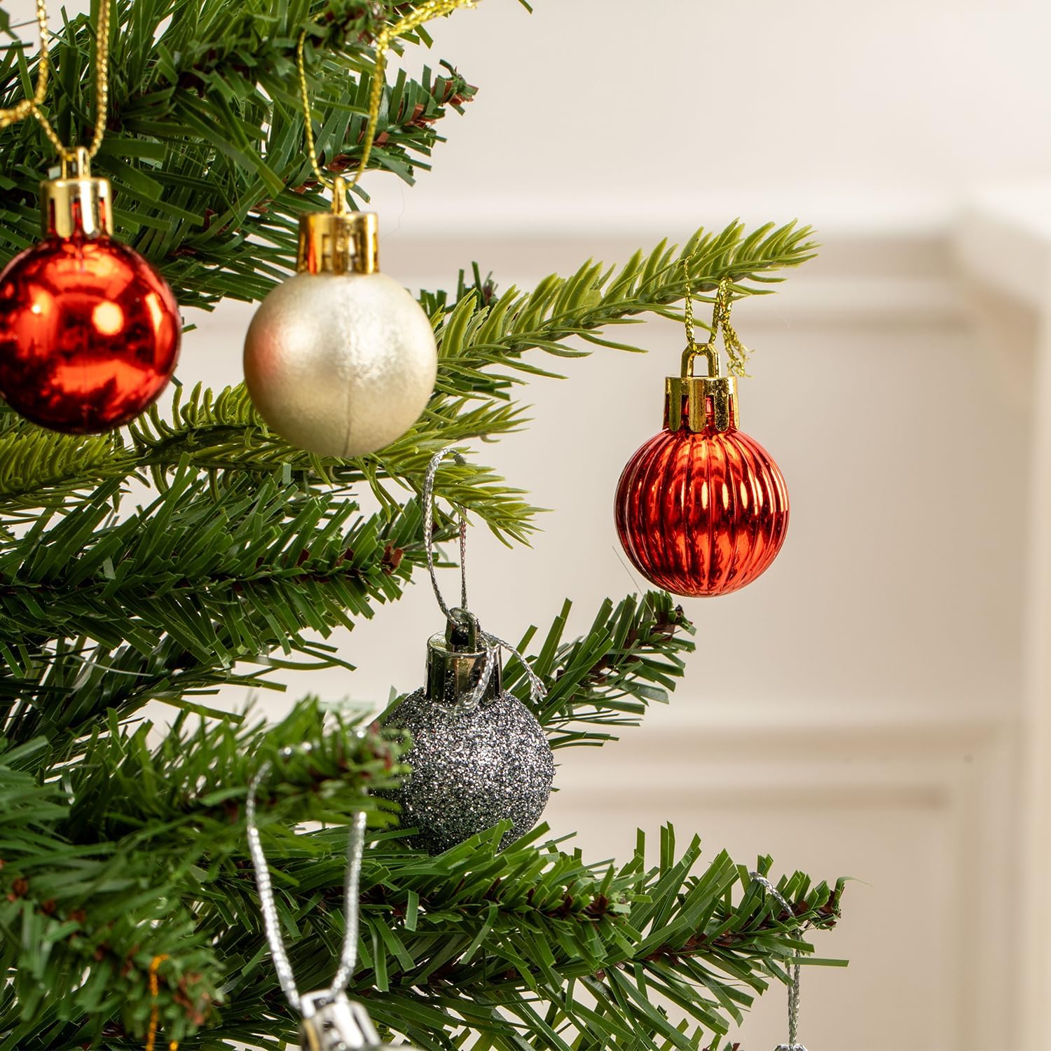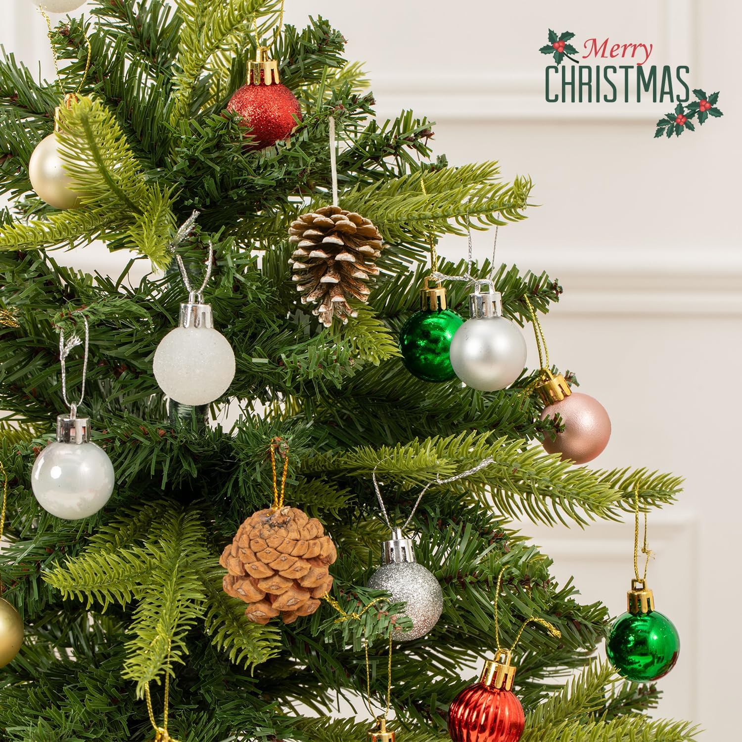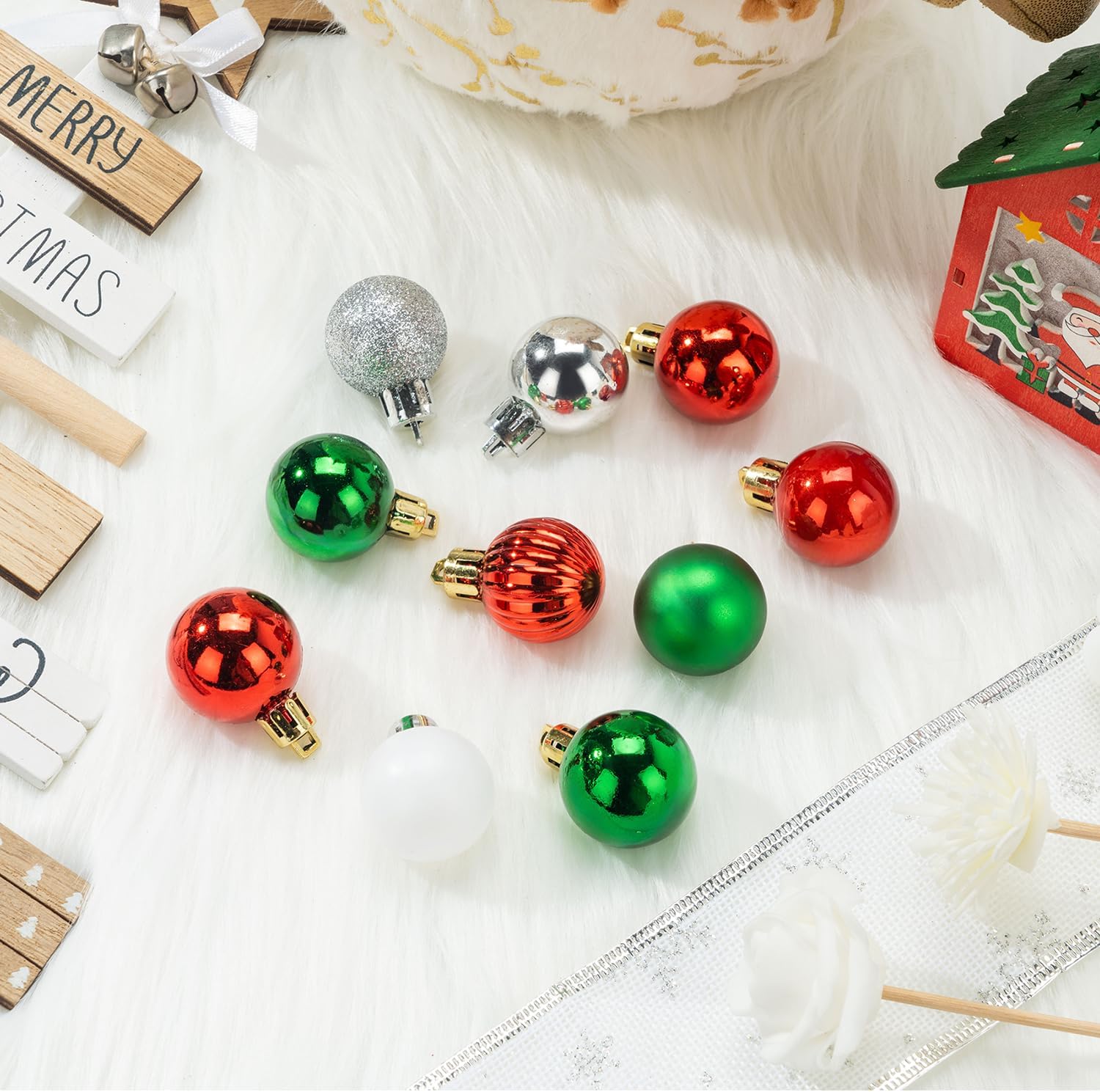 100 Pcs Mini Christmas Ball Ornaments Set, 1.18'' Red Green and White Small Shatterproof Xmas Tree Ornament Hanging Ball Bulk Decorations for Holiday Party, Wreath, Garland, Winter Decor