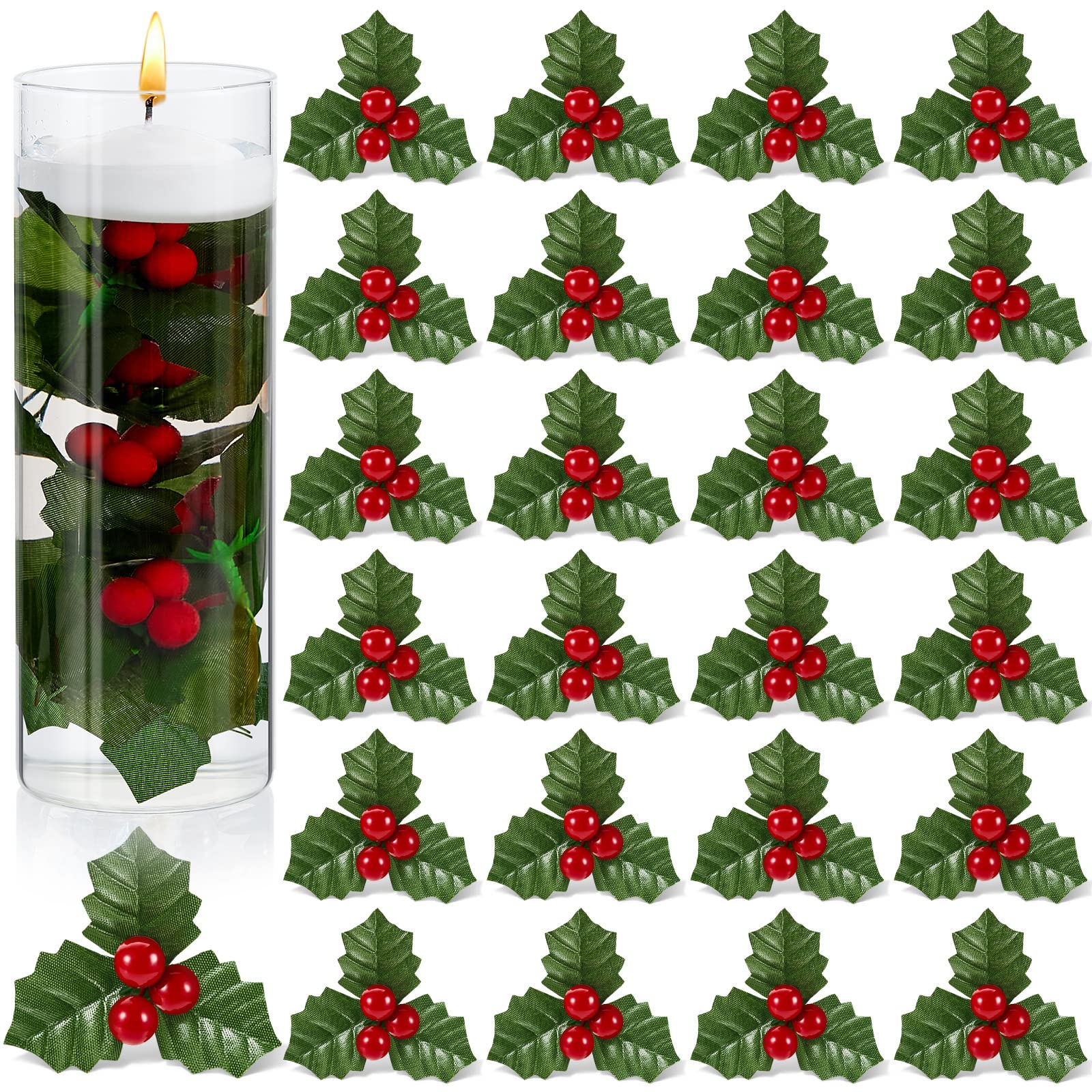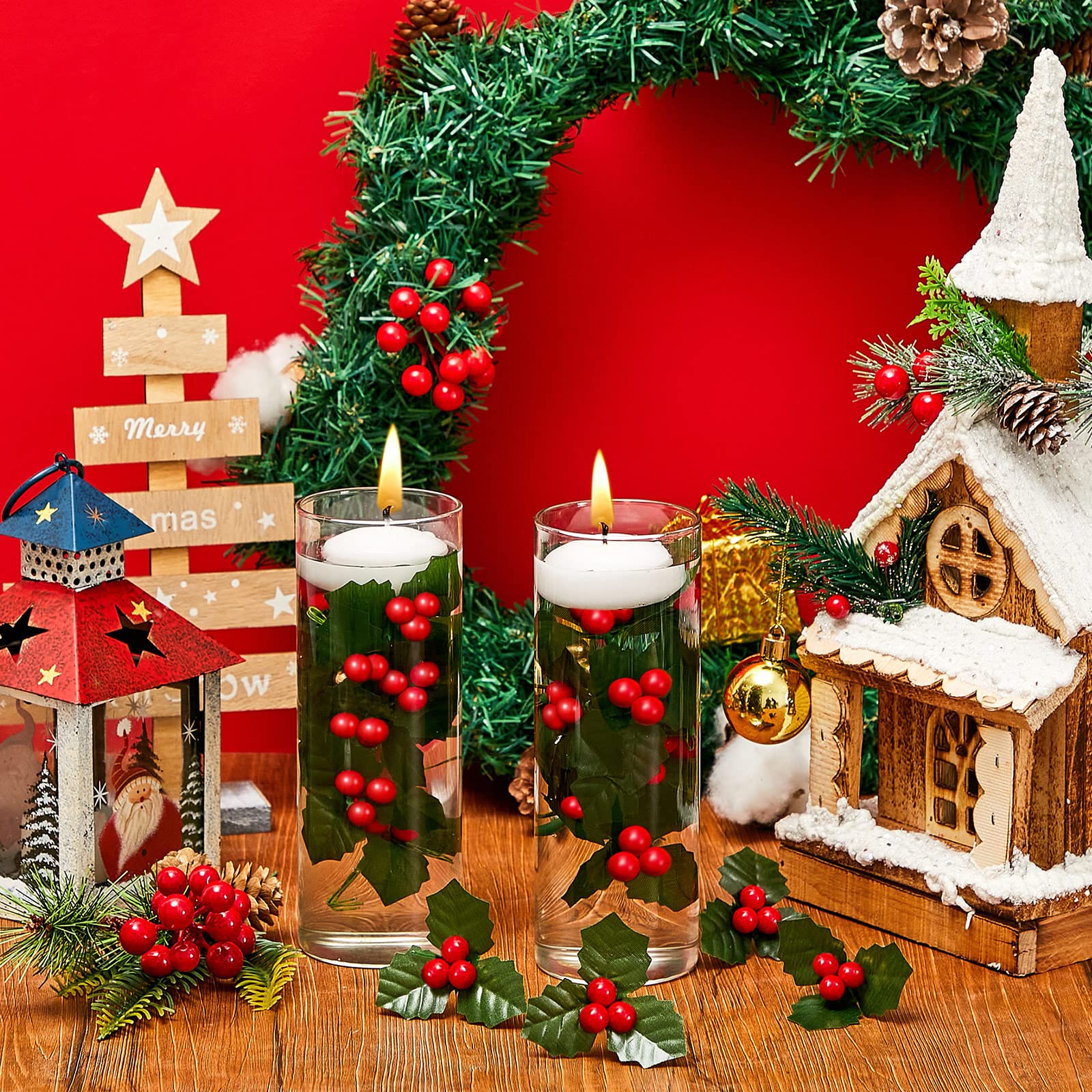 100 Pieces Christmas Holly Berries for Crafts Faux Berry Flowers Holly Leaves and Berries Christmas Wreath Fillers for Christmas Vase Fillers Floating Candle Table Centerpiece