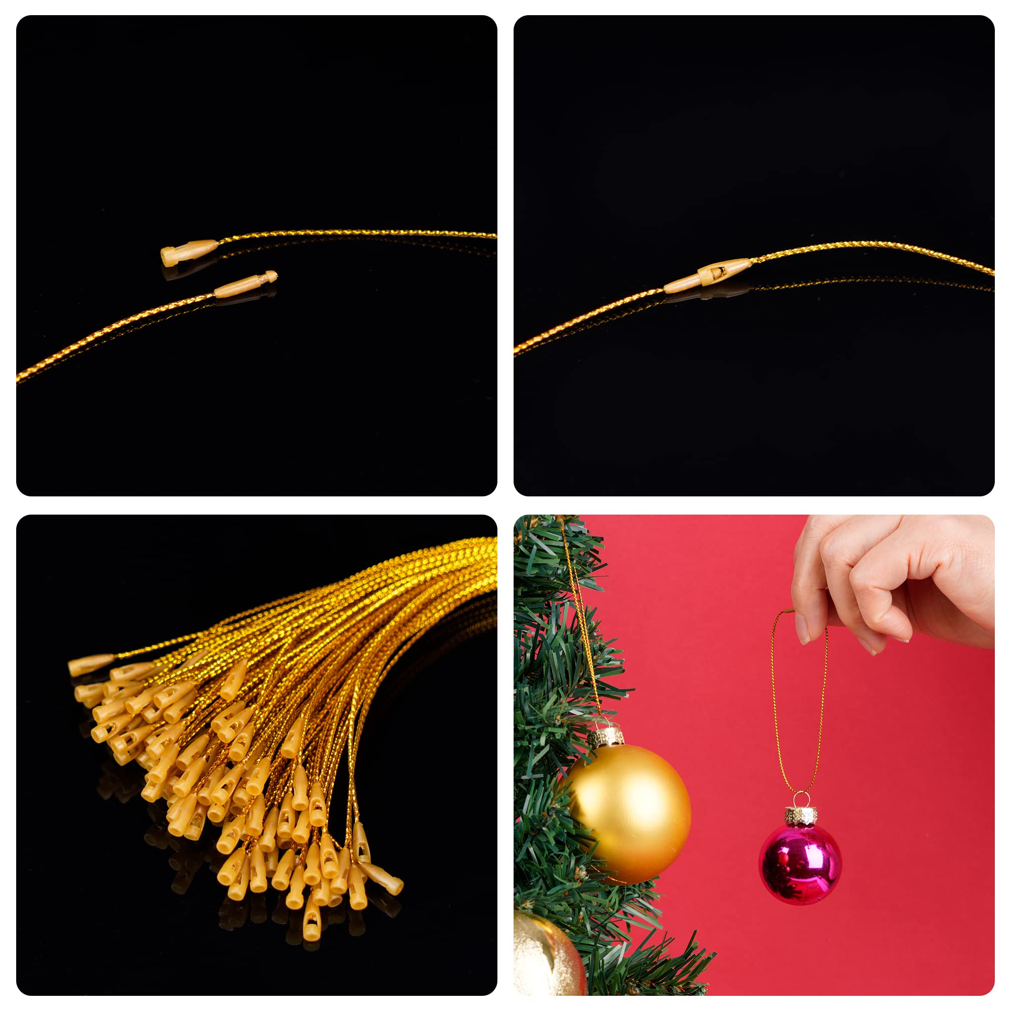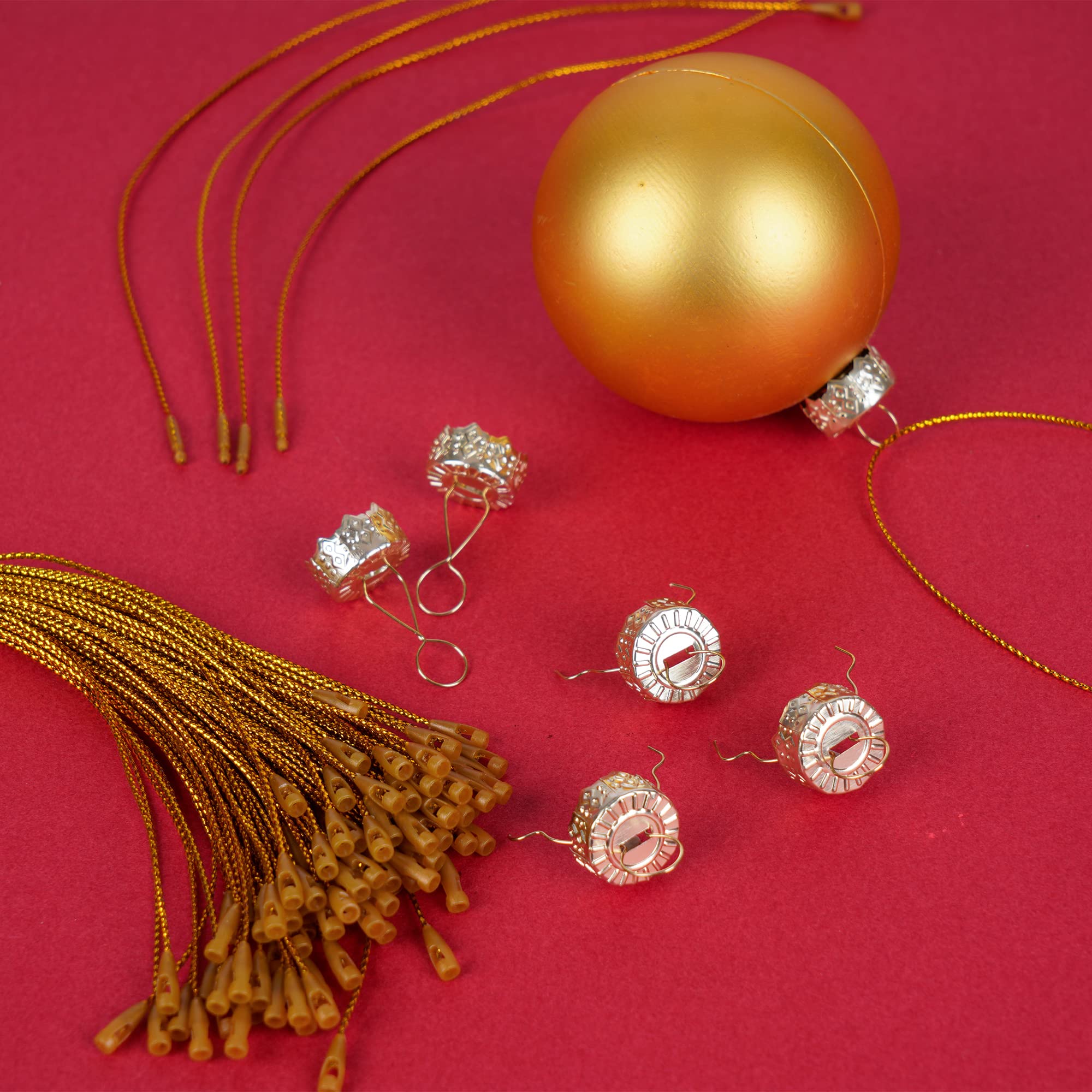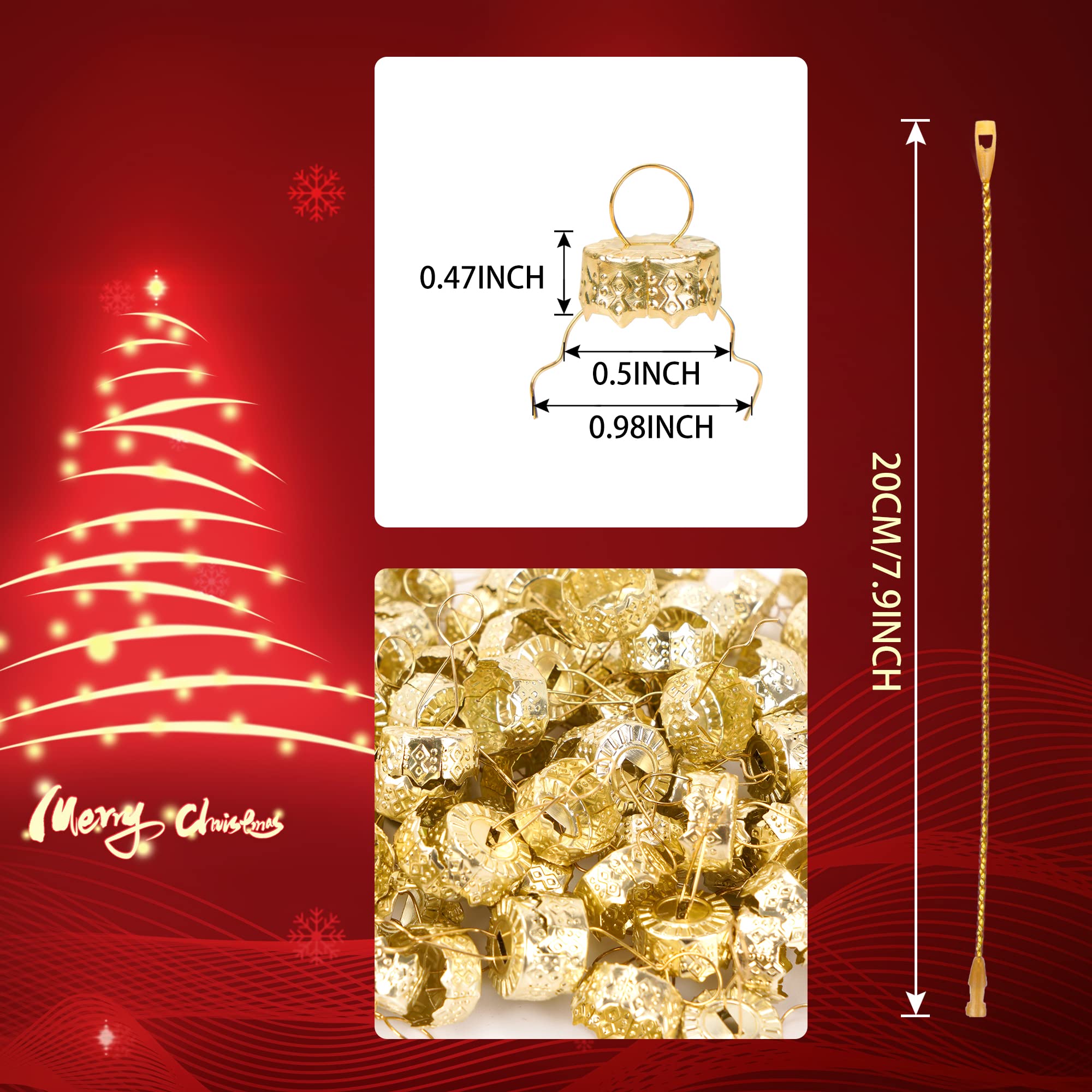 100 Pieces Round Christmas Ornament Caps and Christmas Ornament Hangers String Set, Christmas Hangers Caps for Christmas Tree, Ceramic Glass Porcelain Christmas Ornaments DIY Decorations