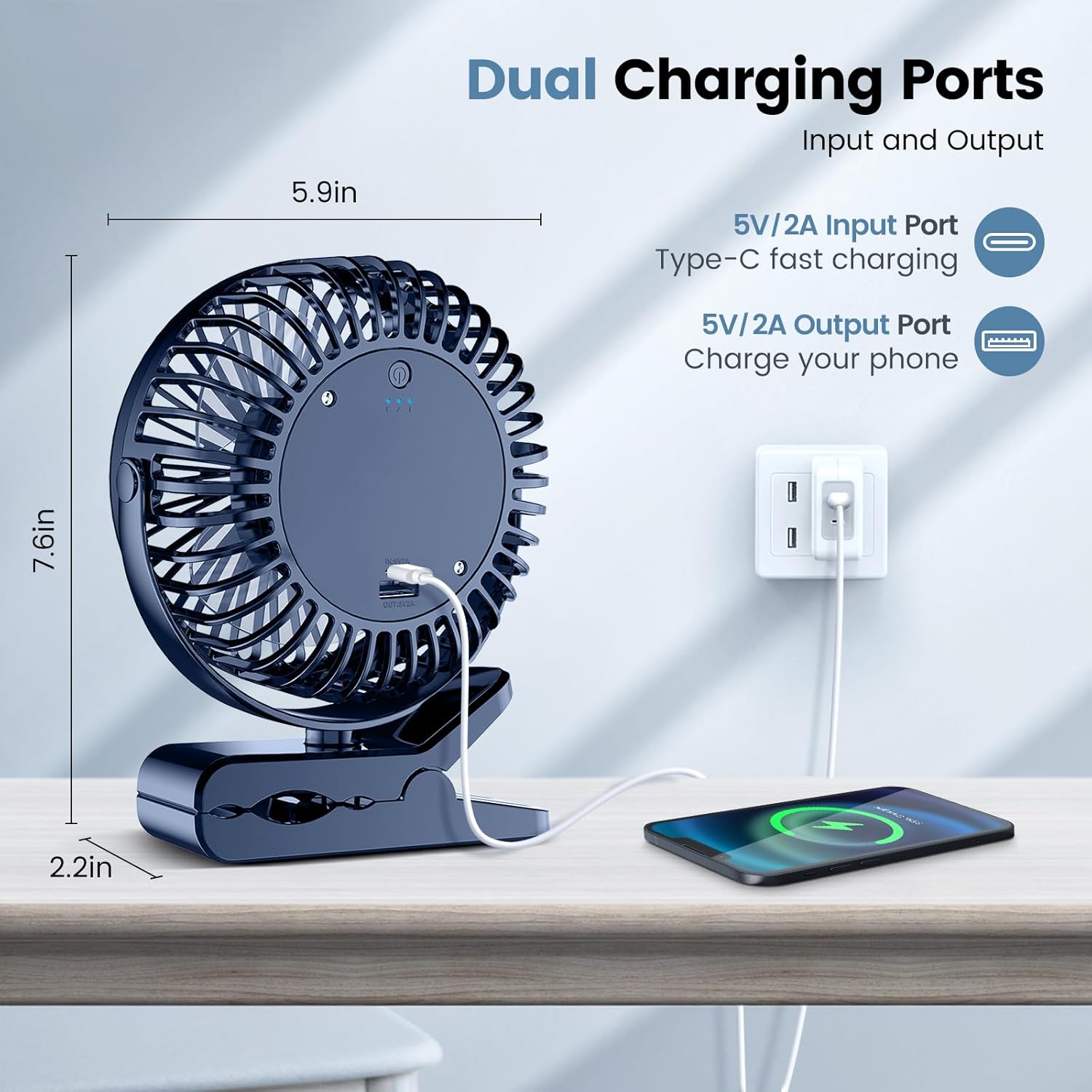 10000Mah Portable Fan Rechargeable, Battery Operated Desk Clip On With Led Light, 3 Modes 360 Rotation Personal Usb Small