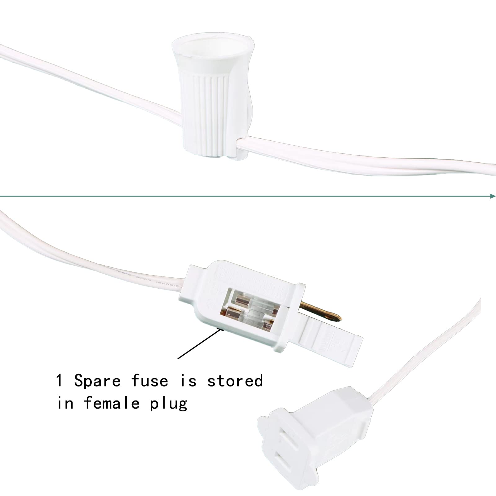 100FT C9 Light String Christmas Stringer, E17 Light Sockets 12" Spacing, C9 Stringer Set White Outdoor String Light Strand for Wedding Patio Event Lighting Decor, White Wire