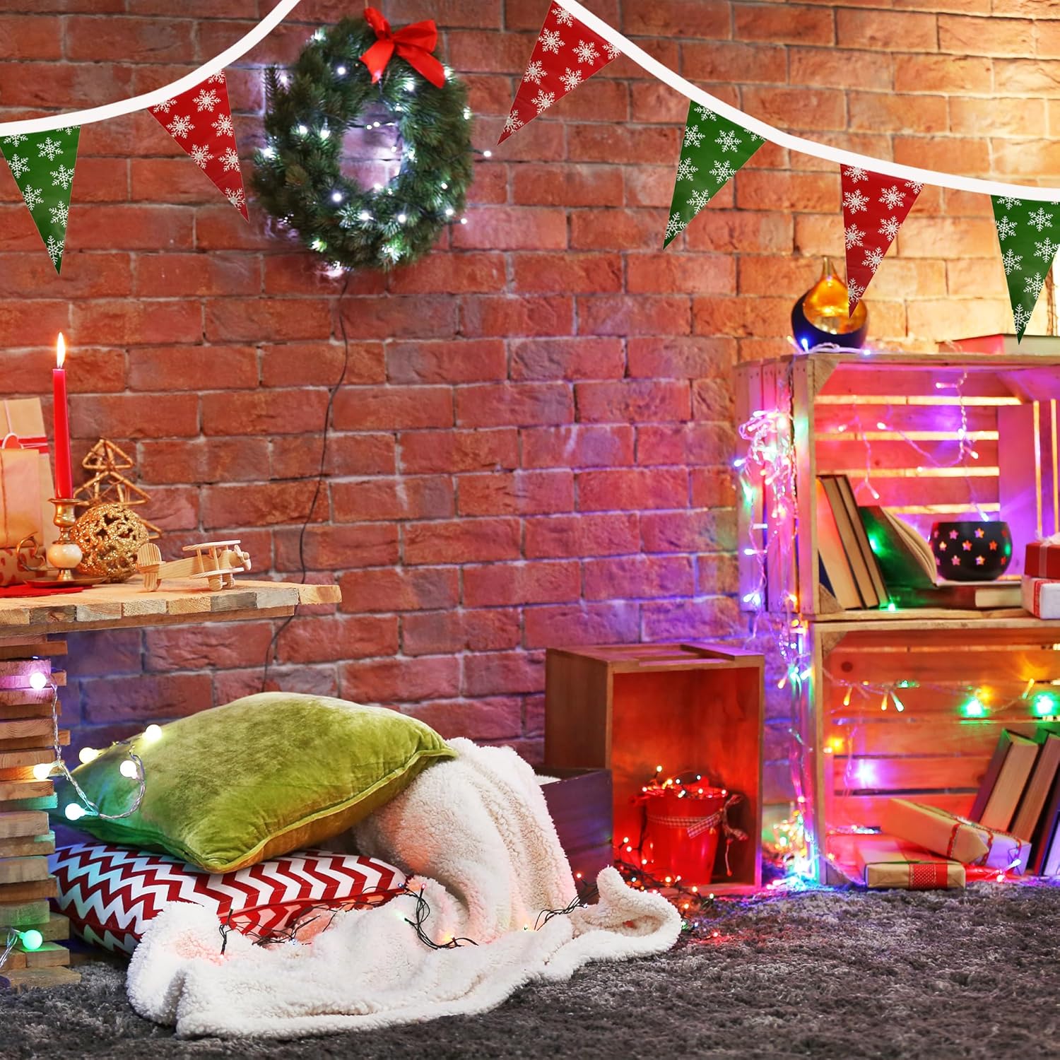 Included in Package: Receive 1 pack of Christmas bunting banner garland featuring red and green triangles with white snowflakes. The triangles measure 17” x 10.5”, creating a festive winter atmosphere.Easy to Use: Hang these red, green, and white Christmas party banners effortlessly both indoors and outdoors. Ideal for decorating your home, walls, bedrooms, dining rooms, ceilings, fireplaces, windows, gardens, branches, fences, restaurants, and bars. Quick and hassle- setup.