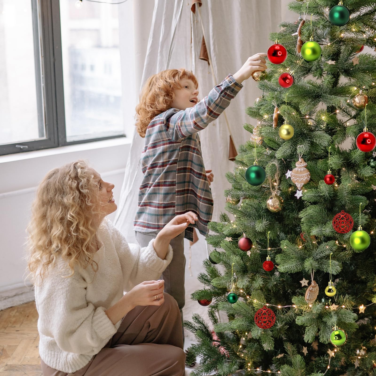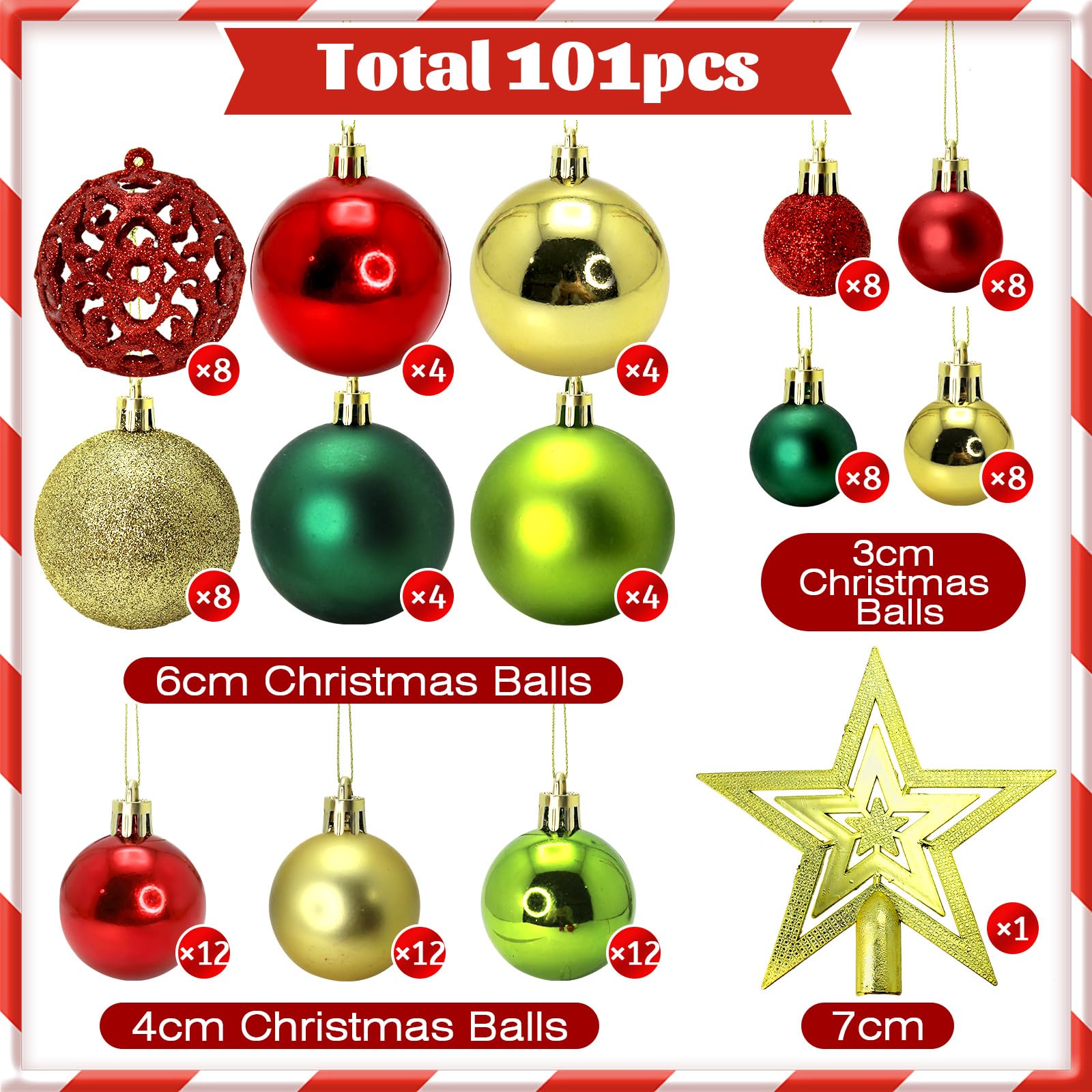101pcs Christmas Ball Ornaments Set, Shatterproof Christmas Decorations Set with Reusable Hand-held Package for Xmas Tree Decor Holiday Wedding Party Holiday Indoor Decor (Gold&Red&Green)