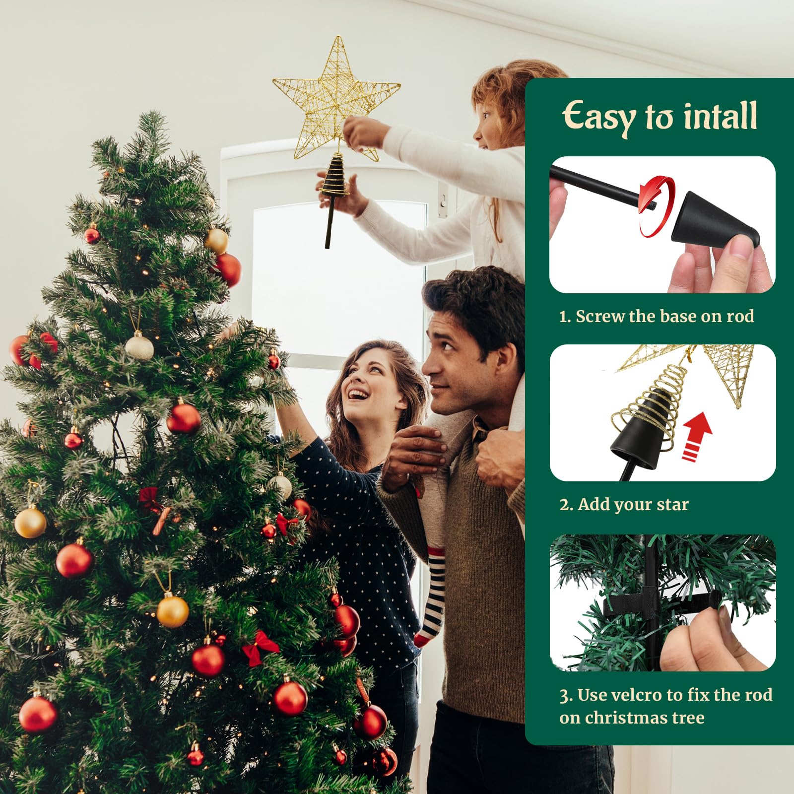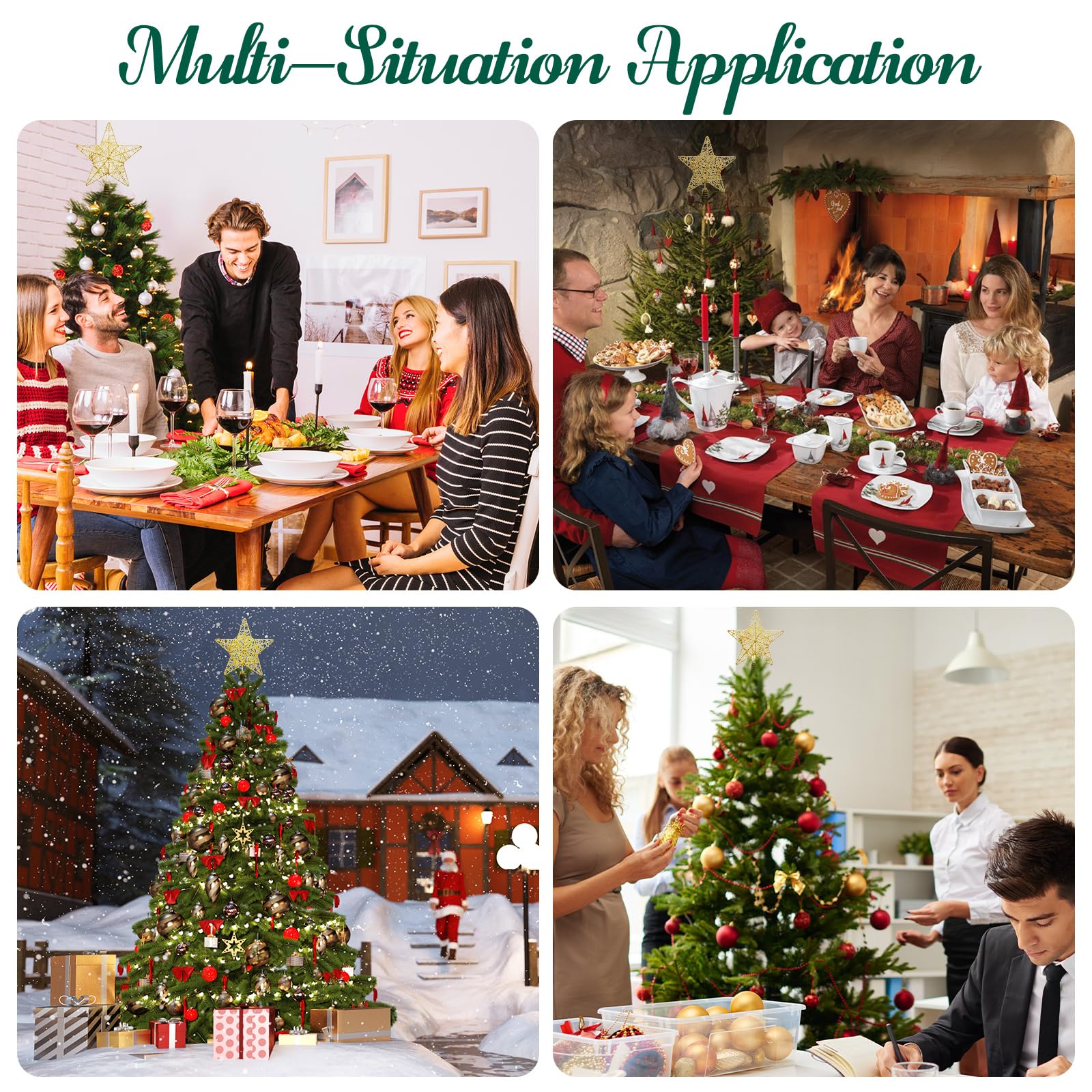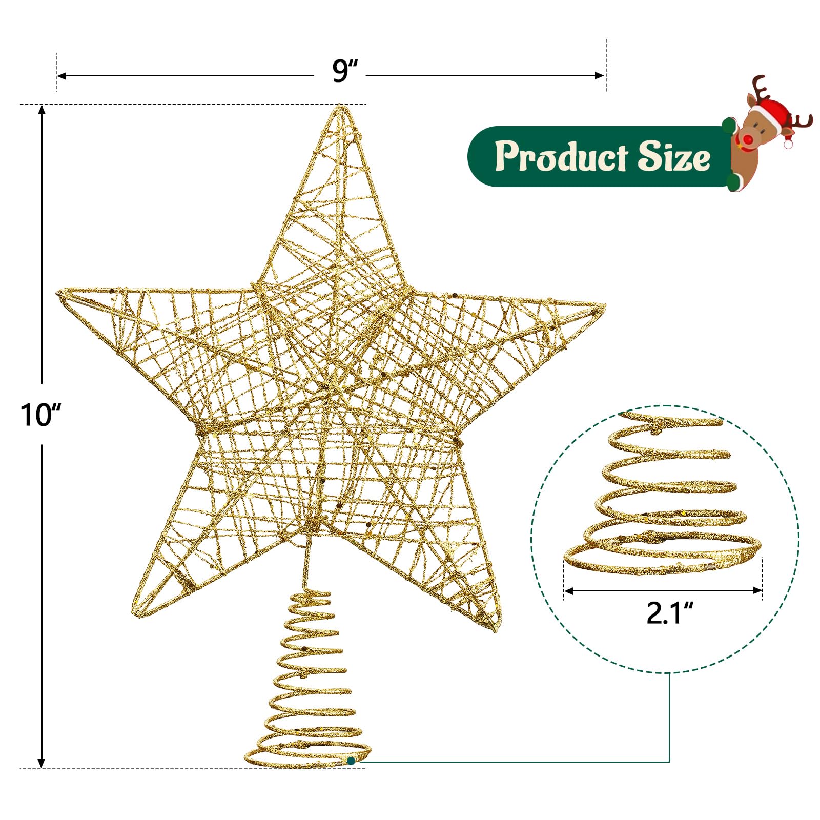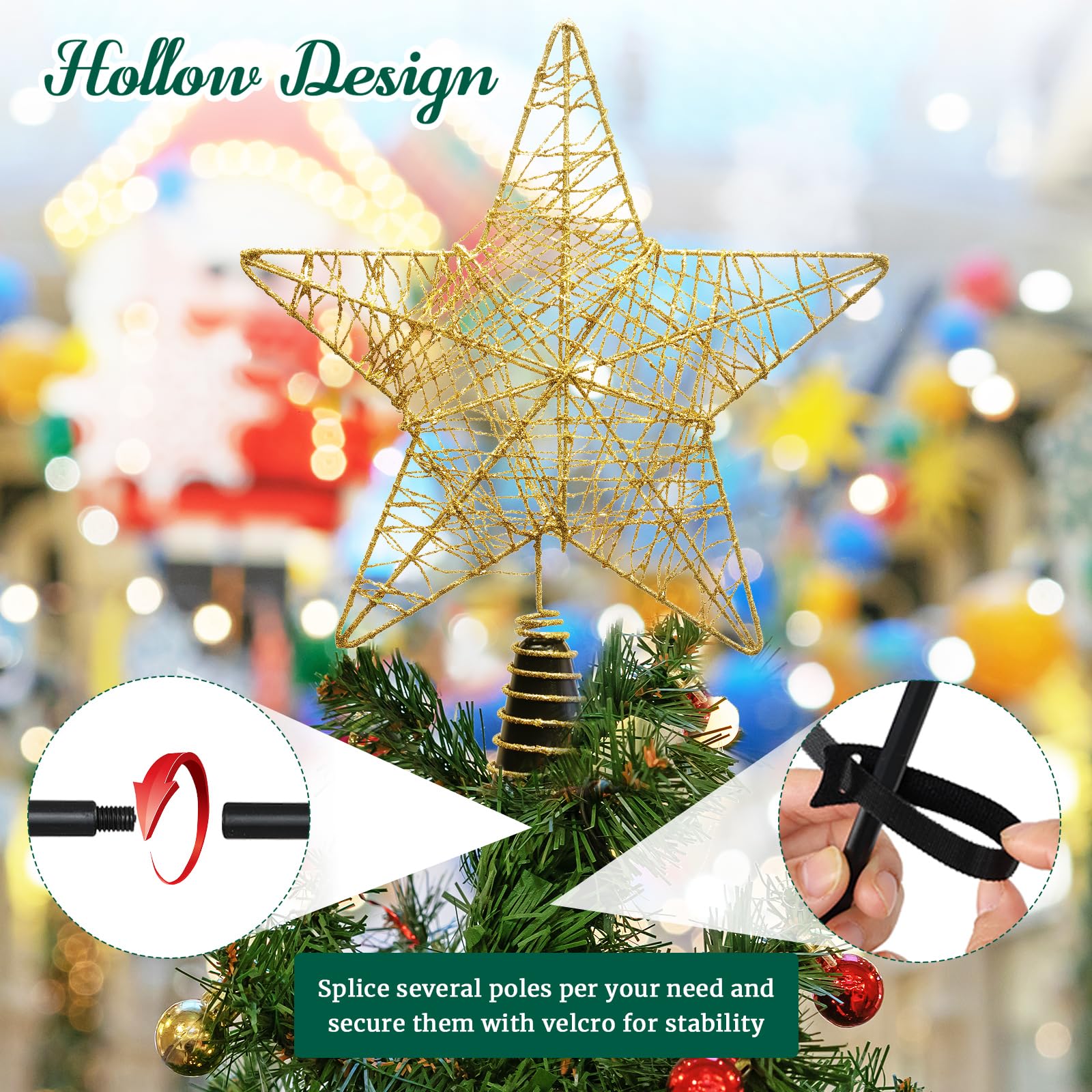 10inch Christmas Tree Toppers Xmas Glitter Gold Hollow Star Treetop Topper for Holiday Ornament Christmas Tree Decoration