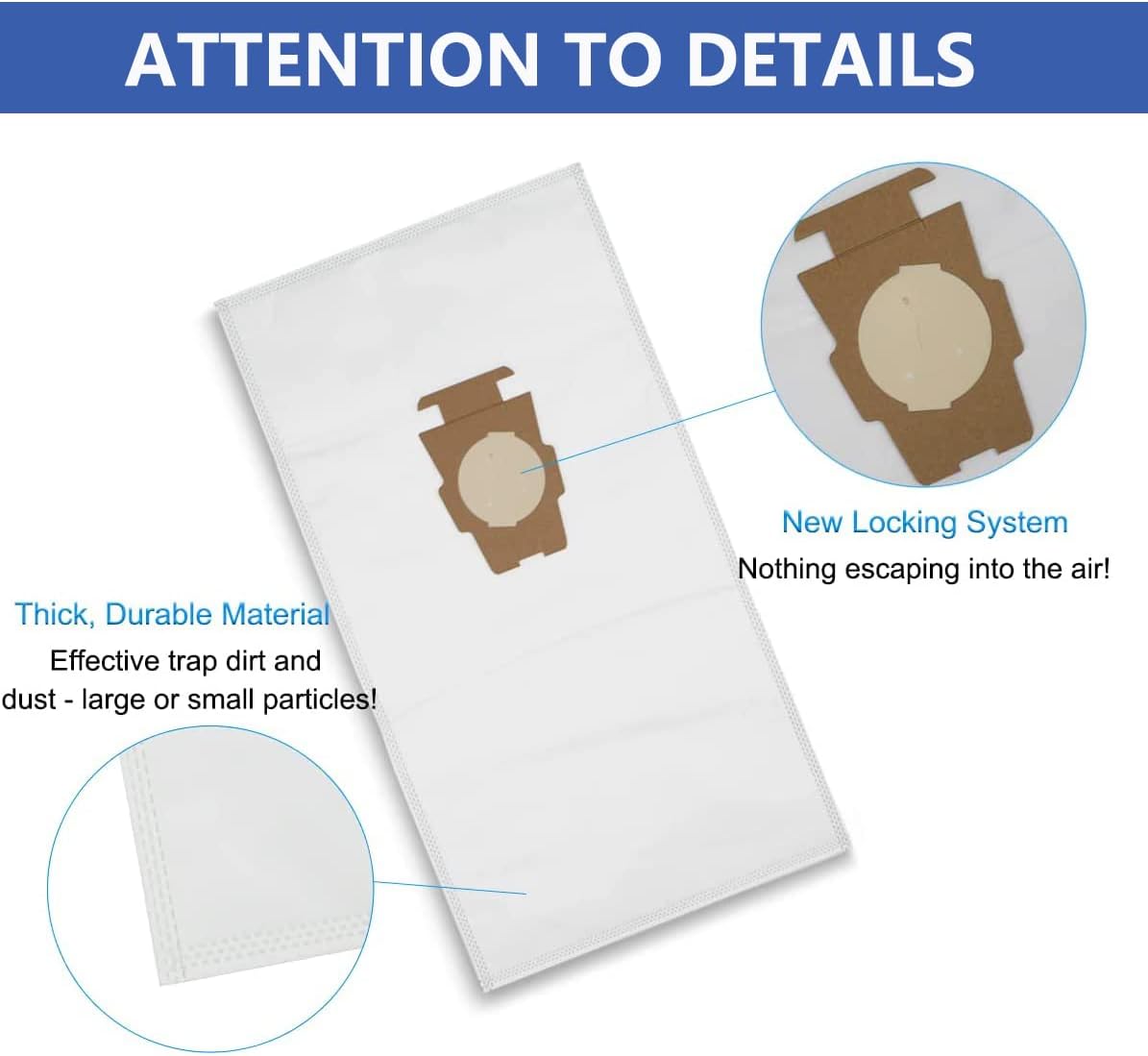 Universal Fit Models Compatible with Kirby Generation Series: Generation 1, Generation 2, Generation 3, Generation 4, Generation 5, Generation 6, Generation 7, Generation 9 Compatible with Kirby G Series: G3, G4, G5, G6, Gsix, G7, G3D, G4D, G5D, G6D, G7D, G10, G10D, G10E, G10Se, G 2000, G 2001 Part number: 204808, 204811, 204814, 205811 & 205814 These bags are universal style and fits both FStyle and TwistStyle adapters These dust collector bags with H11 high efficiency filters present a premium and reliable performance.Package includes 10 bags and 2 belt 301291.