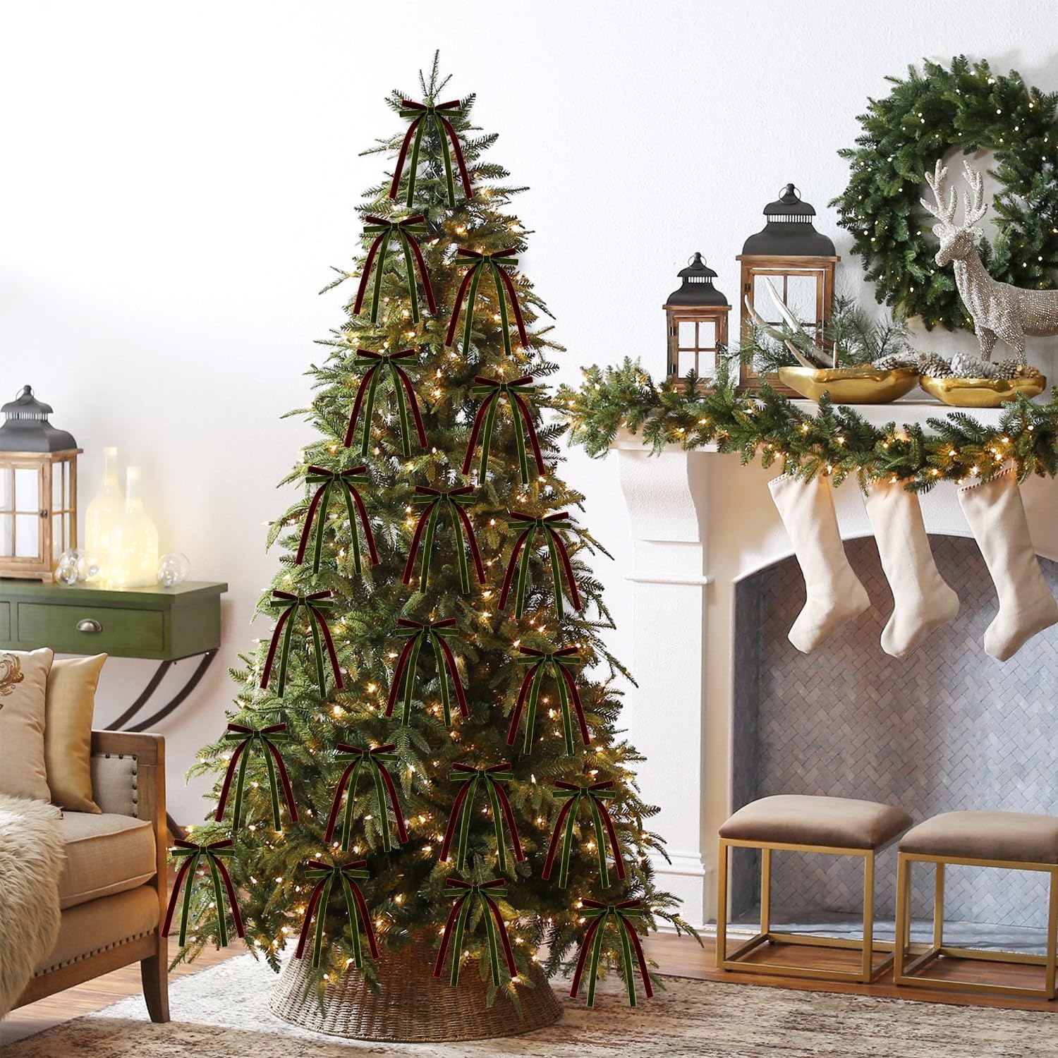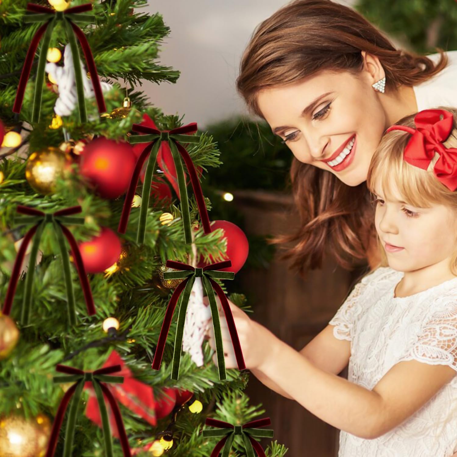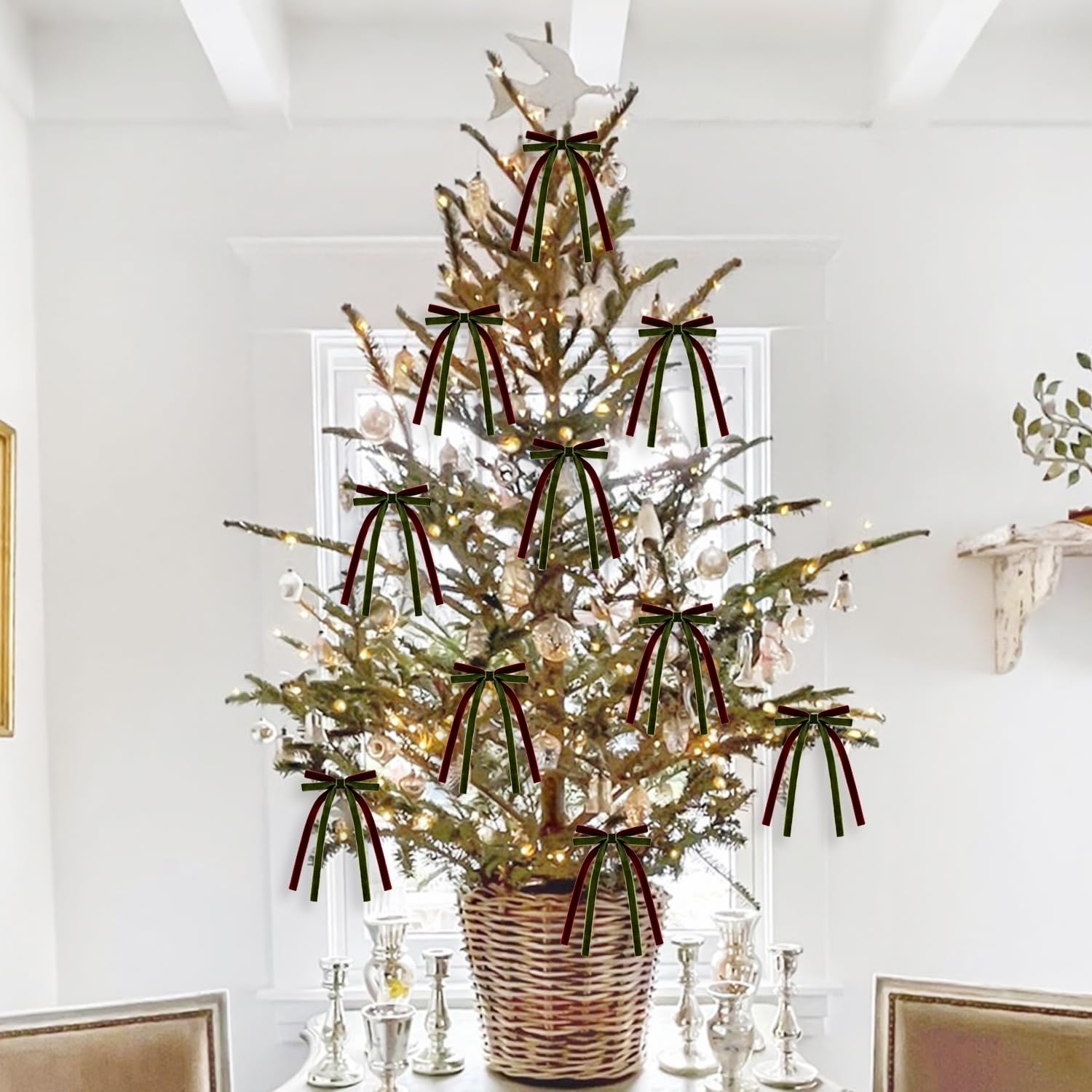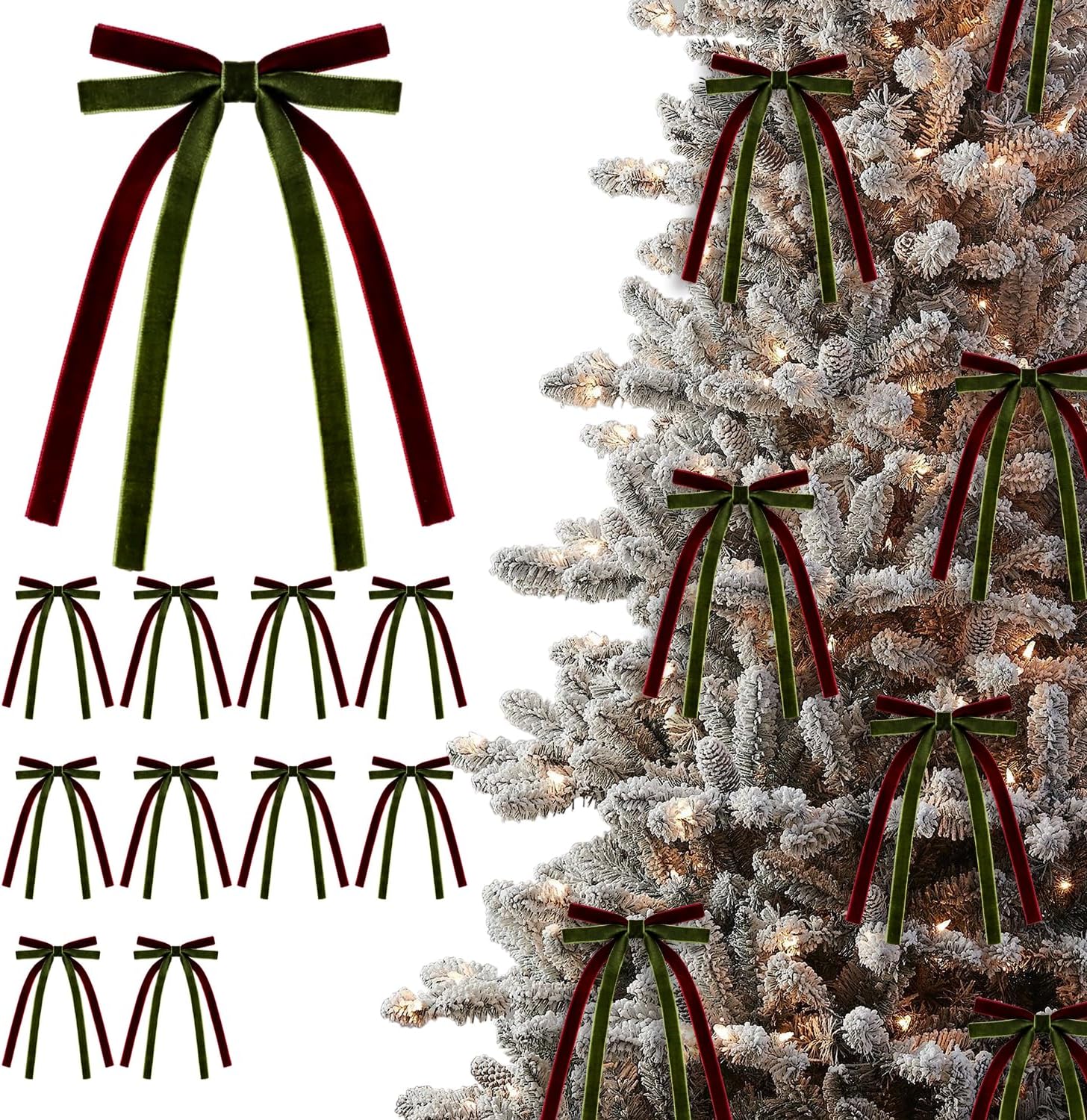 10Pcs Christmas Bows Decorations,5.9x4'' Two Tone Velvet Bow Christmas Wreath Bow for Christmas Tree Wreath Garland Wrapping Wedding Party Décor (Wine red Olive Green)