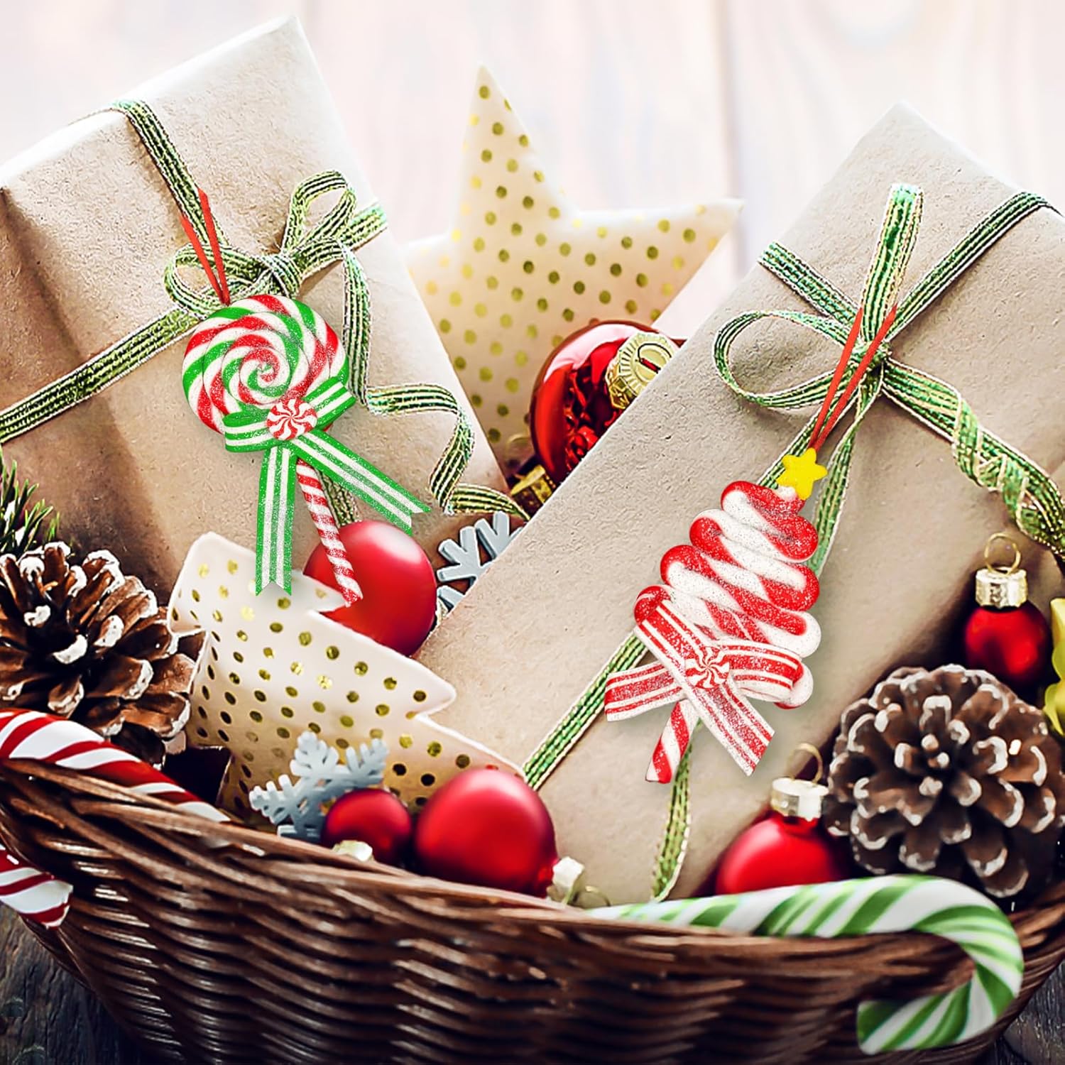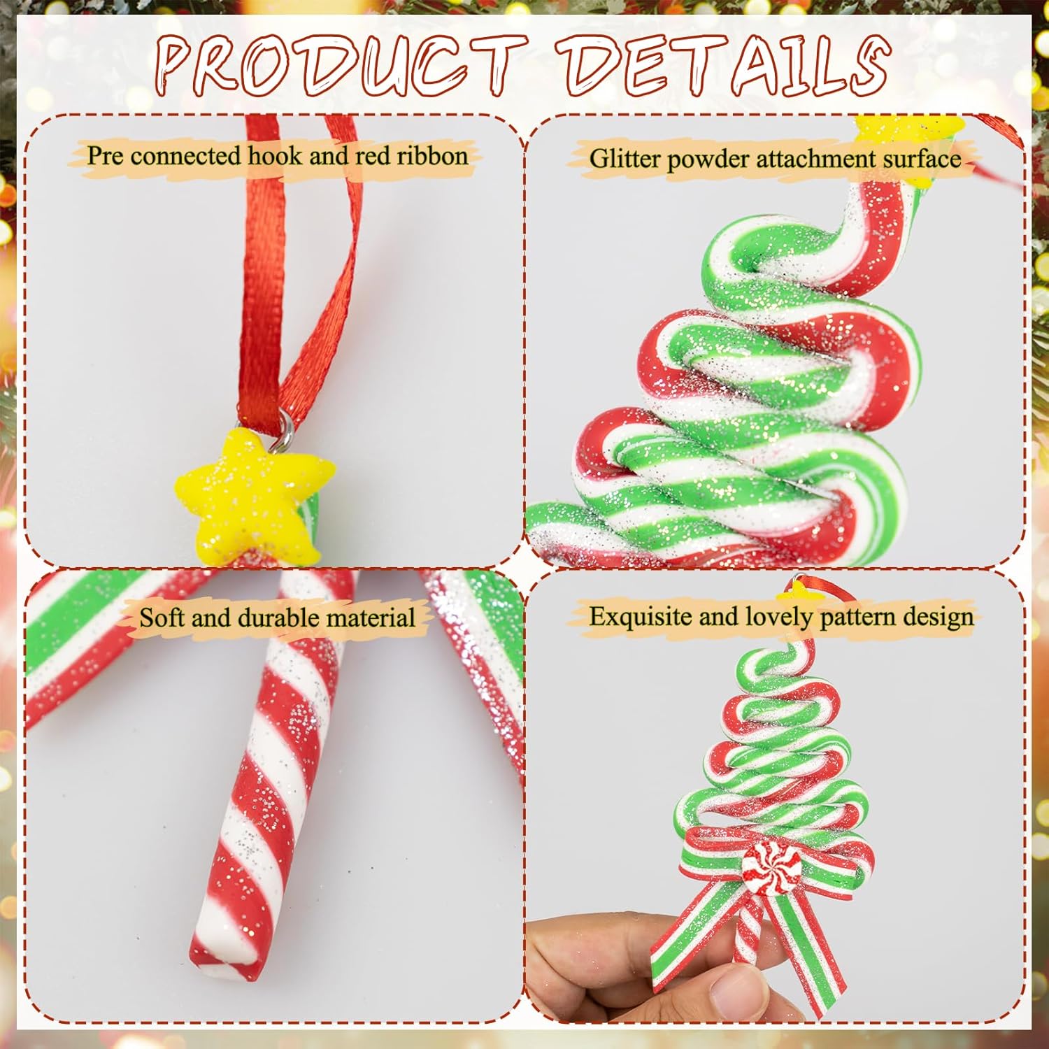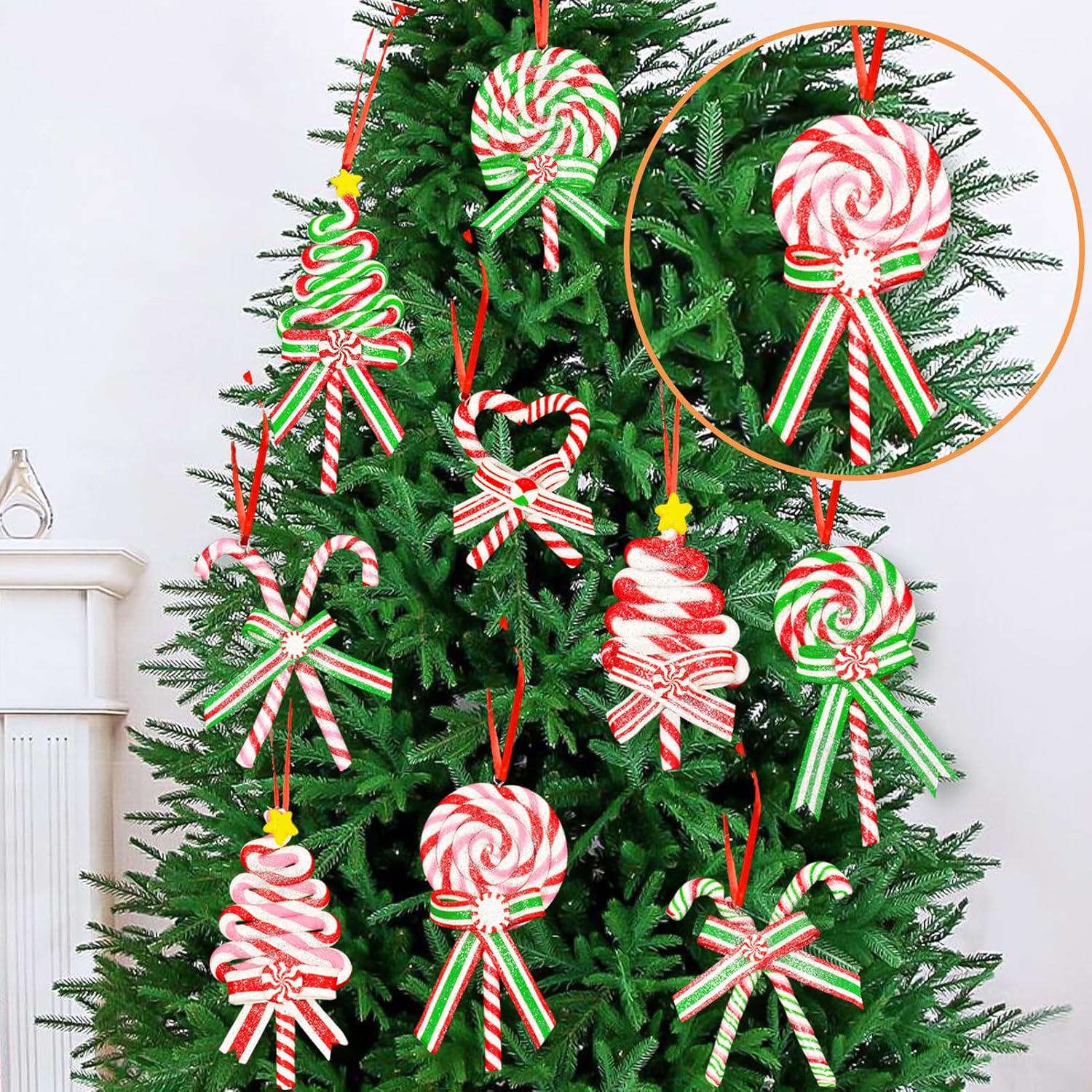 10Pcs Christmas Candy Cane Ornaments for Tree Decorations - Polymer Clay Glitter Lollipop Candy Cane for Holiday Party Home Decor