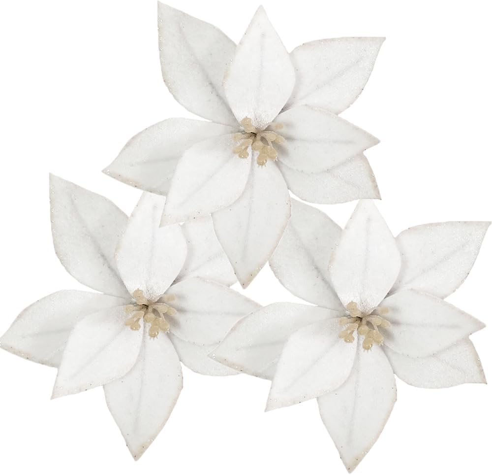10pieces Christmas Flower for Tree 7'' Christmas Poinsettia Flowers Artificial Christmas Party Flowers Ornament for Xmas Tree Wreath Garland Wedding Holiday Party Decoration (White)