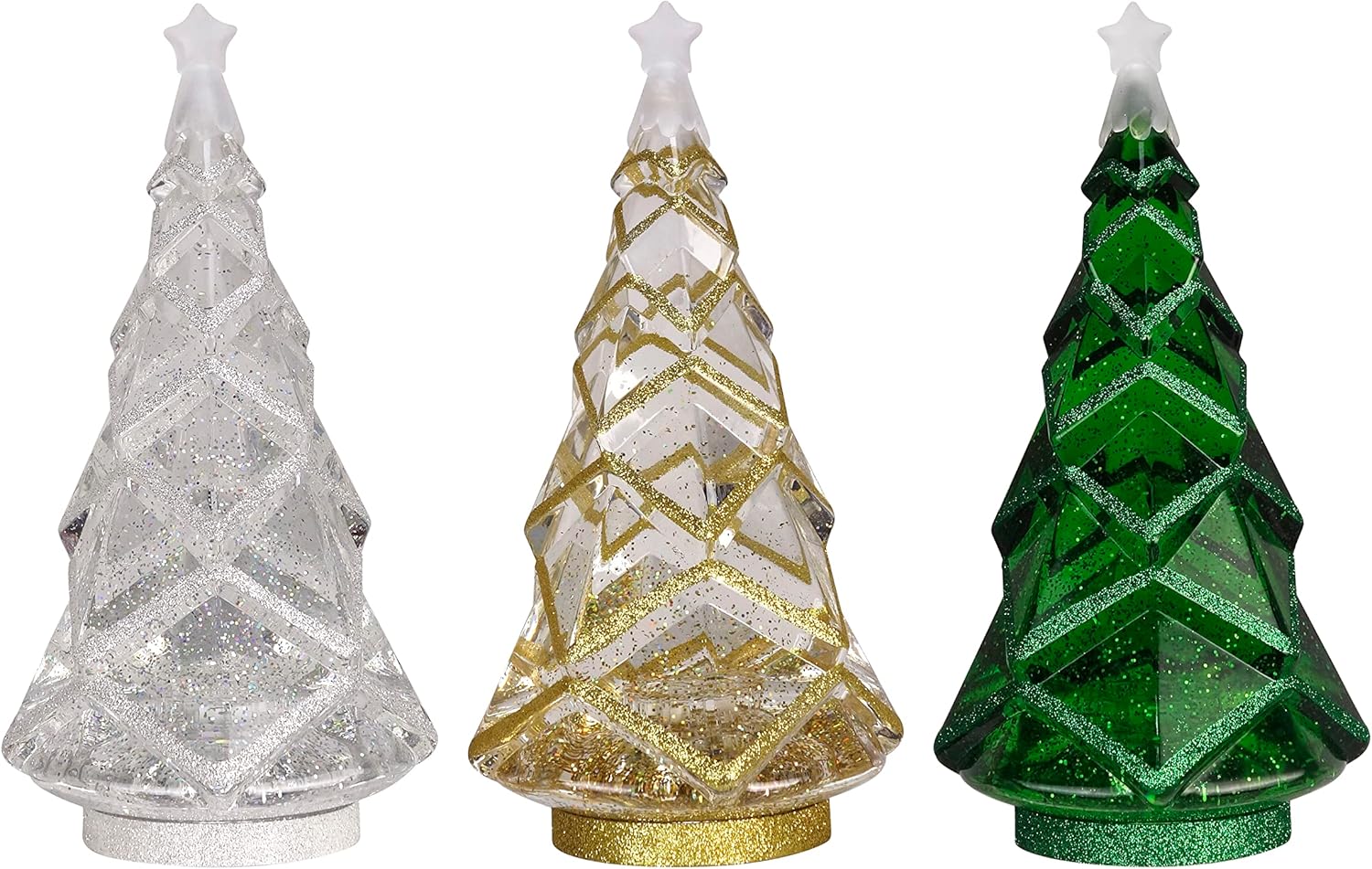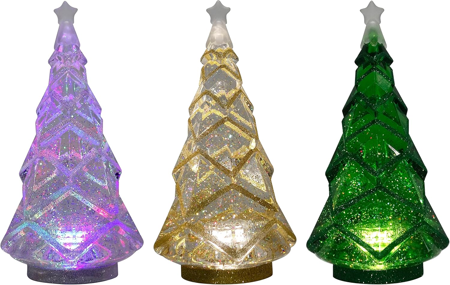 11.375" LED Blowing Glitter Light Up Christmas Tree - Green, Christmas Decor, Christmas Lights, 4-Hour Timer Function, Requires 3AA Batteries (not Included)