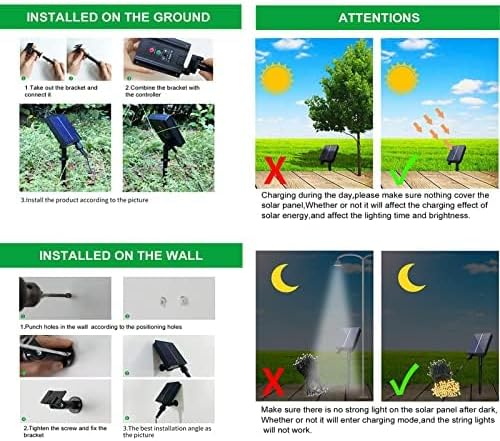 • 8 Lighting Modes with Remote: Combination, In Waves, Sequential, Slow Glow, Chasing/Flash, Slow fade, Twinkle/Flash, Steady on. Transfer the modes with remote or press the button on the solar panel