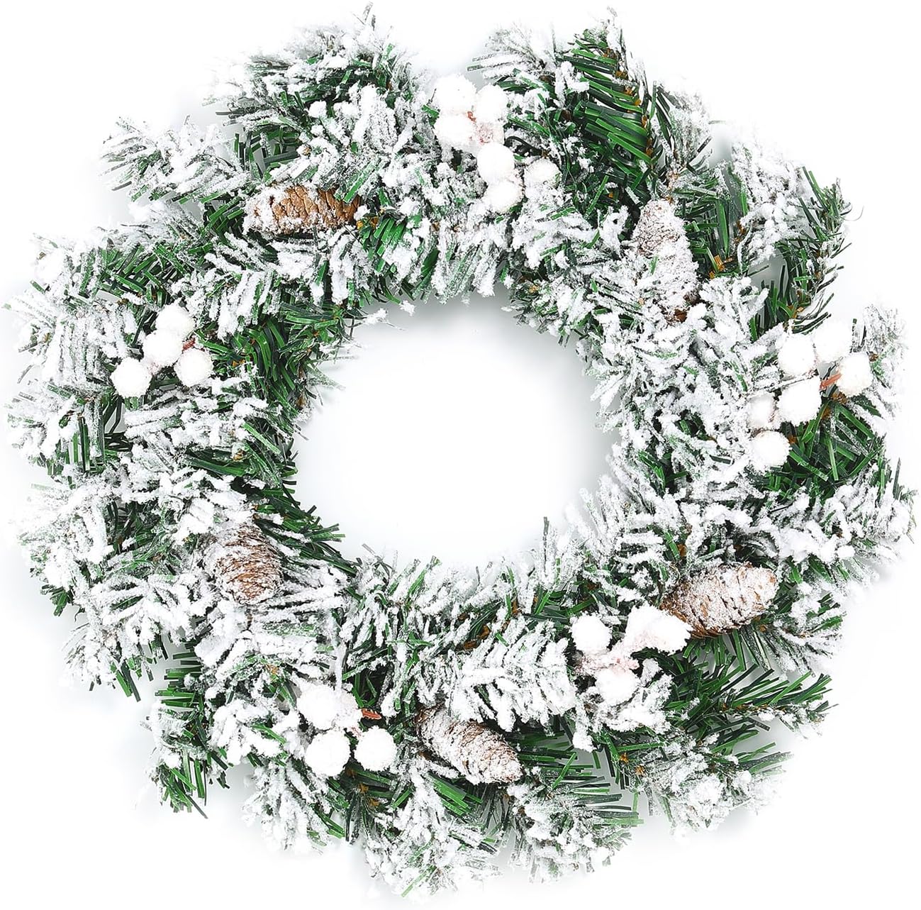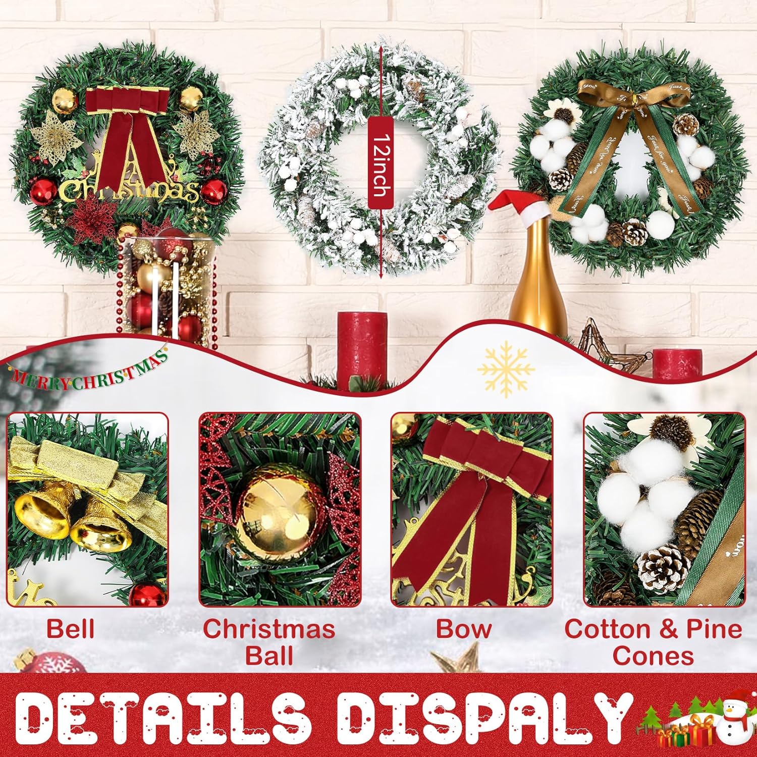 12 Inch Little Christmas Wreath with Pinecone Berries Jingling Bell Christmas Decorations Ball Front Door Wreath for Outdoor Indoor Party Wall Table Home Decor Brown Sign Flocking Pinecone Wreath