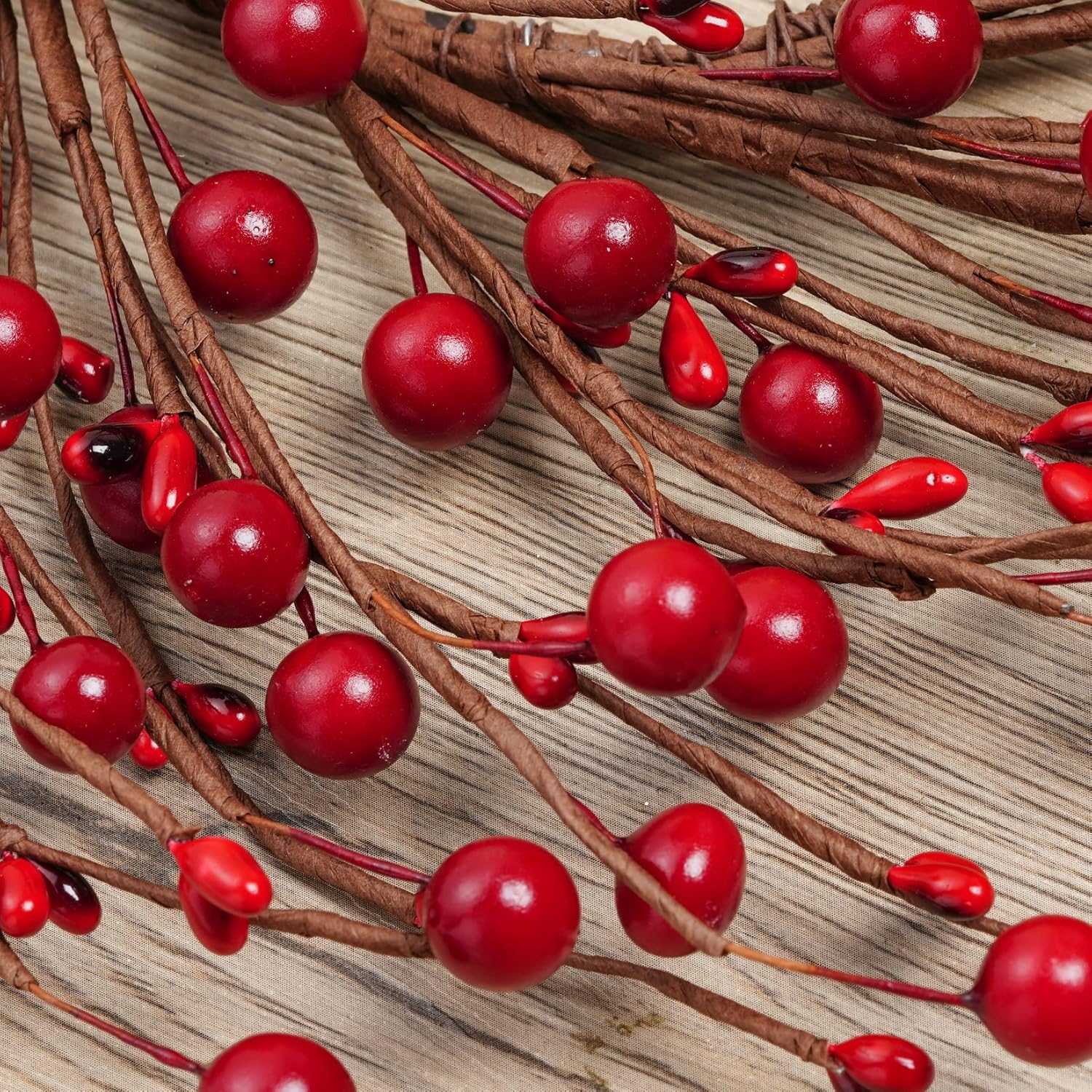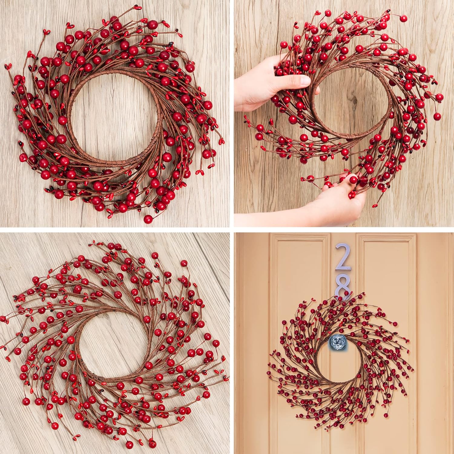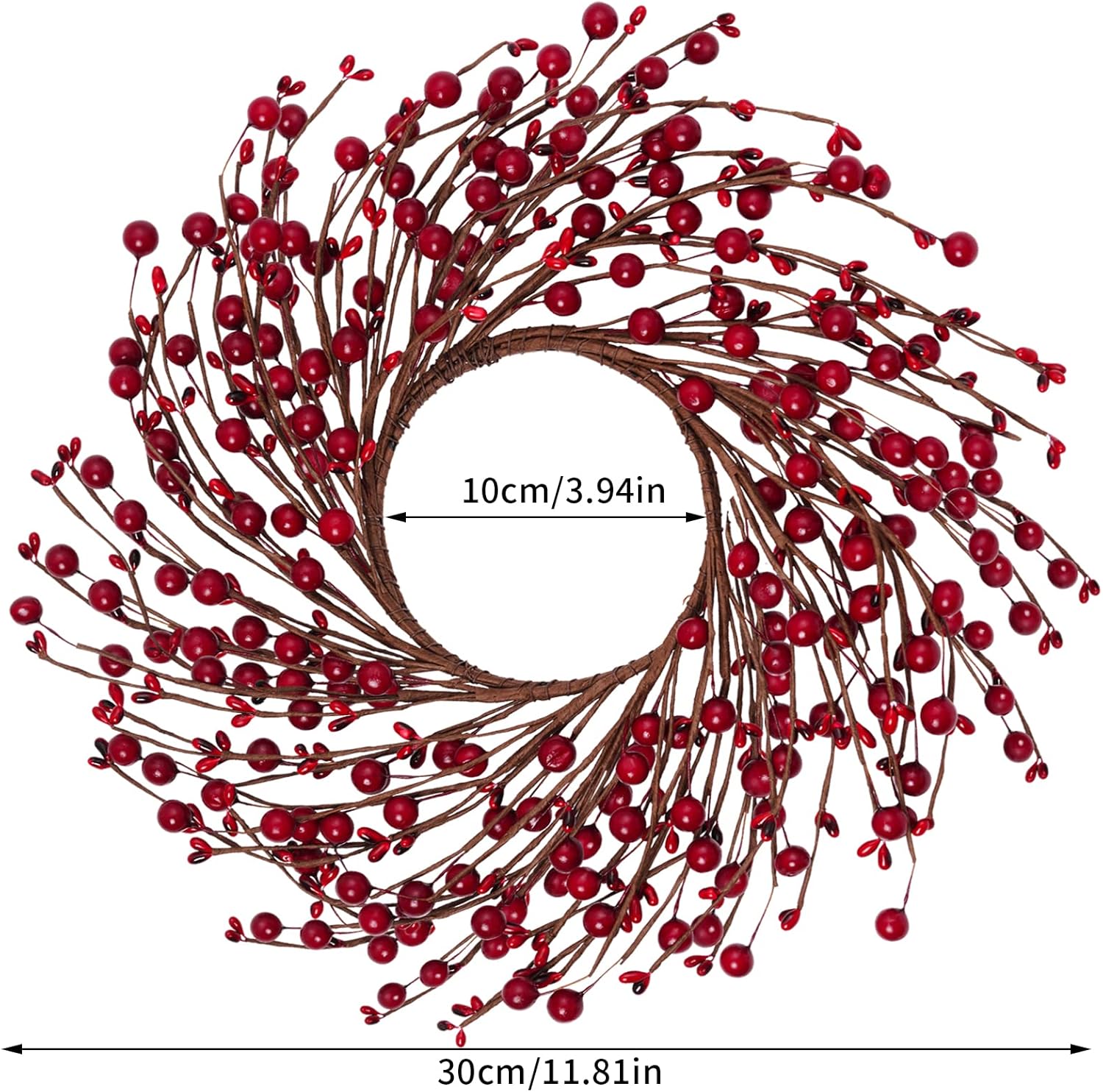 12 Inches Berry Wreath Pip Berries Wreath Winter Artificial Twig Wreath for Festival Celebration Home Farmhouse Front Door Wall Window Home Office Decor Housewarming (Red)