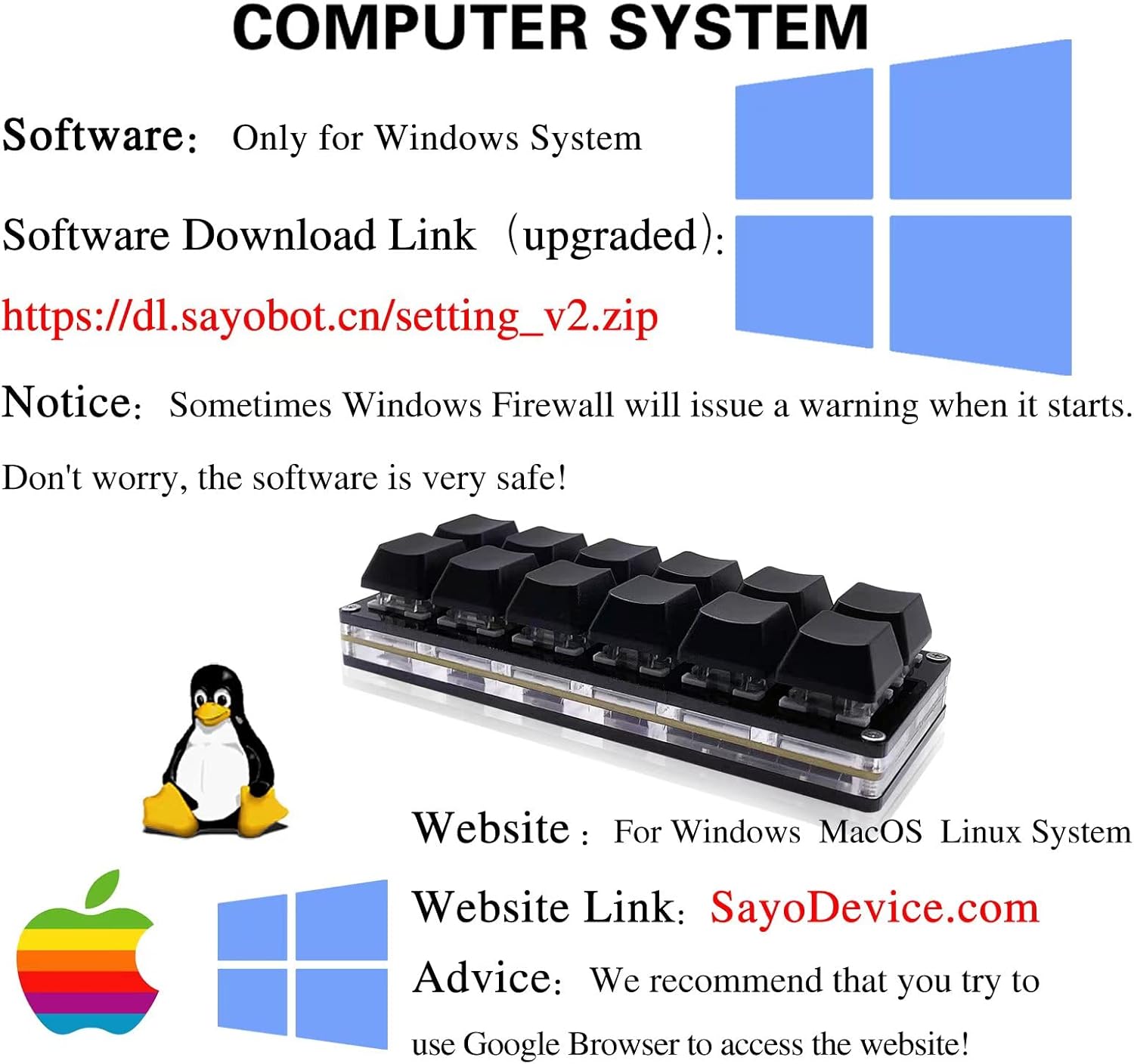 • 【Programming by Software】 The Software is only for bWindows Systemb.Sometimes Windows Firewall will issue a warning when it starts.Don't worry,the Software is very safe Software:https:dl.sayobot.cnsettingv2.zip