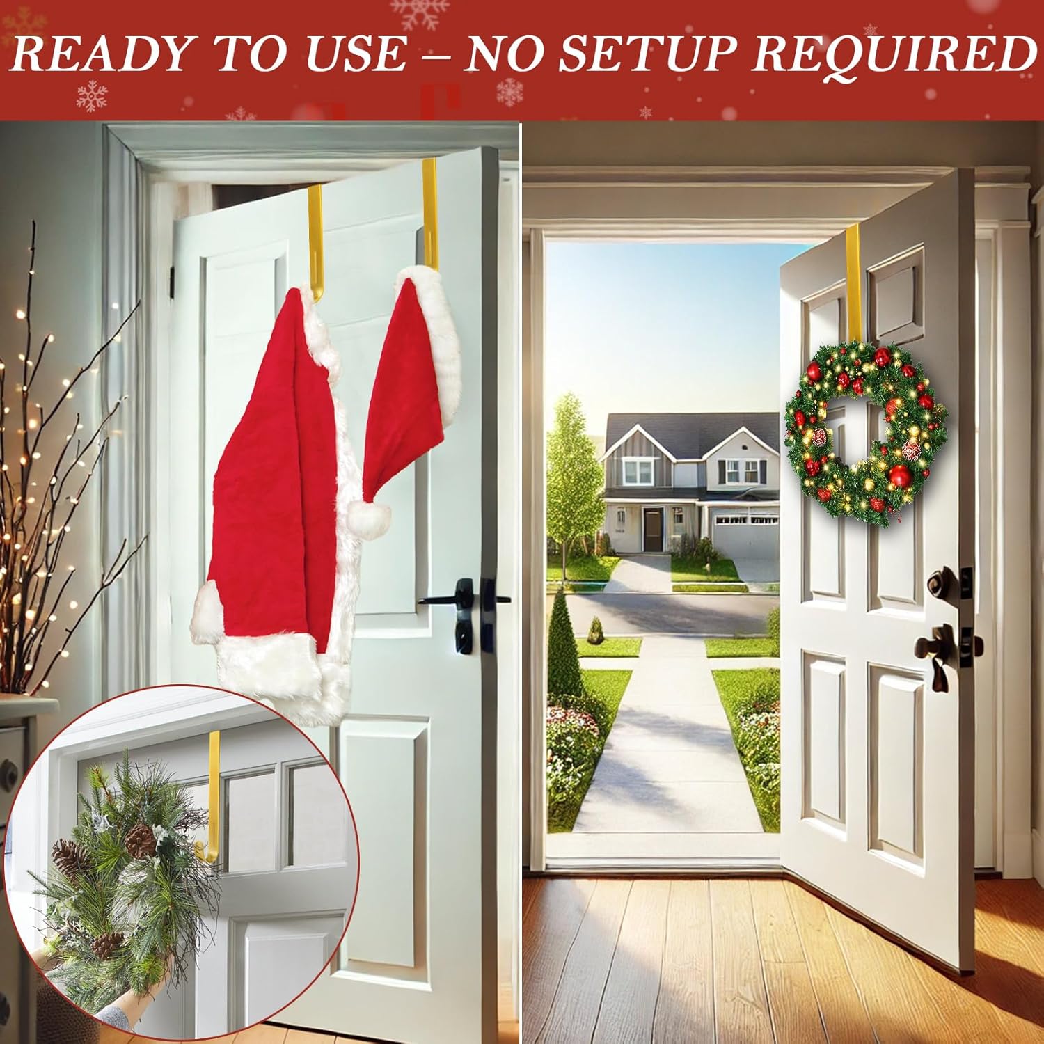 12" Metal Wreath Hanger for Front Door Non-Scratch, Damage- Wreath Hanger Heavy Duty, Over-the-Door Hooks for Hanging Welcome Sign, Wreath Holder for Easter, Halloween, Fall, Christmas Decorations