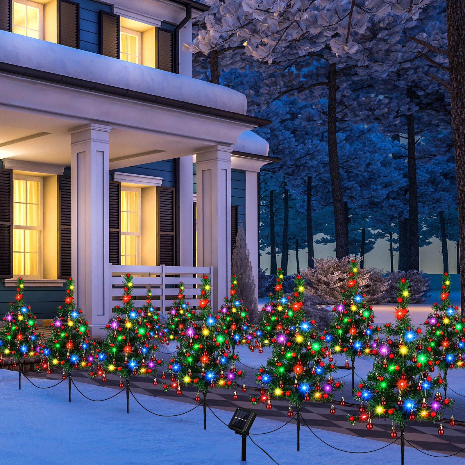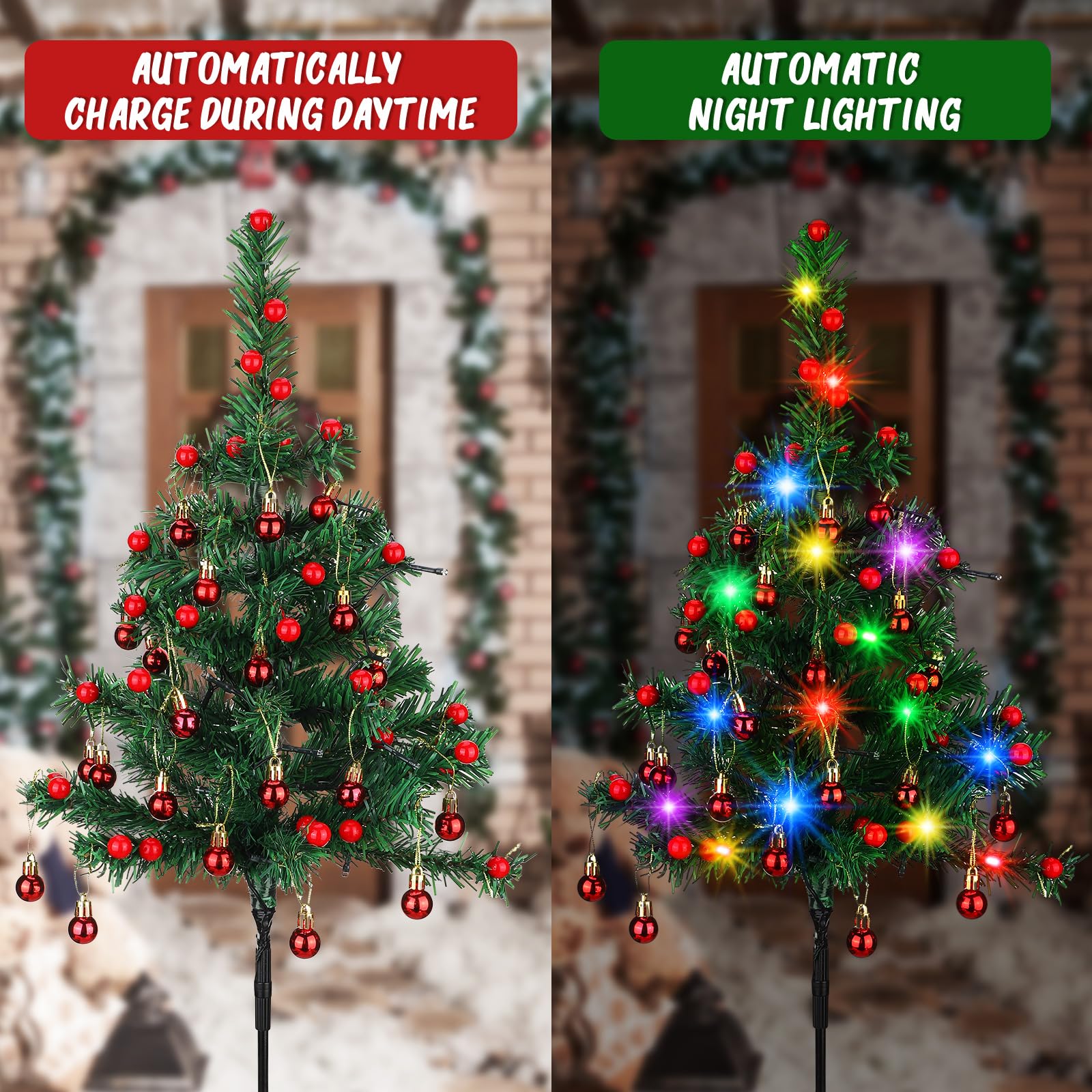 12 Pack 30 Inch Solar Christmas Tree Lights Prelit Christmas Tree Decorations Waterproof Outdoor Small Xmas Tree Stake Light for Holiday Path Garden Yard Decor (Berry)