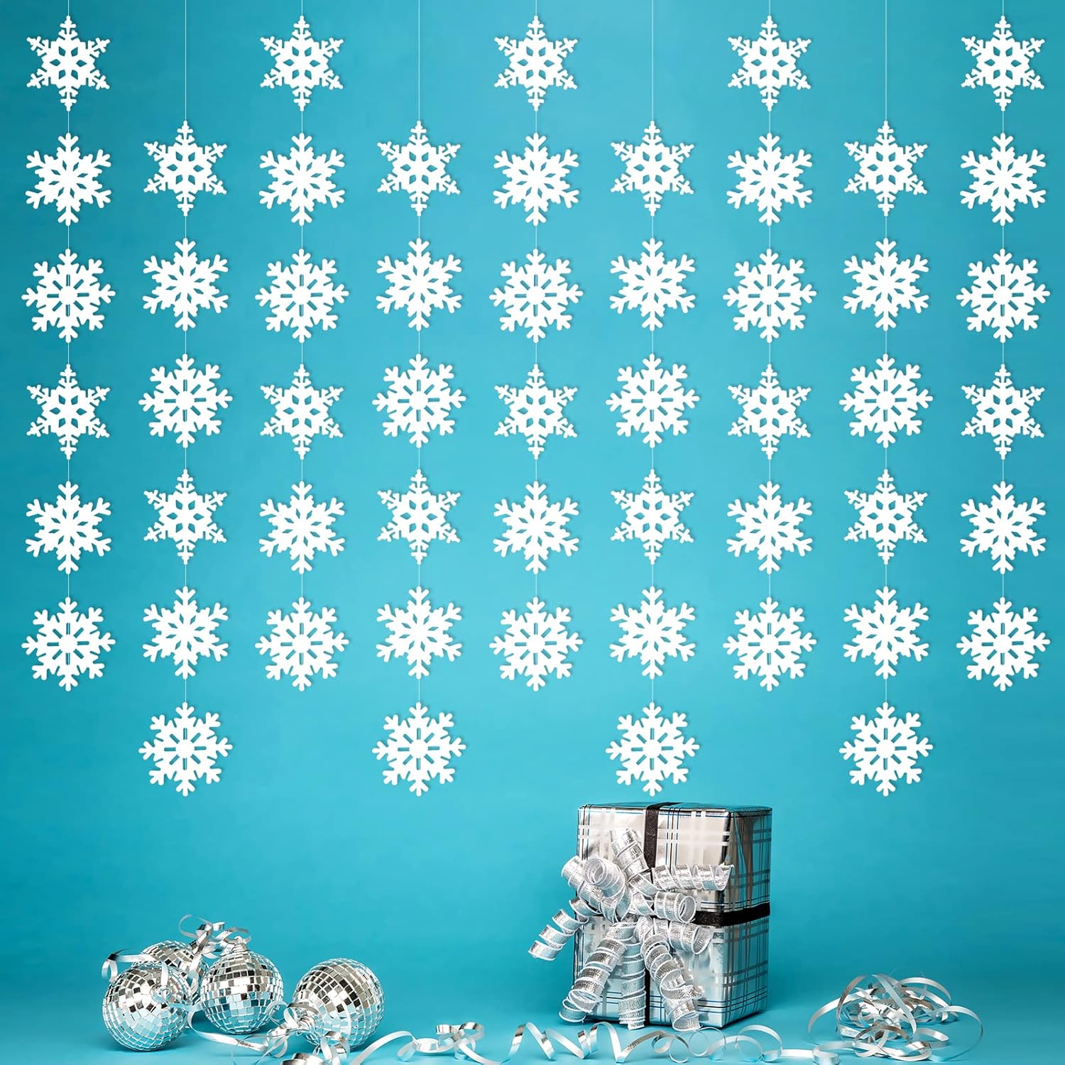 12 Pack Christmas Snowflake Hanging Garland, 72pcs White Snowflake, Frozen Winter Xmas Tree Year Party Door Window Streamer String Bunting Decorations