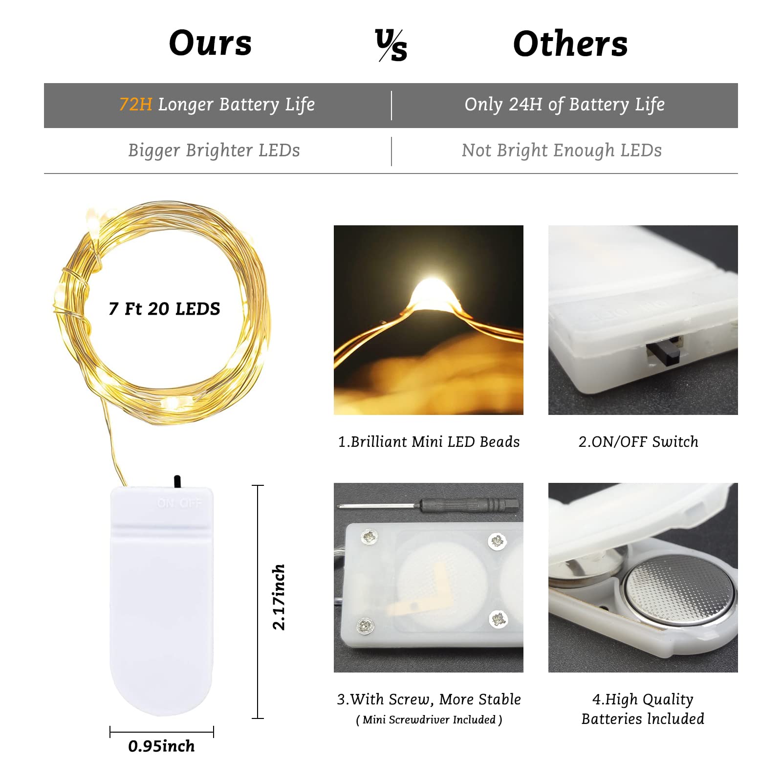 12 Pack Fairy Lights Battery Operated String Lights,7FT 20LED Waterproof Silver Wire Christmas Lights Outdoor,Firefly Mini Lights for Bedroom Party Birthday Wedding Indoor Decorations.