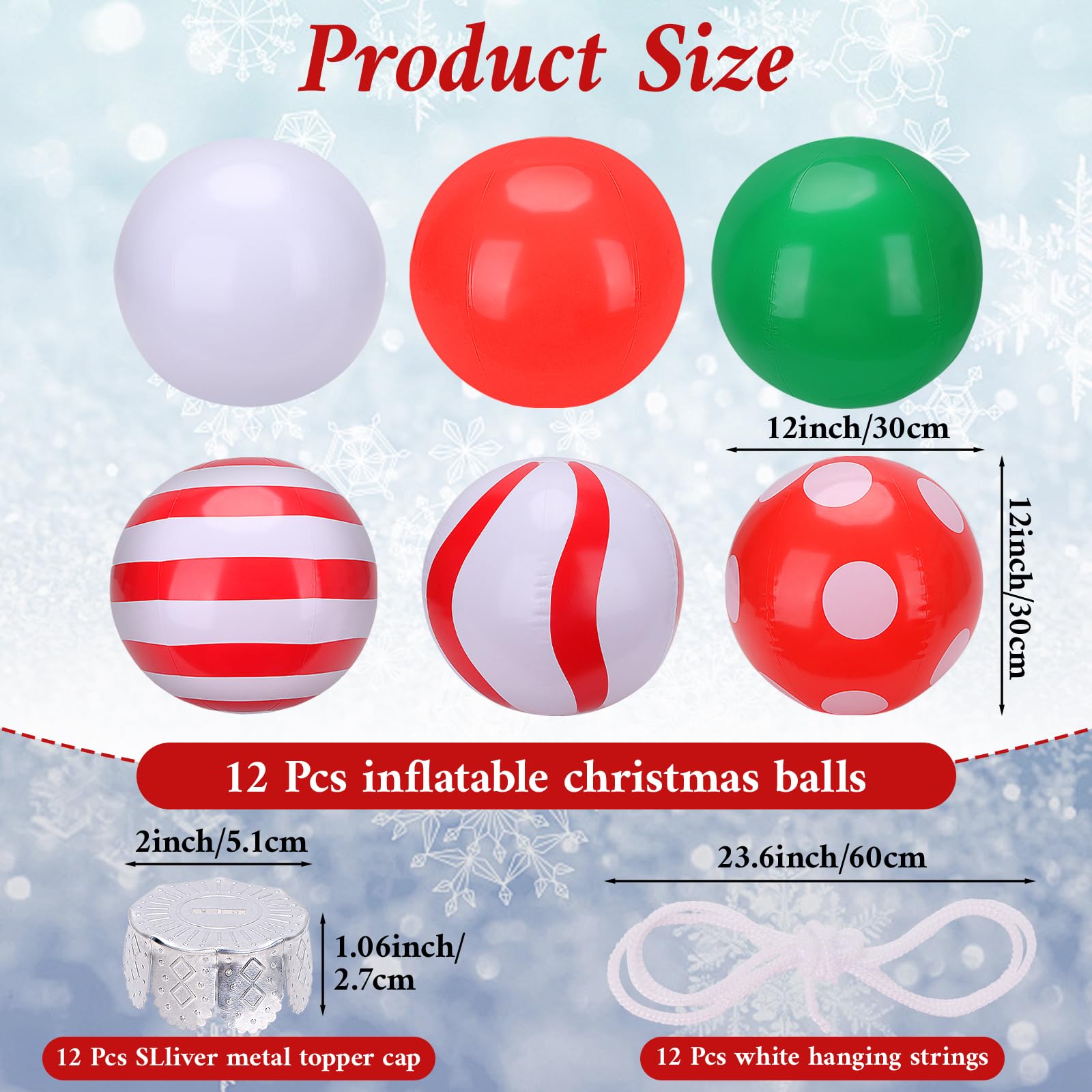 12 Pack Inflatable Christmas Ball Inflatable Christmas Ornaments 12 Inch PVC Inflatable Christmas Balls Hanging Blow up Ball for Christmas Tree Outdoor Yard Garden Porch Door Decorations