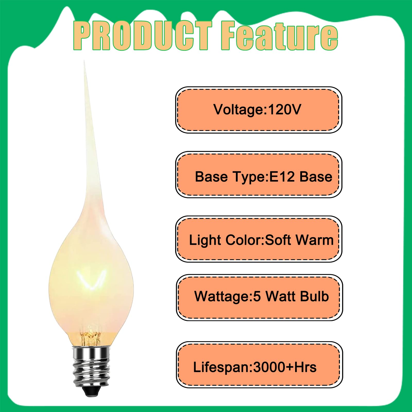 12 Pack Silicone Dipped E12 Candle Light Bulbs, 5W Candle Light Bulbs, Dimmable Chandelier Light Bulbs for Ceiling Fan, Pendants or Outdoor String Lights, E12 Candelabra Base Bulbs, Warm White 2700K