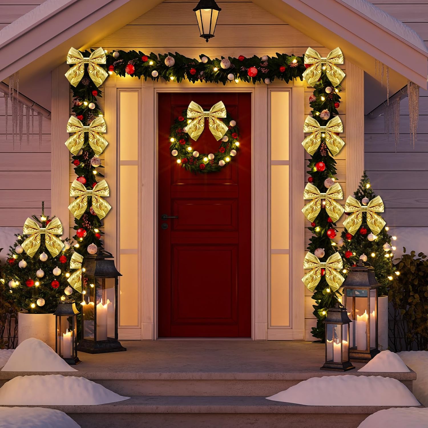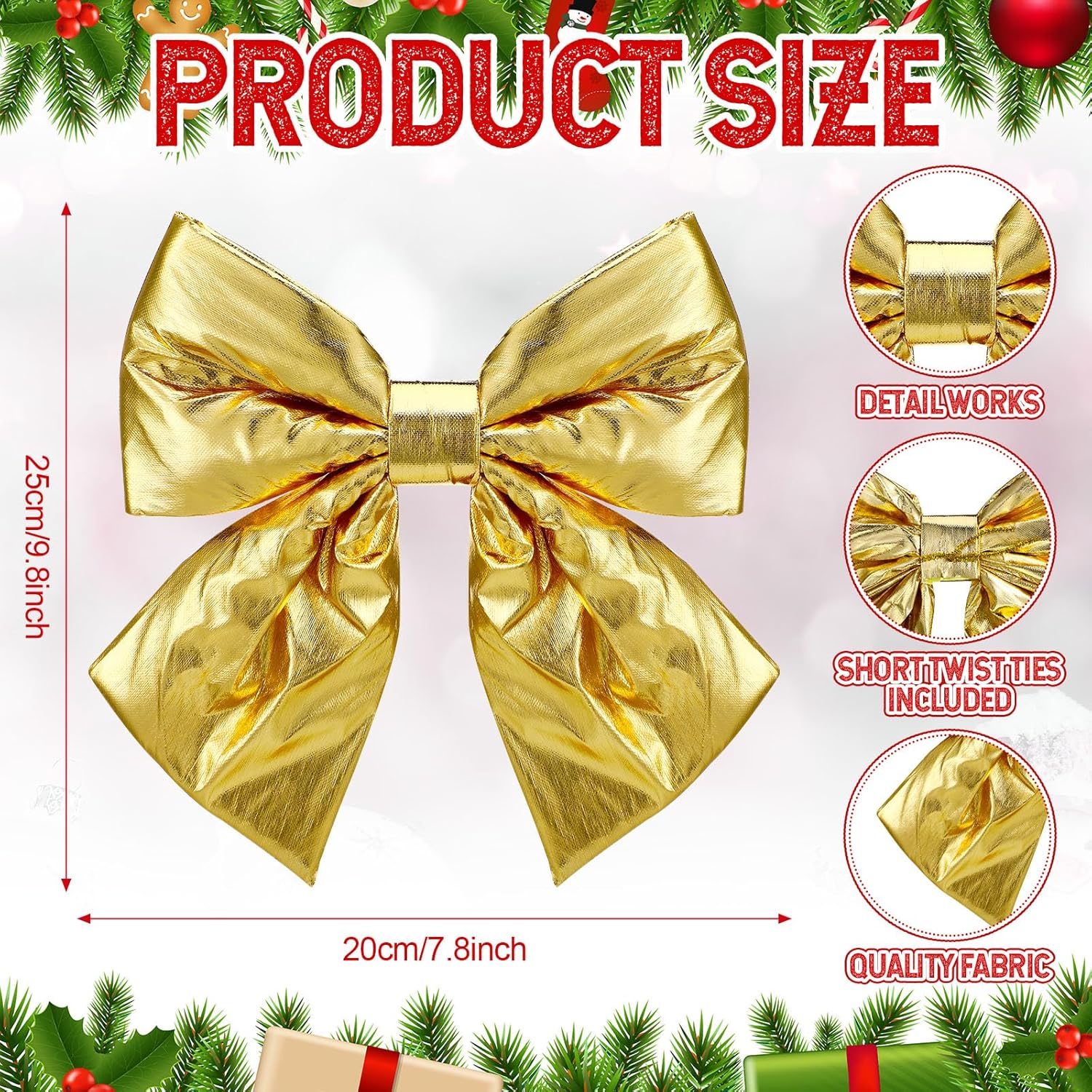12 Pcs 10 x 8 in Christmas Metallic Foil Fabric Bows Gold Christmas Tree Bow Shiny Large Xmas Decorative Bows for Christmas Tree Wreath Garland Chair Holiday Ornament Decoration