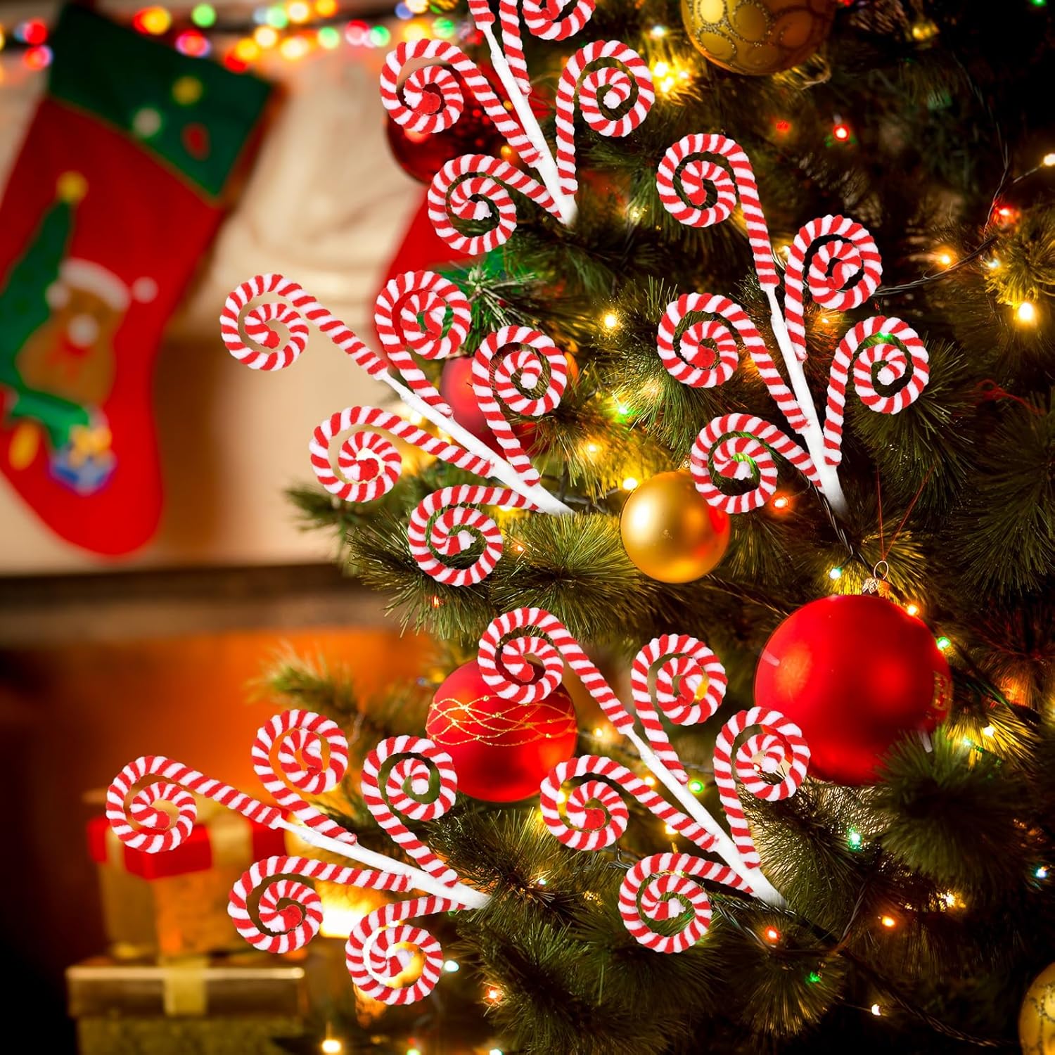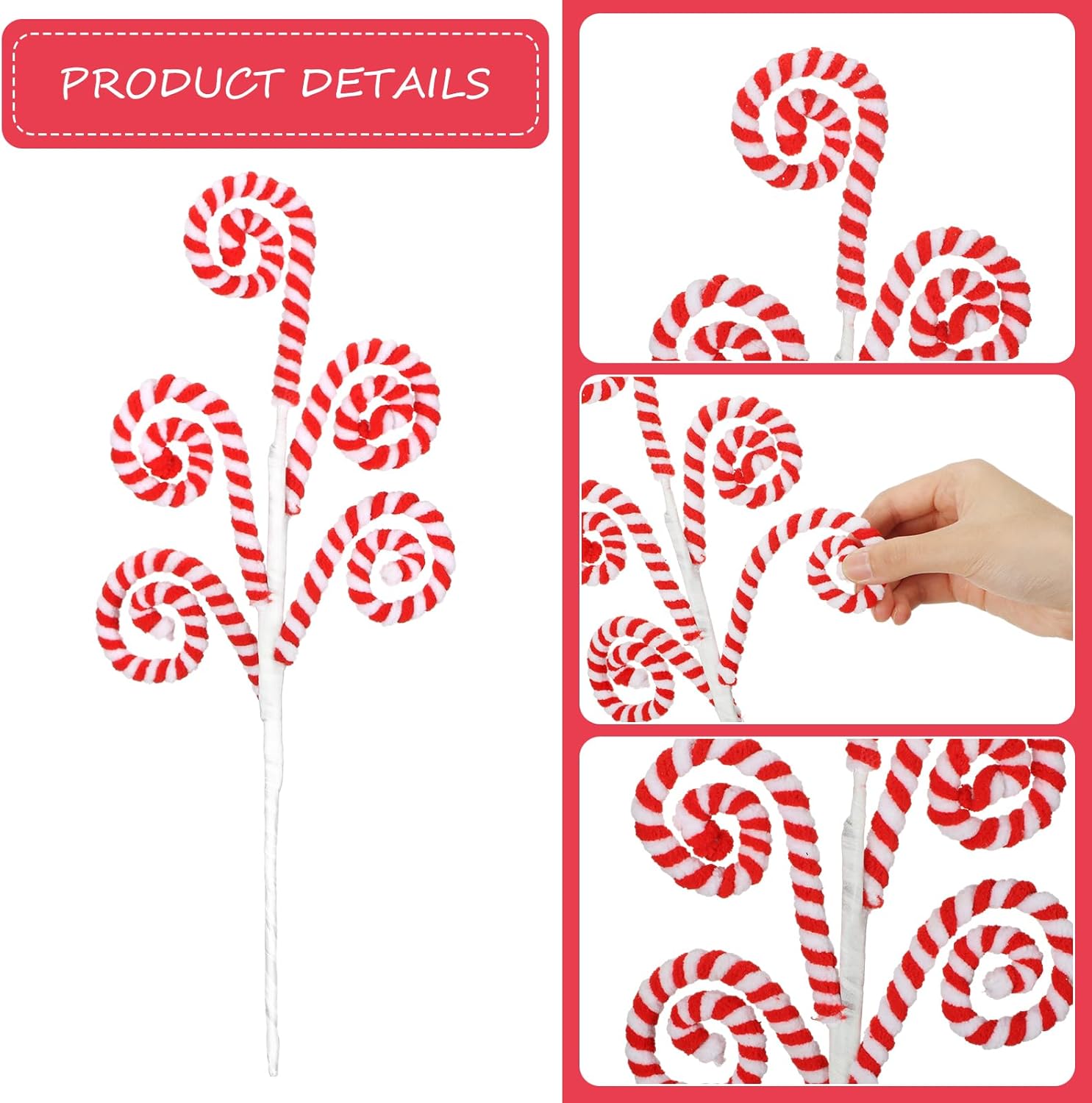 12 Pcs 16 Inch Red White Christmas Tree Picks Decoration Candy Cane Woolen Curly Pick Lollipop Large for Xmas Tree Topper Decor Home Vase Filler Craft Wreath Holiday Party Ornament Garland
