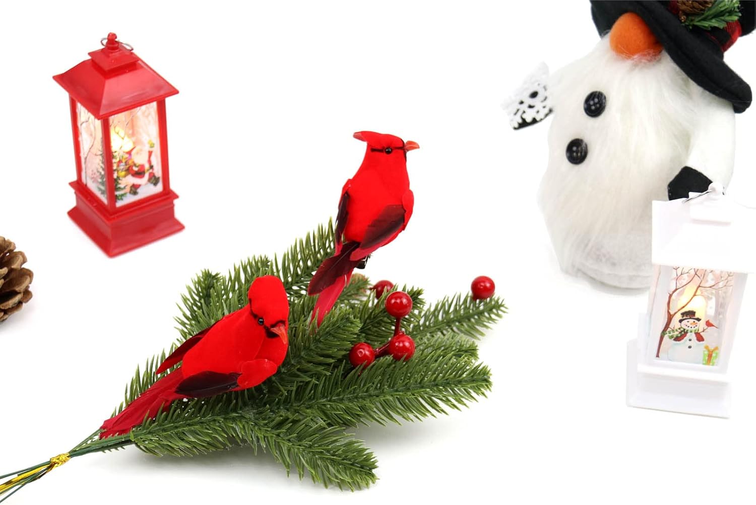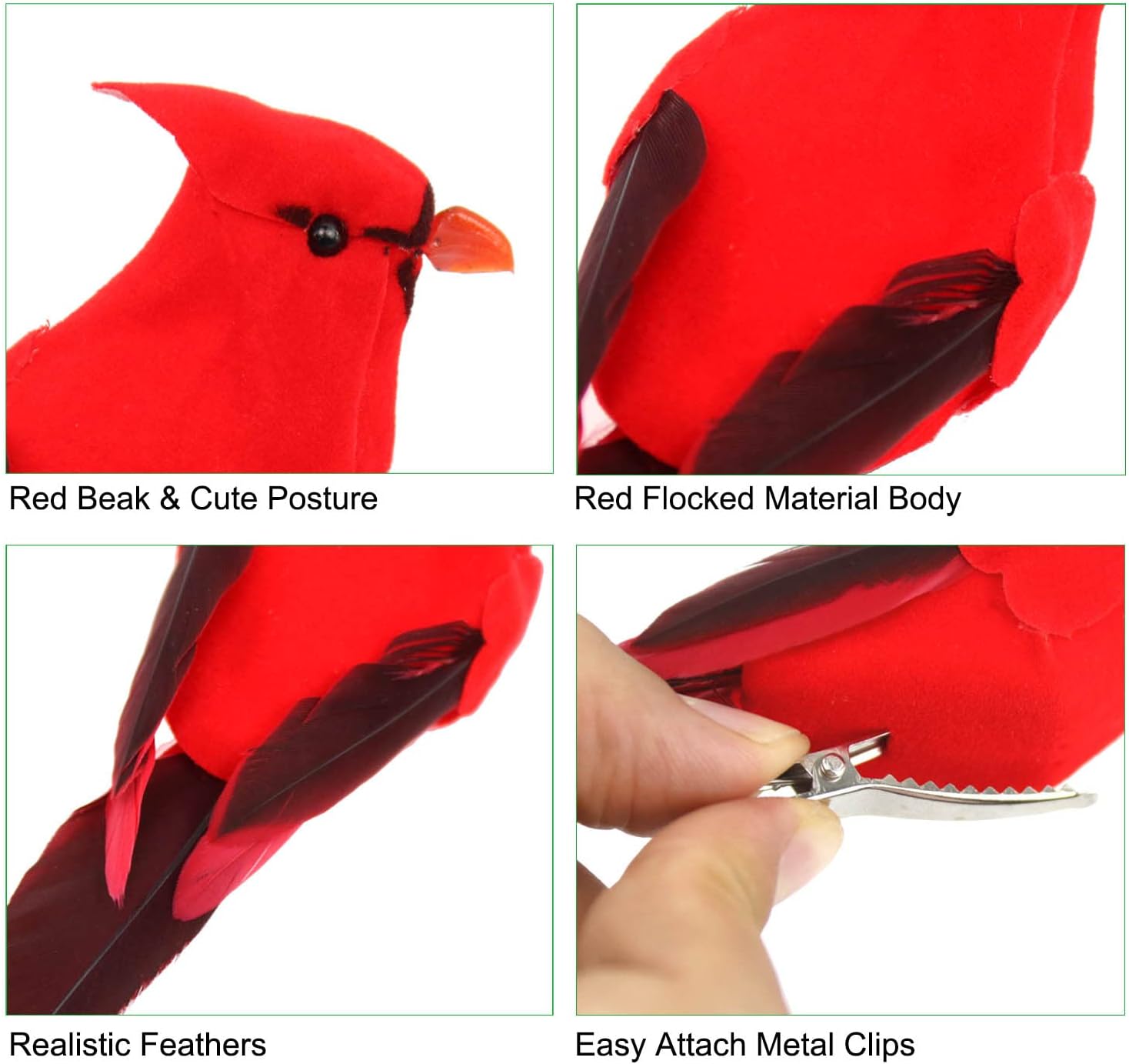 12 PCS Cardinals Clip On Christmas Tree Ornaments, Realistic Artificial Red Cardinals Birds Ornaments for Christmas Tree Wreath Centerpiece Decorations Crafts, 5" Long