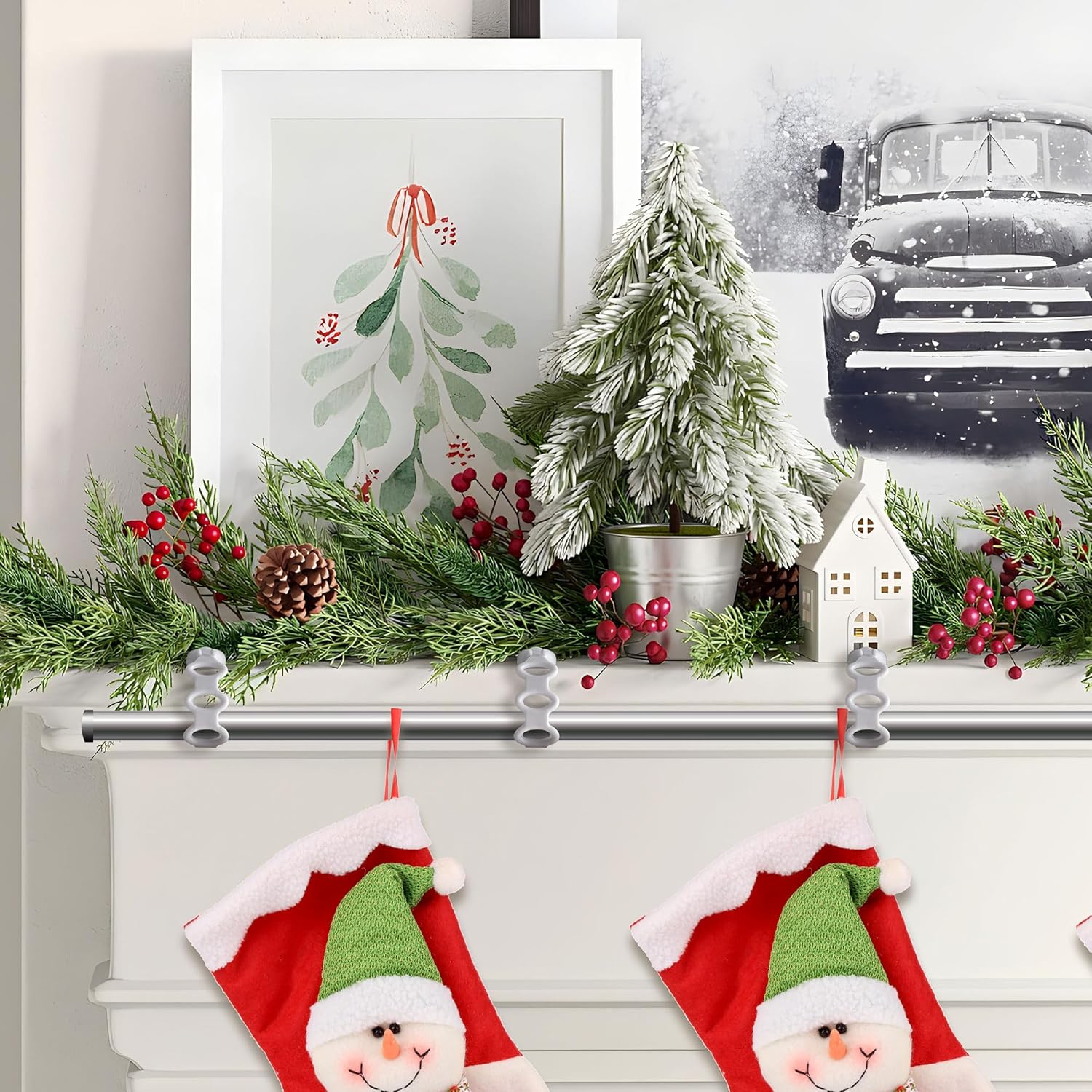 12 Pcs Christmas Garland Ties Wreath Holder- 8.5" Adhesive Silicone Christmas Garland Hangers- Stretchable Adhesive Straps Stocking Holder for Mantle Stairways Garland Decoration