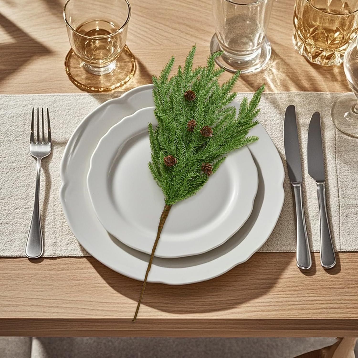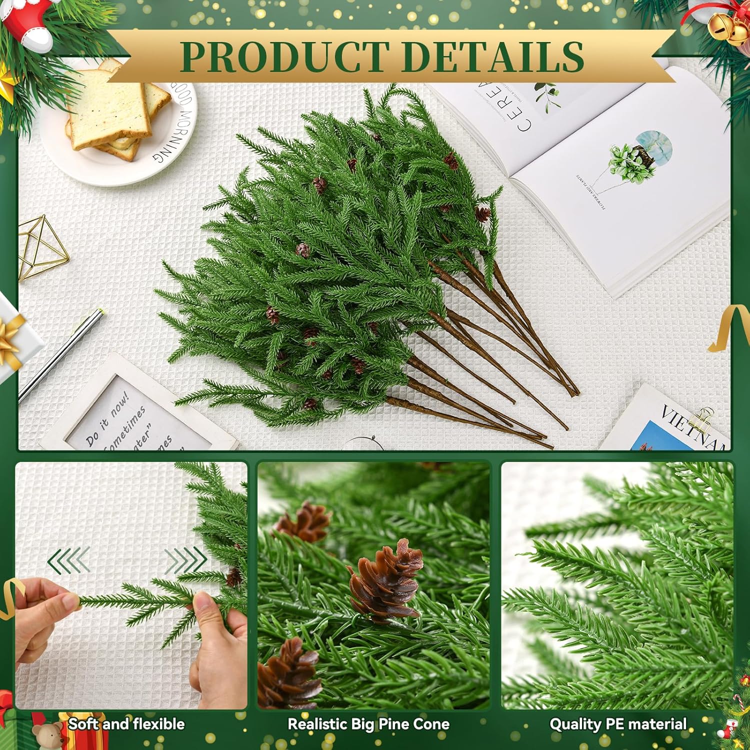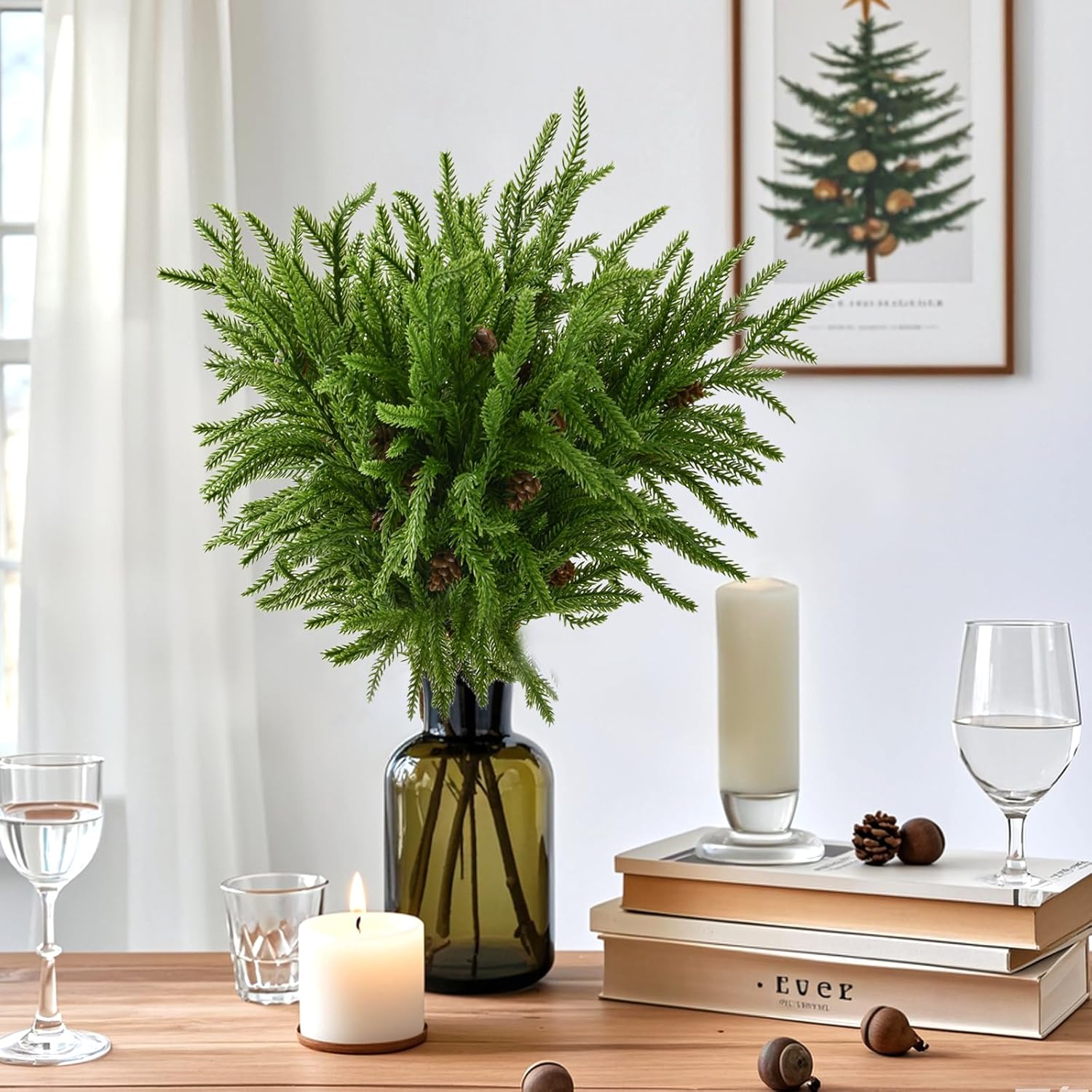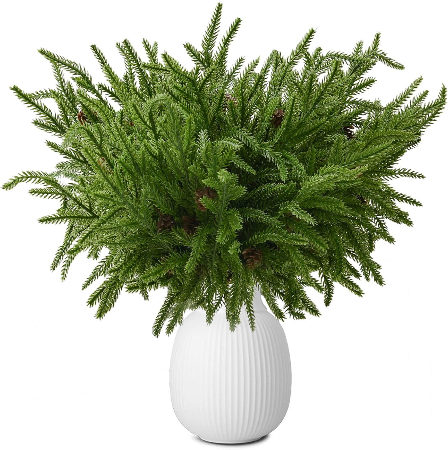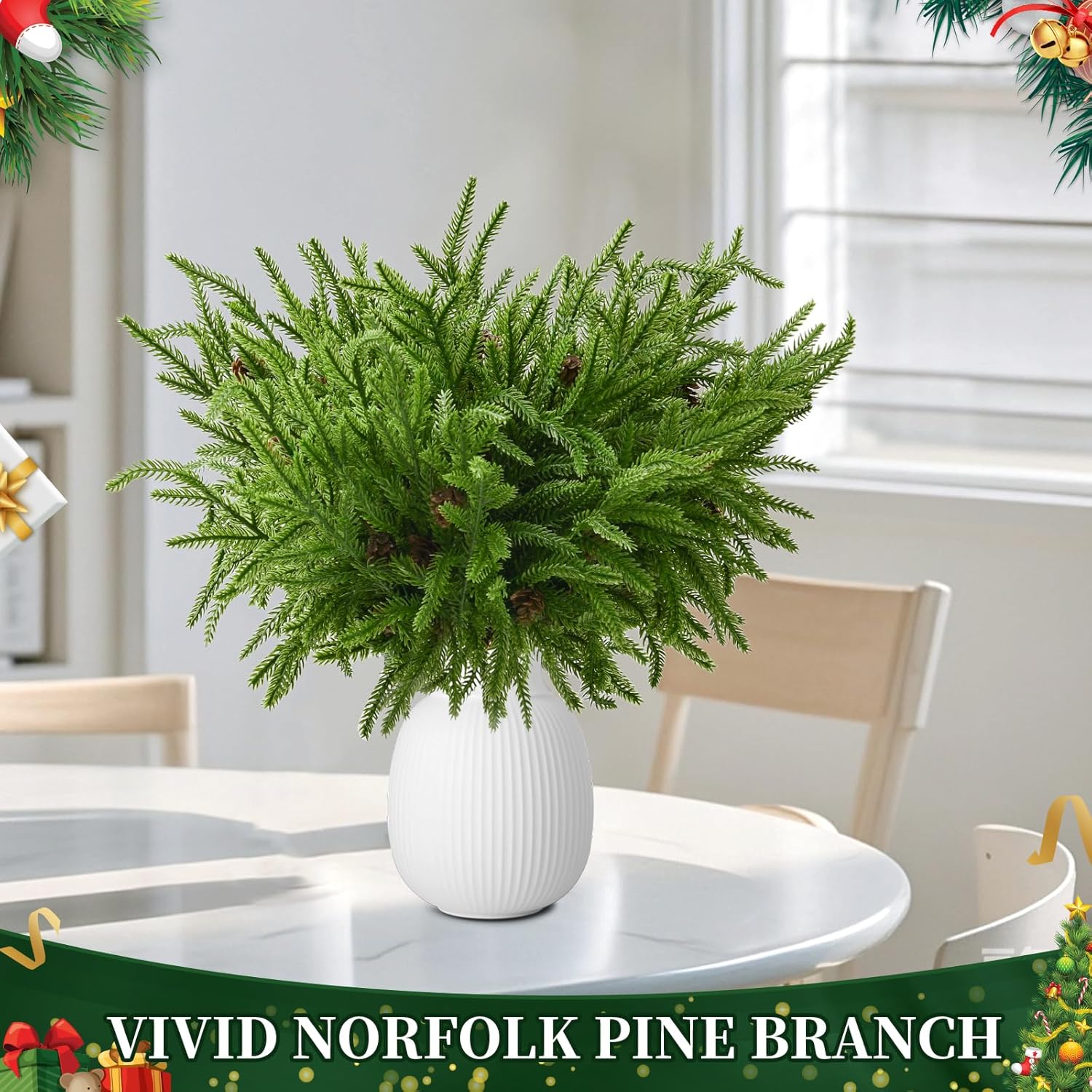 12 Pcs Christmas Norfolk Pine Branches, Artificial Christmas Pine Branches Norfolk Pine Stems, DIY Crafts Faux Christmas Greenery Stems, Real Touch, for Xmas Indoor Outdoor Home Decor.