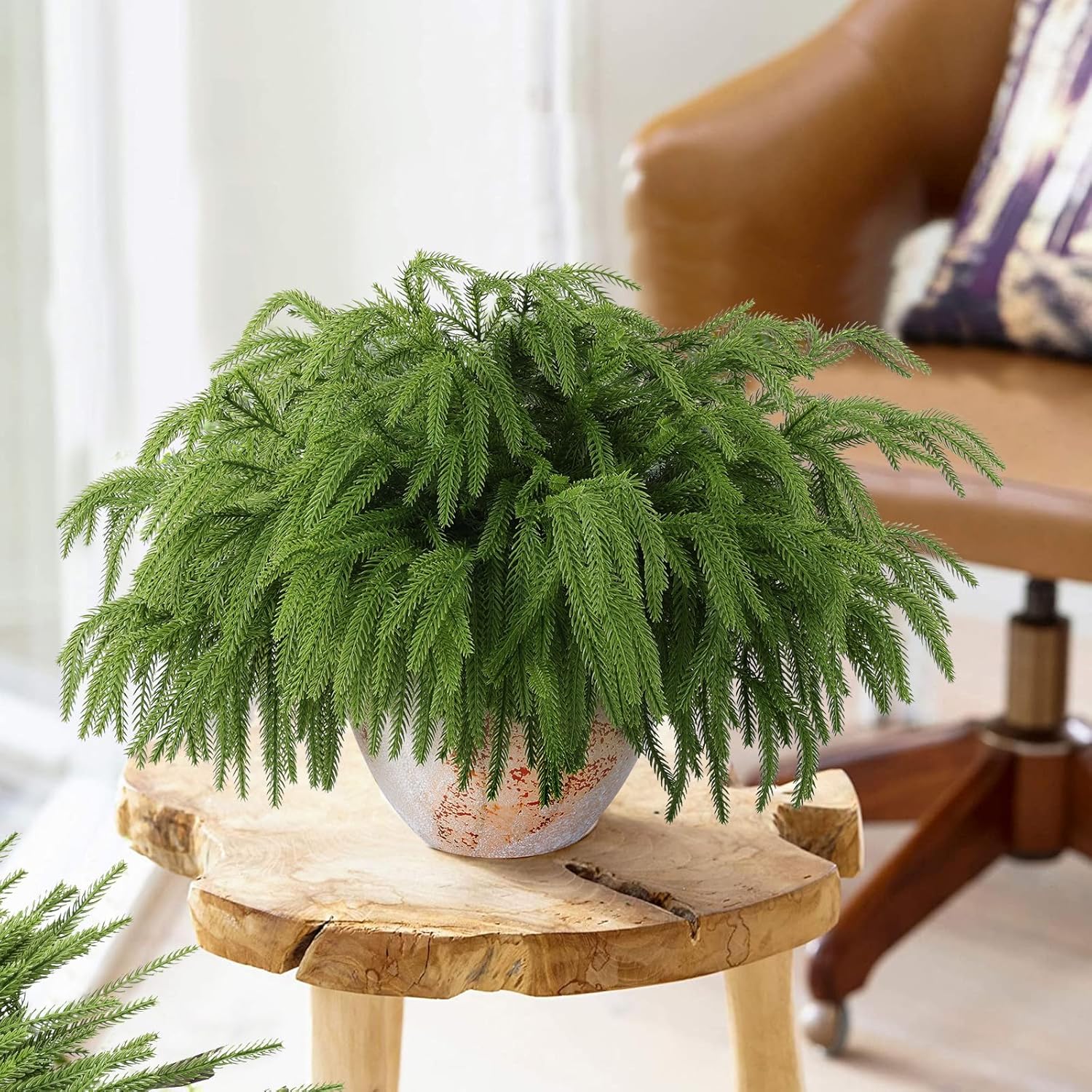 12 Pcs Christmas Norfolk Pine Branches, Norfolk Pine Artificial Christmas Stems DIY Crafts Faux Christmas Greenary Norfolk Pine Branches for Xmas Wreath Garland Home Decor (12)
