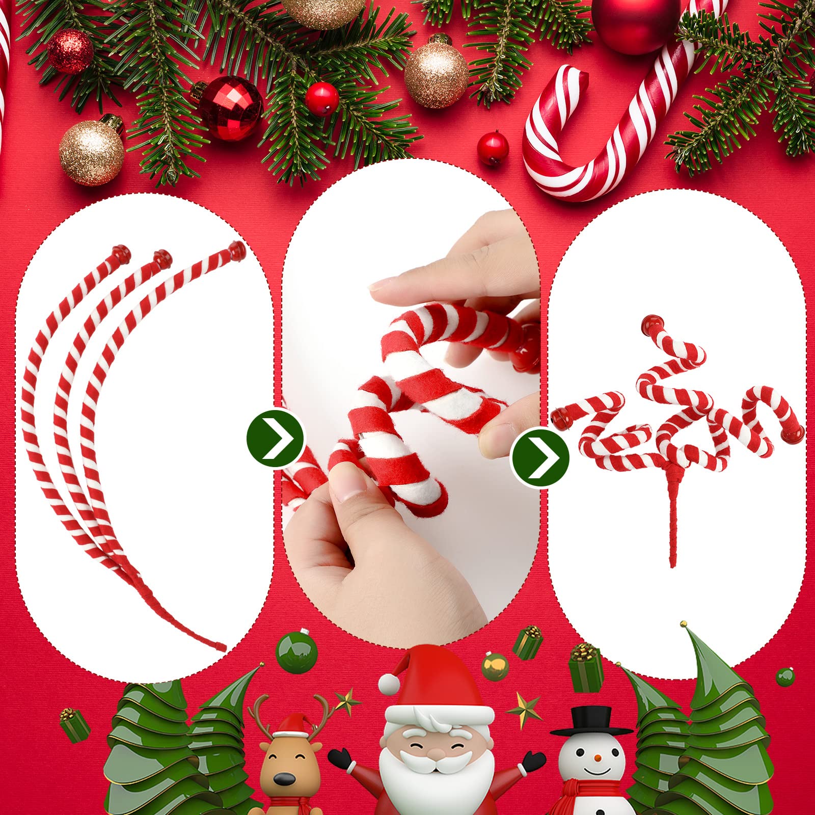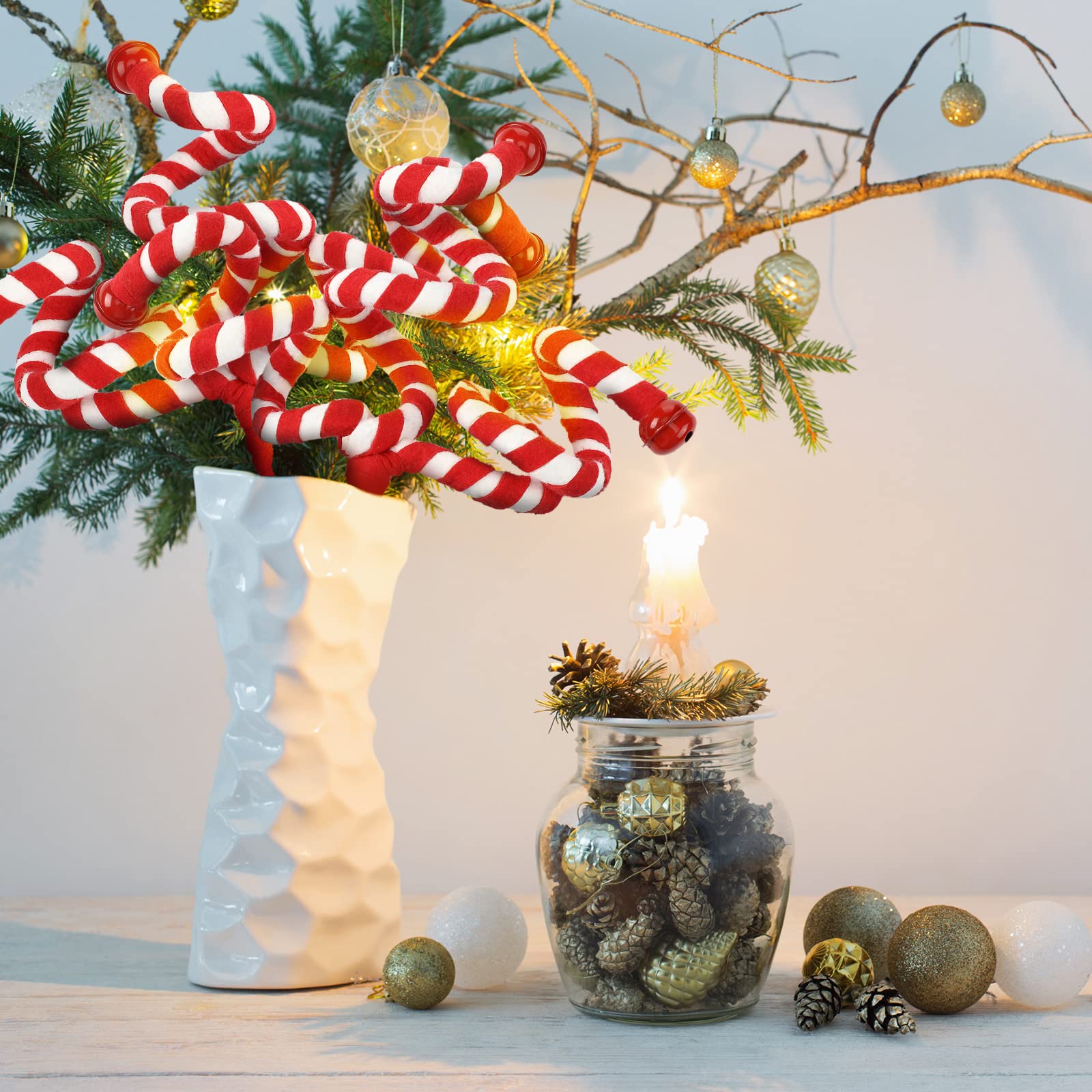 12 Pcs Christmas Tree Decoration Candy Cane Woolen Bells Curly Pick Christmas Ornaments Candy Shape Christmas Tree Picks Candy Christmas Tree Topper for Garland Party Decor (Red, White)