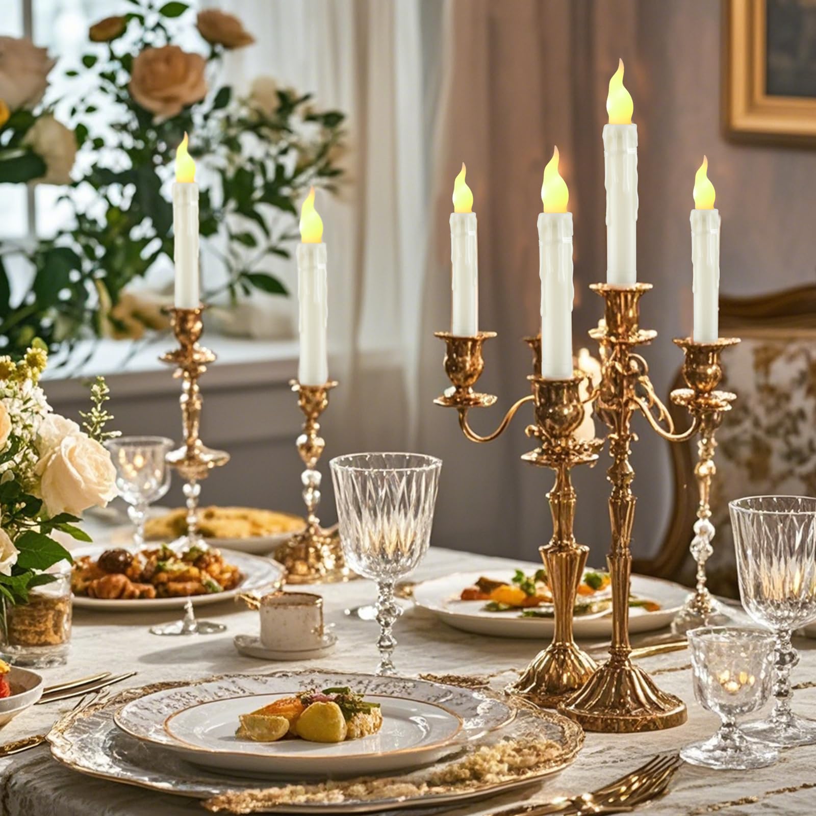 • 【Excellent Design】 These taper candles feature a warm yellow flickering flame and dripping wax design, a realistic warm yellow flame flickers softly. The shimmering warm yellow light of these candles creates a magical ambiance, perfect for adding a touch of glamour to your Christmas, home decor, party, wedding, or any special occasion.