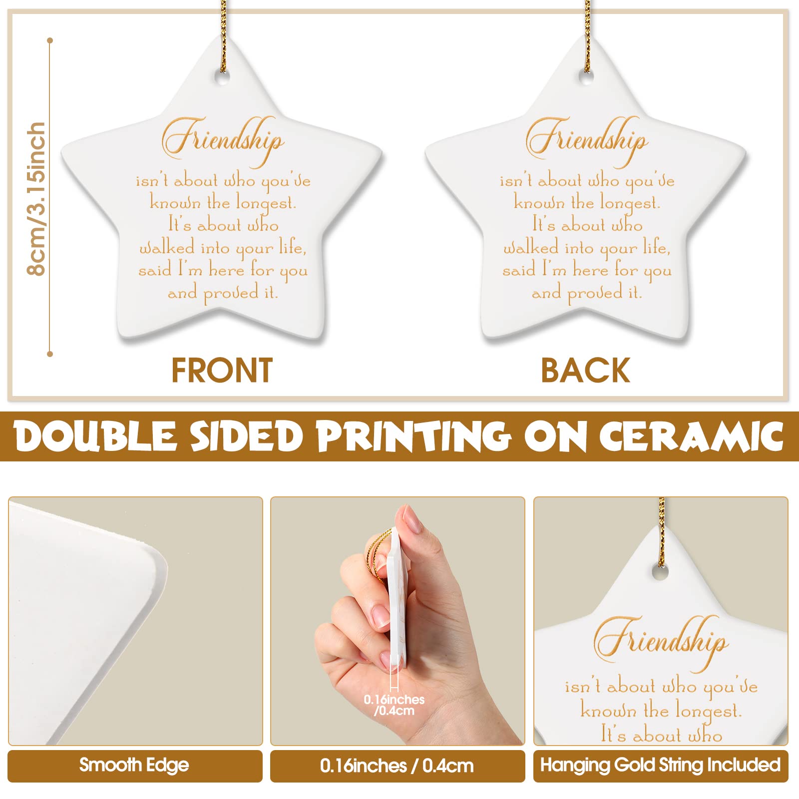 Best Friend s for Women: with black velvet pouches, the star ornaments are appropriate for your friends, neighbors, or close colleagues on Christmas, Thanksgiving, birthday, holiday party and other occasions to show your care and love to them nearby or far away Double Side Printing: the friends tree ornaments measure approx. 8 cm/ 3.15 inches in diameter, and it is made of ceramic material with a frosted texture, solid, wear resistant, and lightweight, which adopts gold and glittery words printed on both sides, not easy to fade or be yellow, allowing you to enjoy its delicacy and beauty in 2 angles