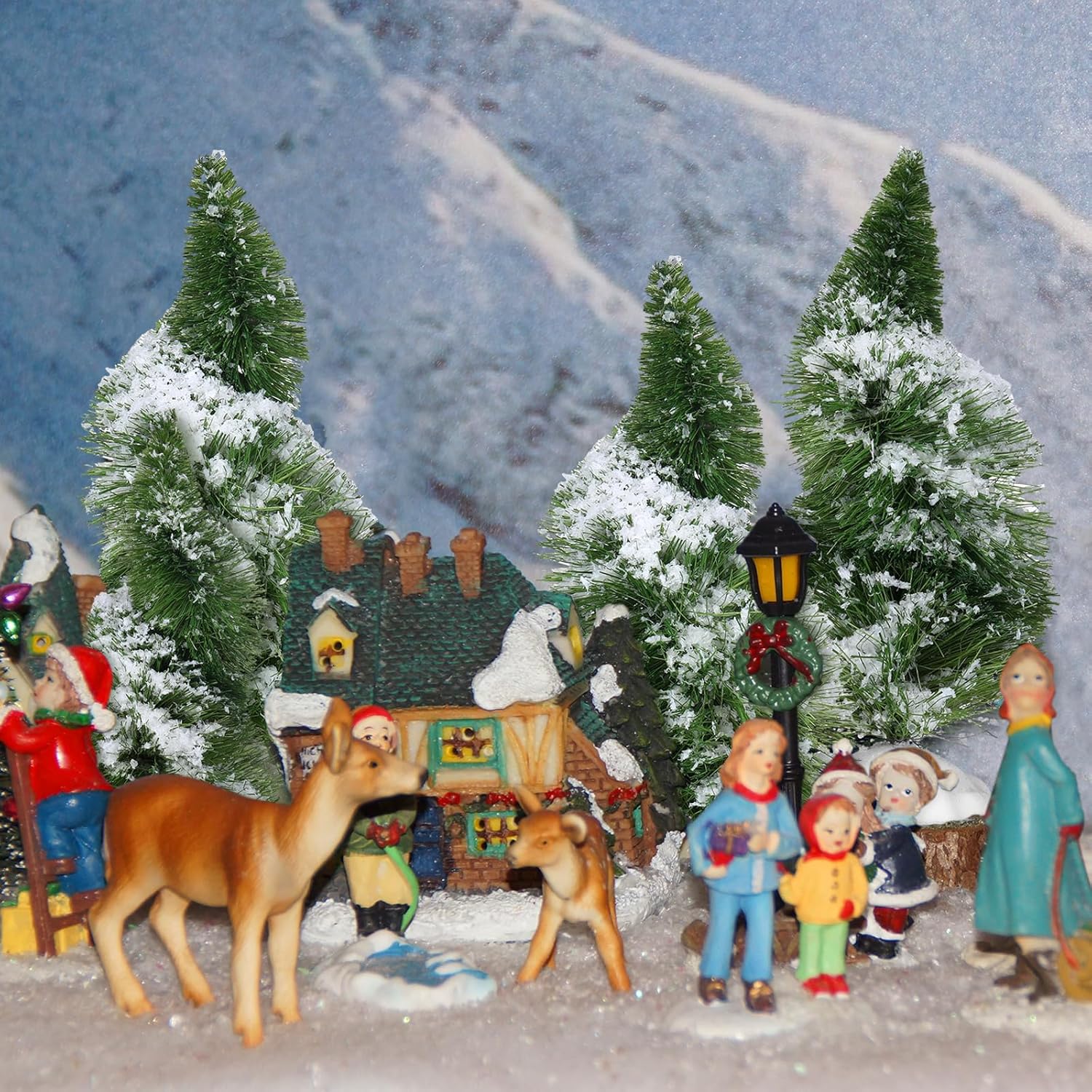 12 Pcs Green Mini Christmas Trees Whimsical Curved Christmas Frost Trees Artificial Xmas Mini Table Decoration for Christmas Village Home Kitchen Christmas Party