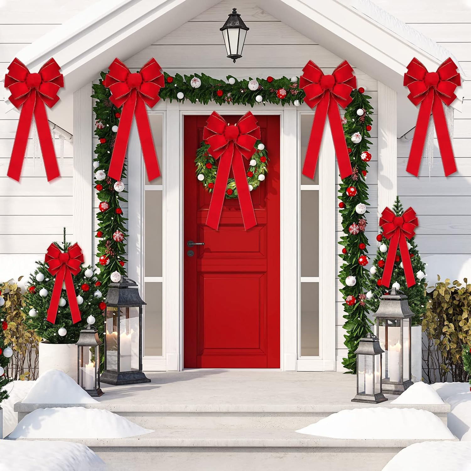 • Easy to Apply: these large red Christmas bows can be woven on Christmas wreaths to add to the beauty of wreaths, or you can use our equipped 18 inches long ropes to hang them on doors, walls, windows or Christmas trees to add more festival atmosphere