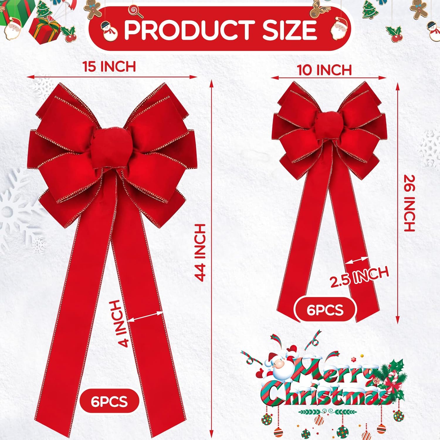 Large Decorative Bow: our Christmas bows come in 2 sizes, respectively about 4 inches wide ribbons, measuring about 15 x 44 inches in the whole, 2.5 inches wide ribbons, measuring about 26 x 10 inches in the whole, large enough to decorate many places, creating a strong Christmas atmosphere for your home and partyDecorations for Both Indoor and Outdoor: these beautiful large red bows are both suitable for serving as indoor and outdoor decorations, proper for Christmas trees, walls, cars, stairs, windows, balcony, weddings, classrooms, gardens, bars and so forth, meeting your diversified decorating needs