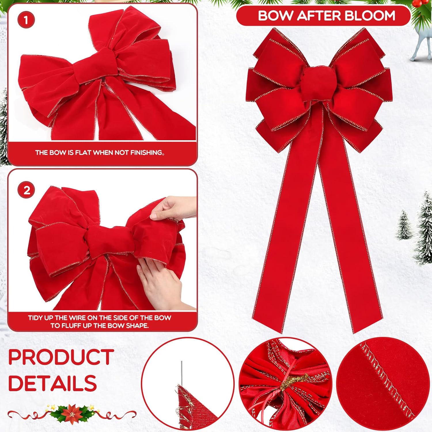 • Trustworthy Materials and Fine Workmanship: these Christmas bows for wrapping are made of red velvet ribbon with wire on both sides, lightweight and reliable, serviceable to use, strong and flexible, easy to shape or hang, hard to fade, can support your multiple uses and serve you for a long time